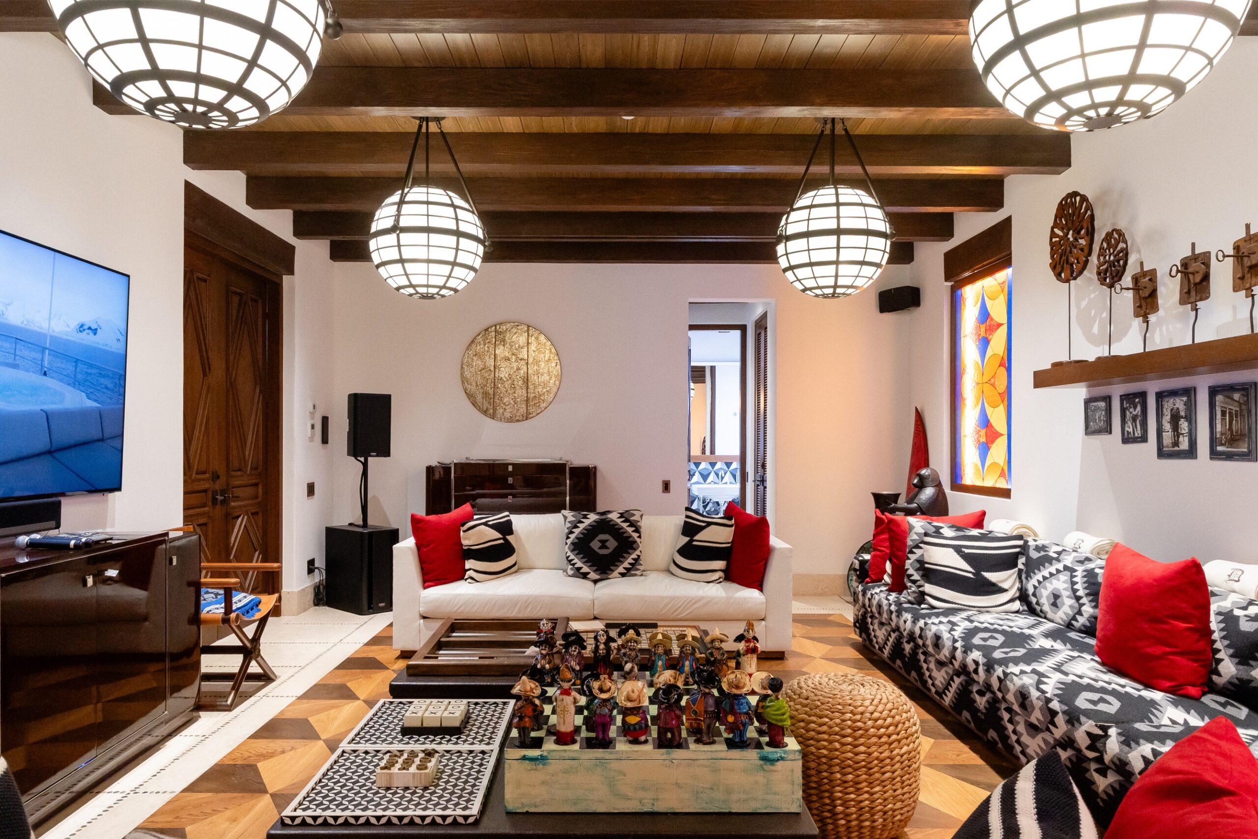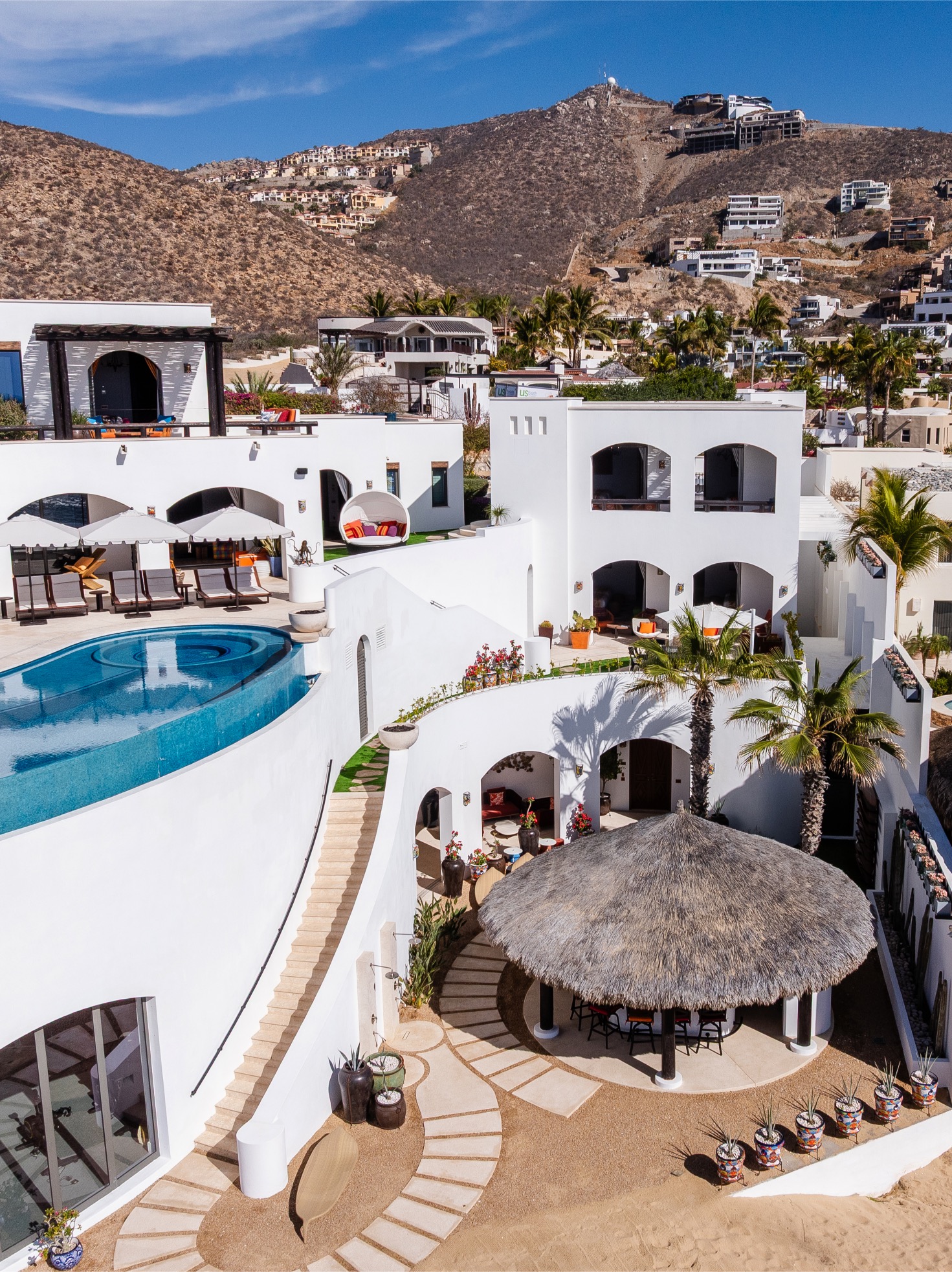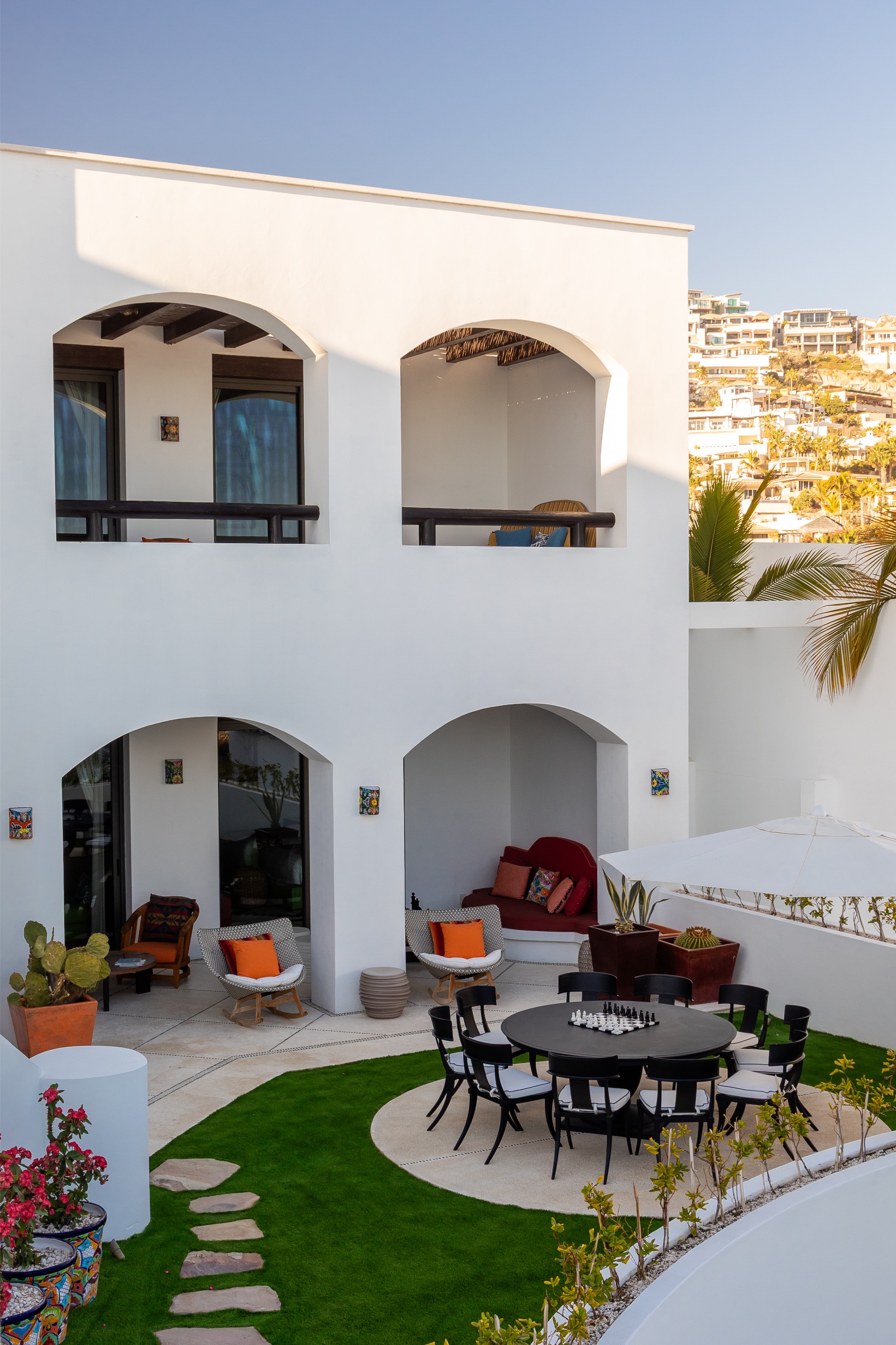 Without sacrificing privacy, the location in Pedregal, Cabo San Lucas, puts the best of the place conveniently close by. The granite spires of Land’s End sit just around the point for picture-perfect cruises, the waterfront is lined with iconic restaurants and fine-casual spots, and the marina is the starting point for world-class offshore fishing. At Villa La Datcha, shaded courtyards catch the afternoon breeze, the pool reflects the sky, and the only thing left to decide is whether to serve dinner on the upper terrace with its lantern glow or on the poolside mesa as the surf turns silver. Even on busy weekends, the gated, cobblestoned lanes of Pedregal feel leisurely.