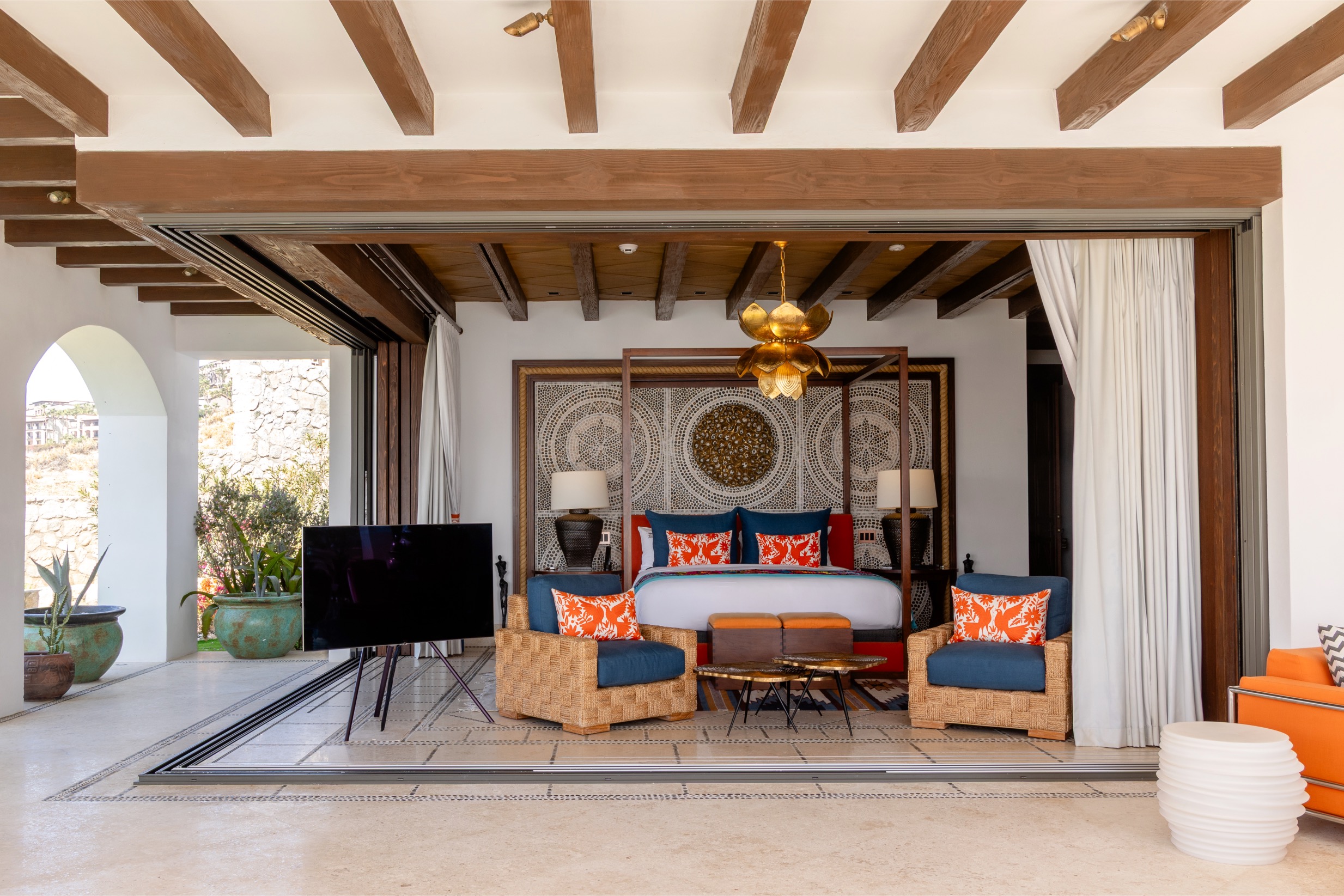 At Villa La Datcha, the first sound you hear is the Pacific—slow, steady breakers rolling onto Pedregal’s golden crescent as sunrise streams amber light across hand-tiled courtyards and through arcades.