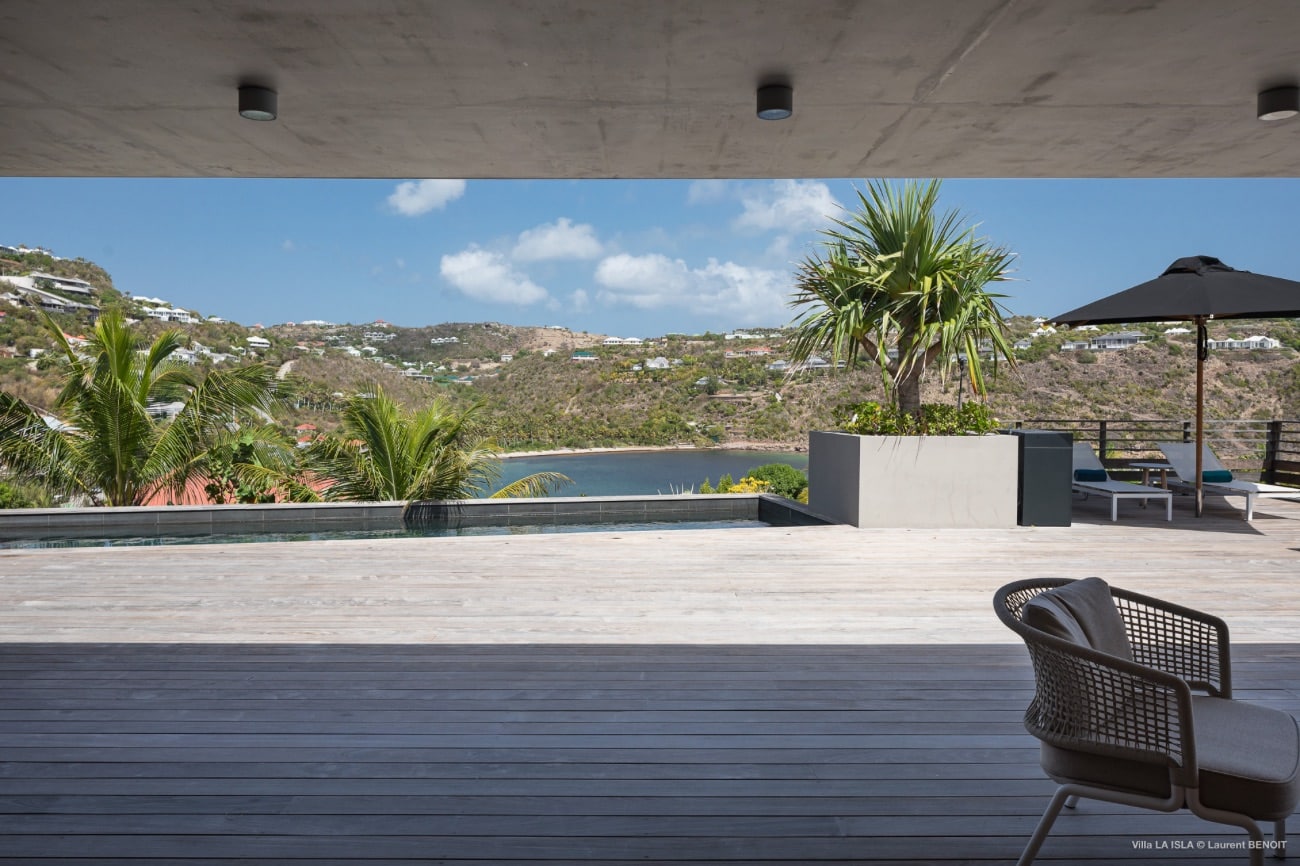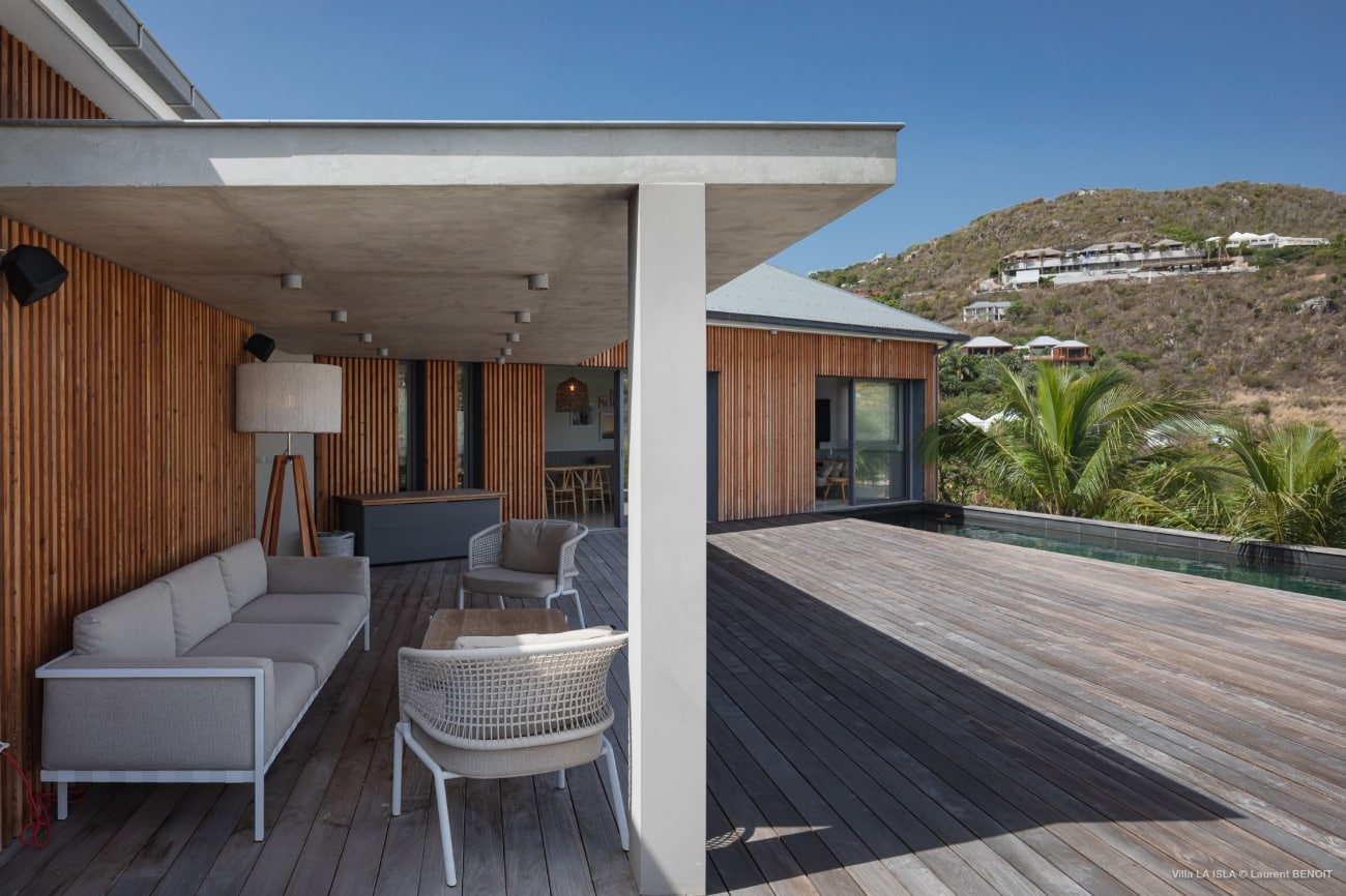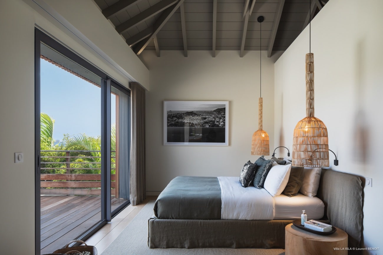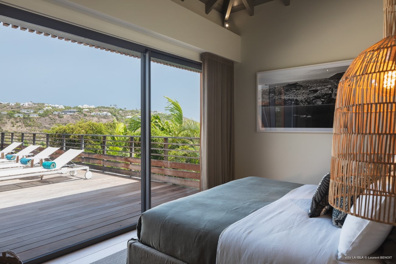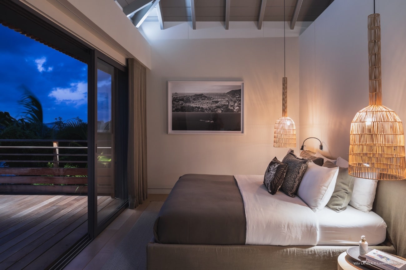 Villa La Isla stands out for its unique combination of modern architecture and warm wood details with genuine bay-view tranquility in Marigot. Its four equal king-bed suites open to a private outdoor area, providing hotel-level privacy in a single, tastefully designed residence.