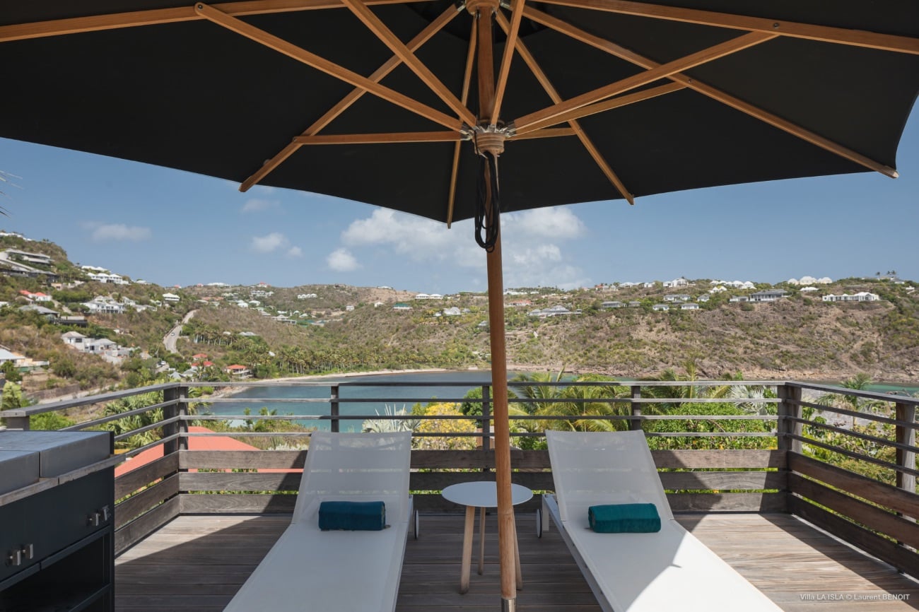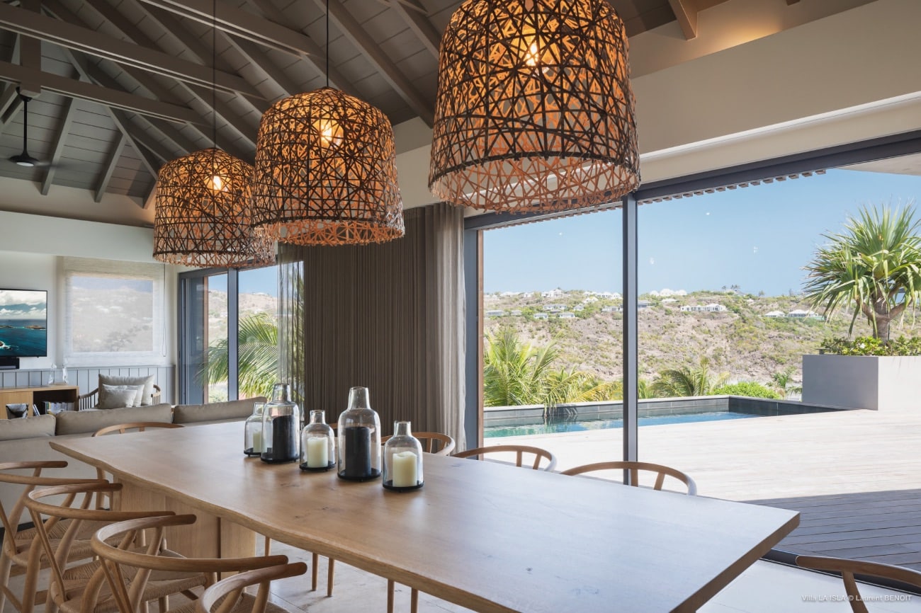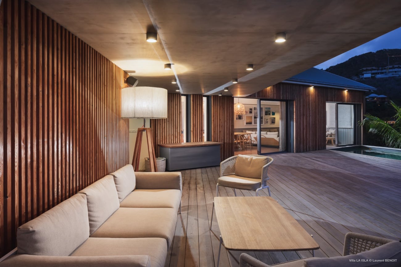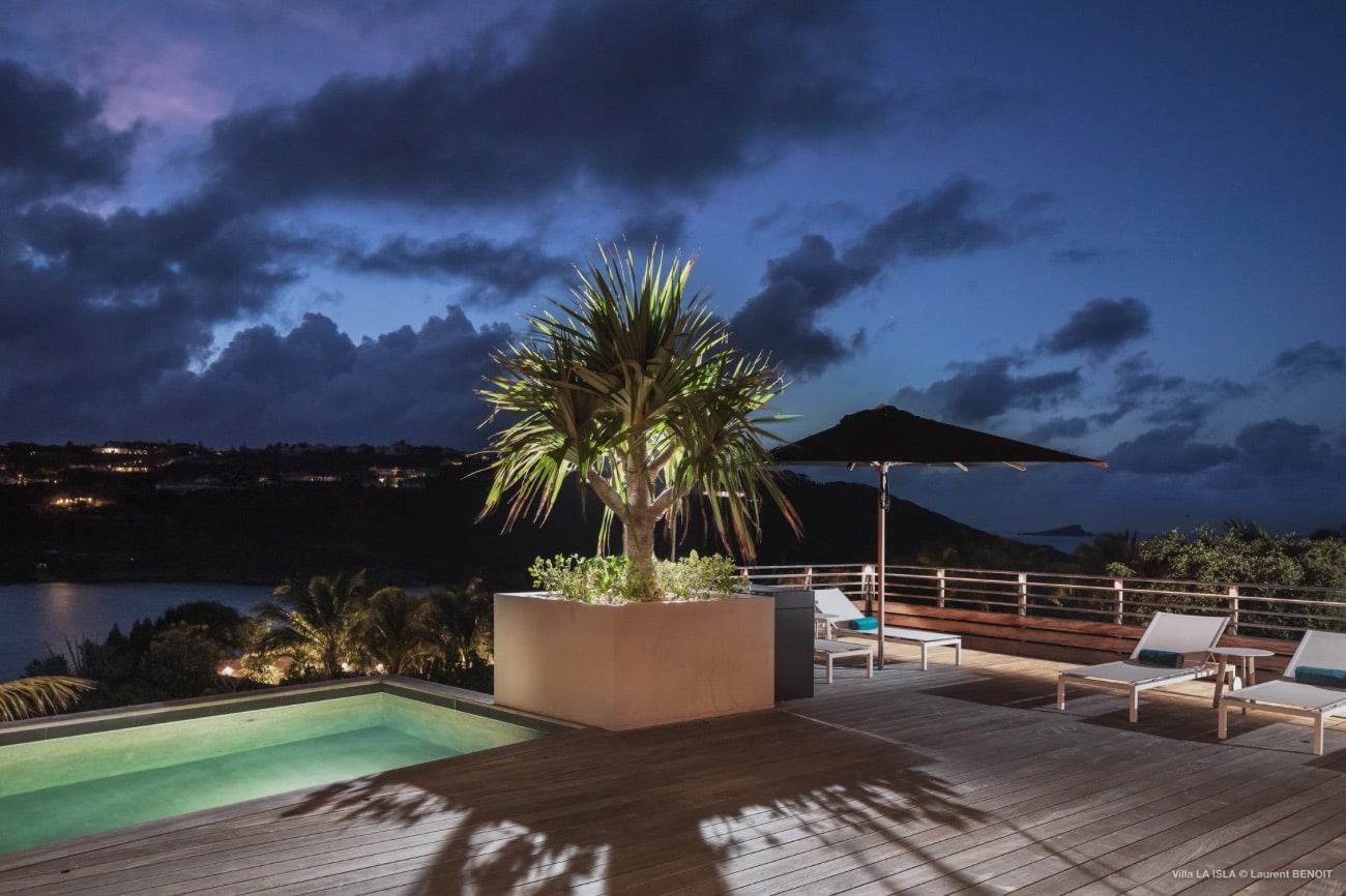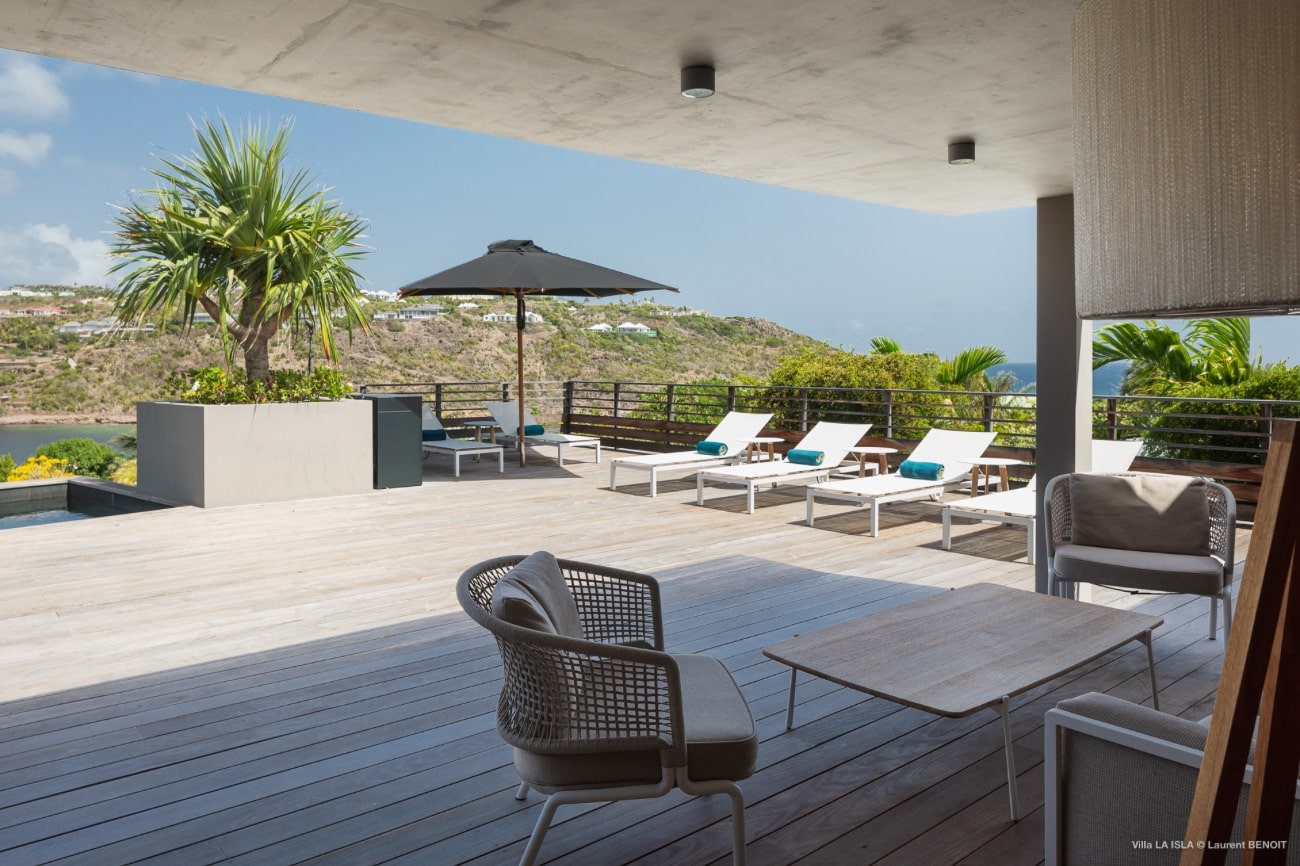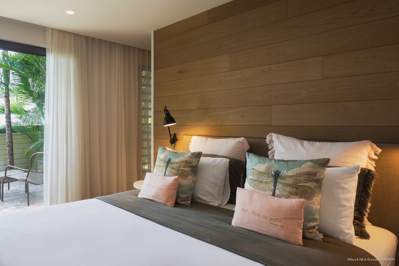 Villa La Isla stands out for its unique combination of modern architecture and warm wood details with genuine bay-view tranquility in Marigot. Its four equal king-bed suites open to a private outdoor area, providing hotel-level privacy in a single, tastefully designed residence.