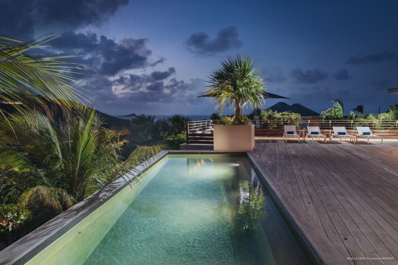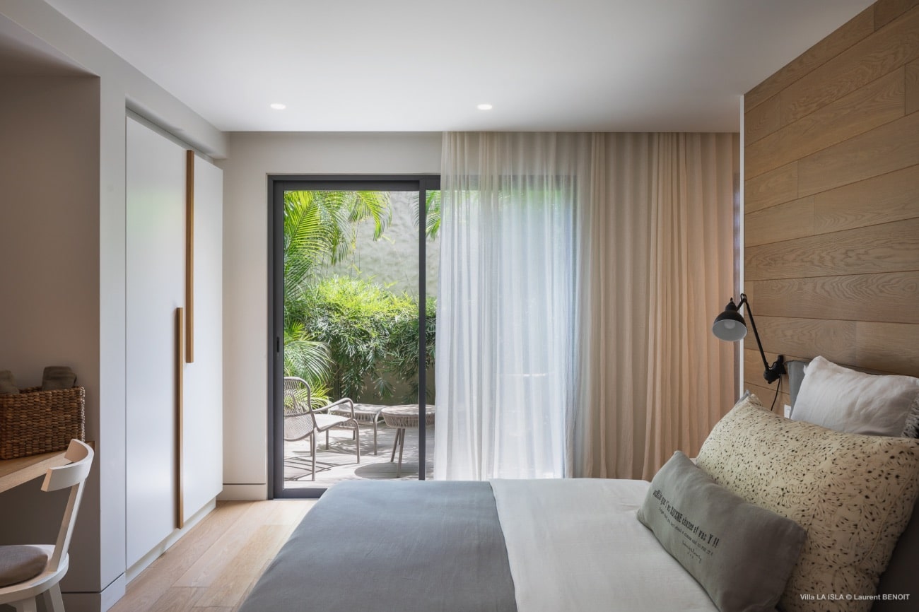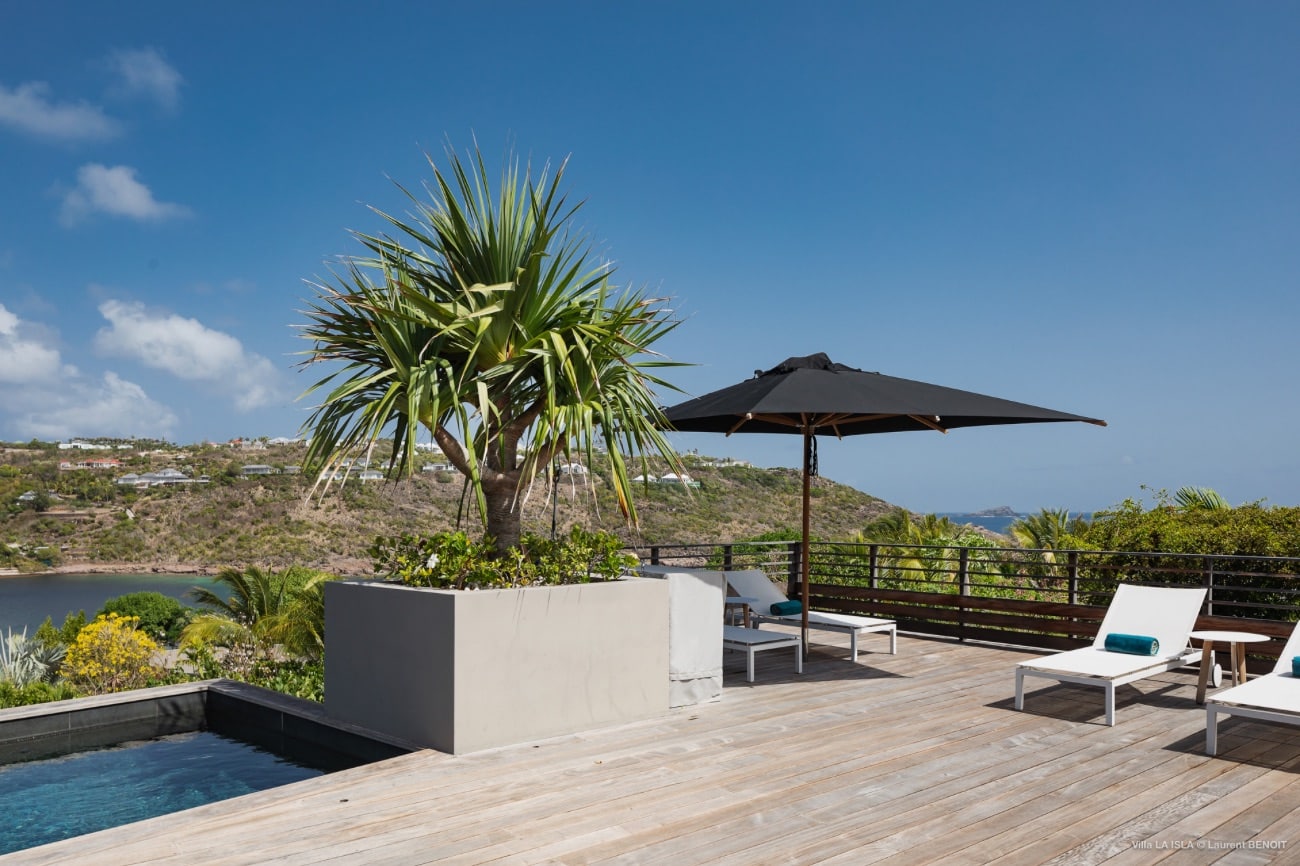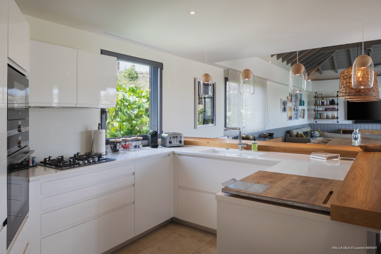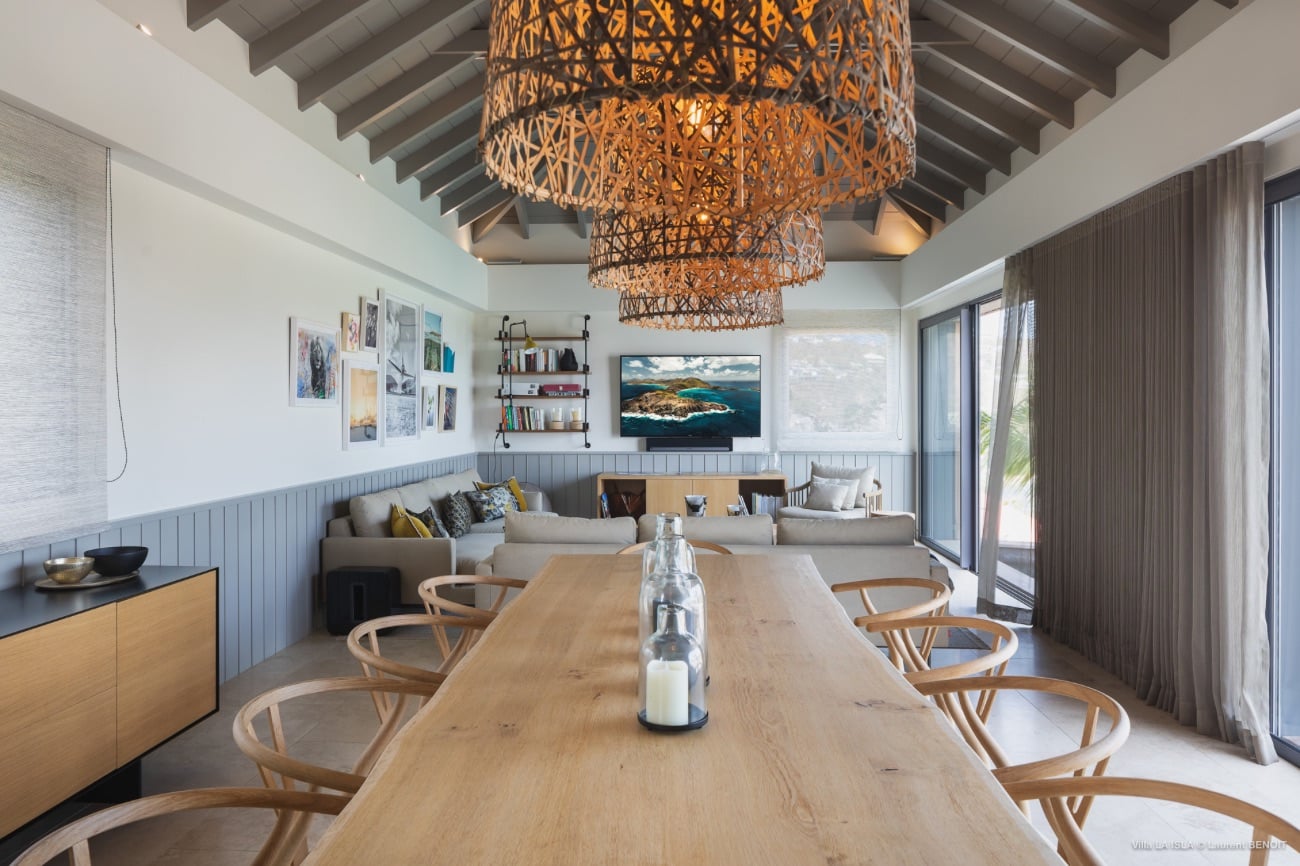 Villa La Isla stands out for its unique combination of modern architecture and warm wood details with genuine bay-view tranquility in Marigot. Its four equal king-bed suites open to a private outdoor area, providing hotel-level privacy in a single, tastefully designed residence.
