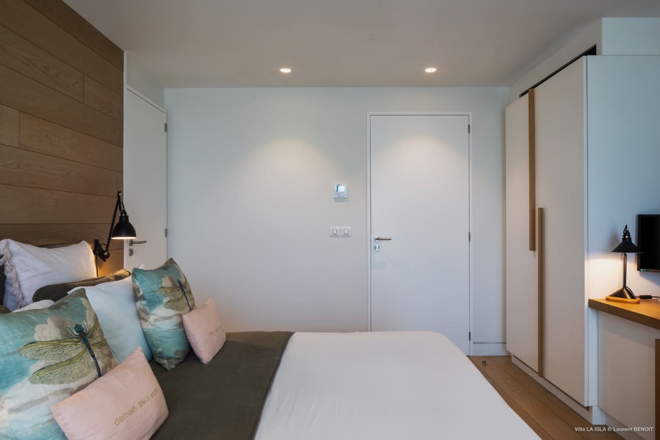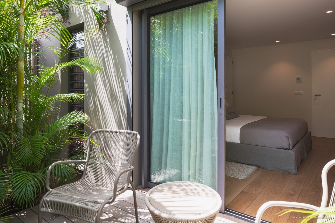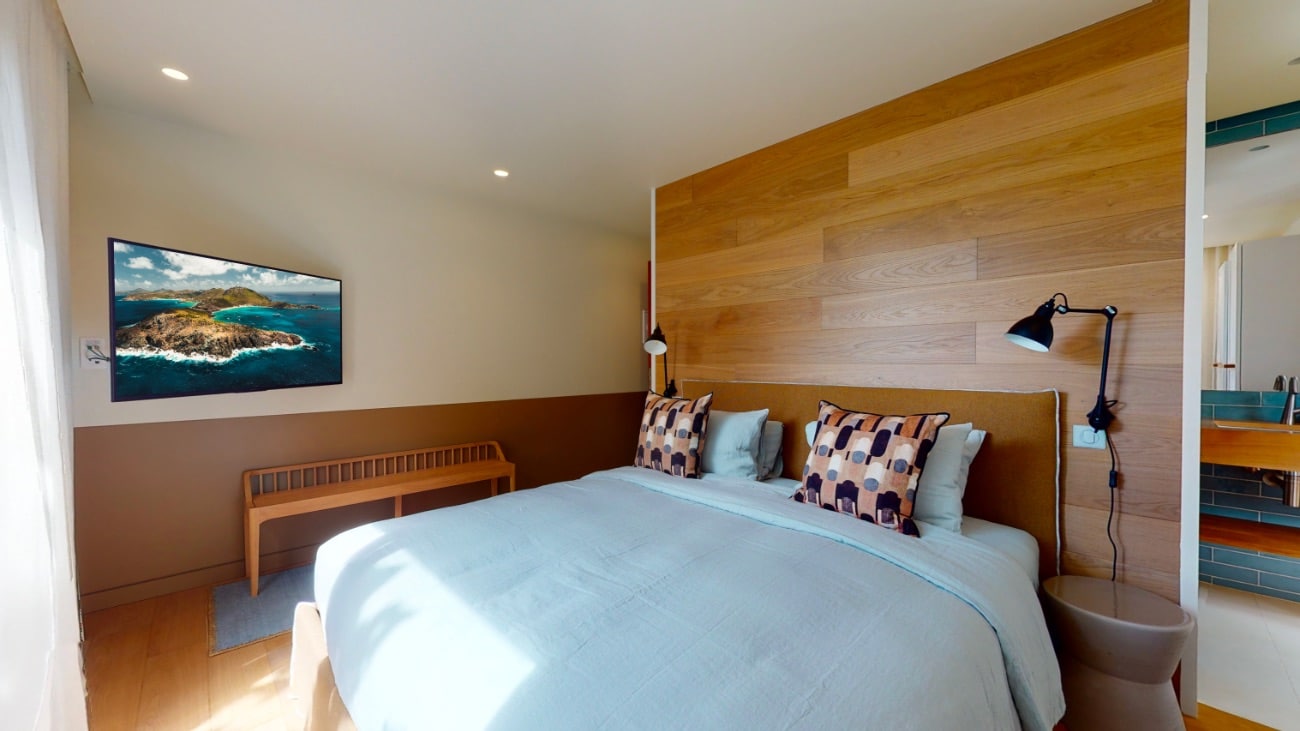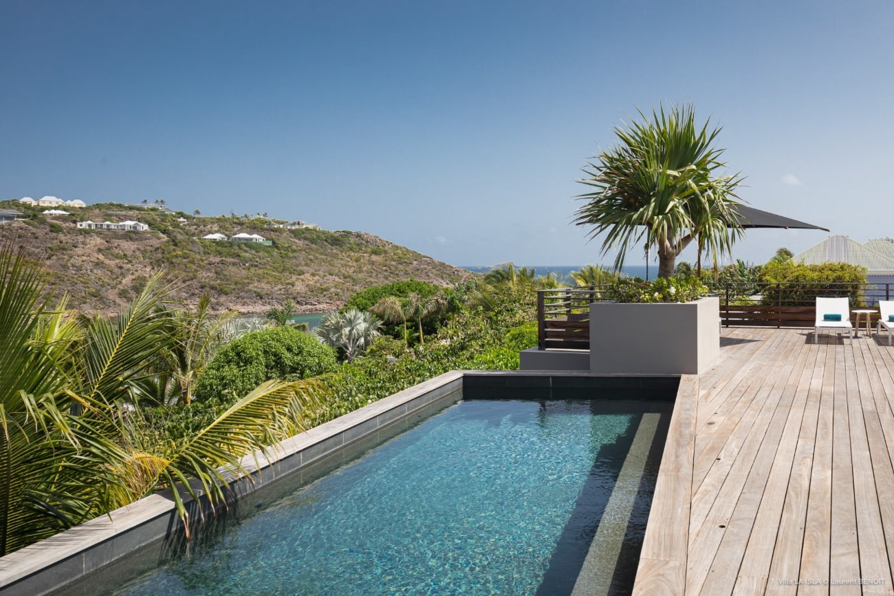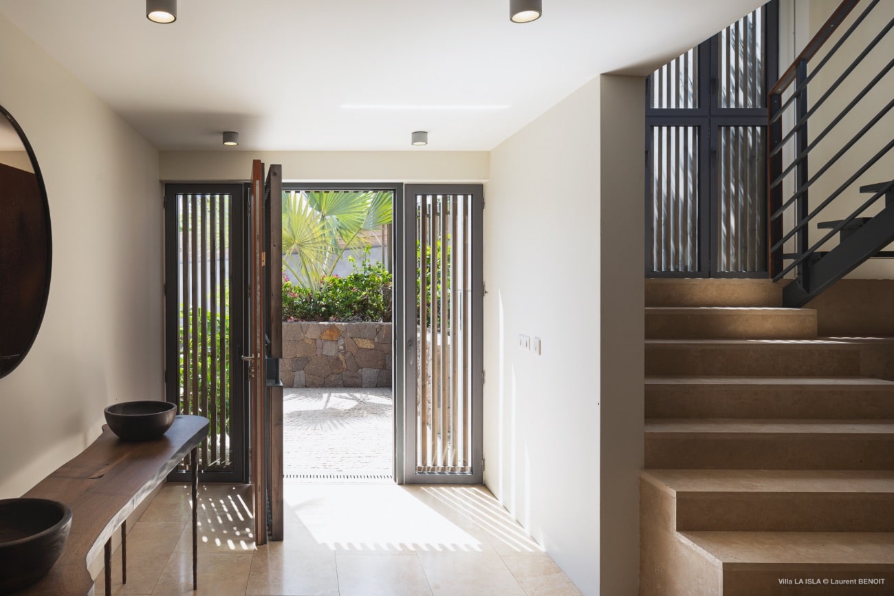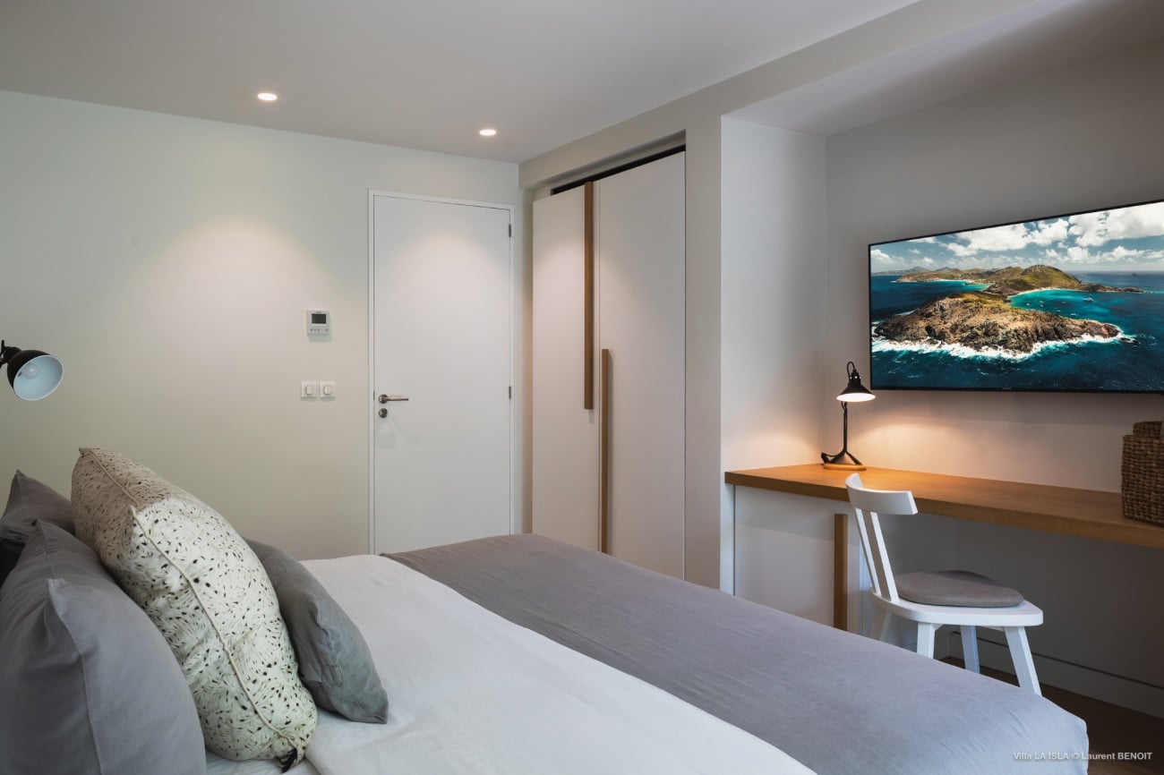 Villa La Isla stands out for its unique combination of modern architecture and warm wood details with genuine bay-view tranquility in Marigot. Its four equal king-bed suites open to a private outdoor area, providing hotel-level privacy in a single, tastefully designed residence.