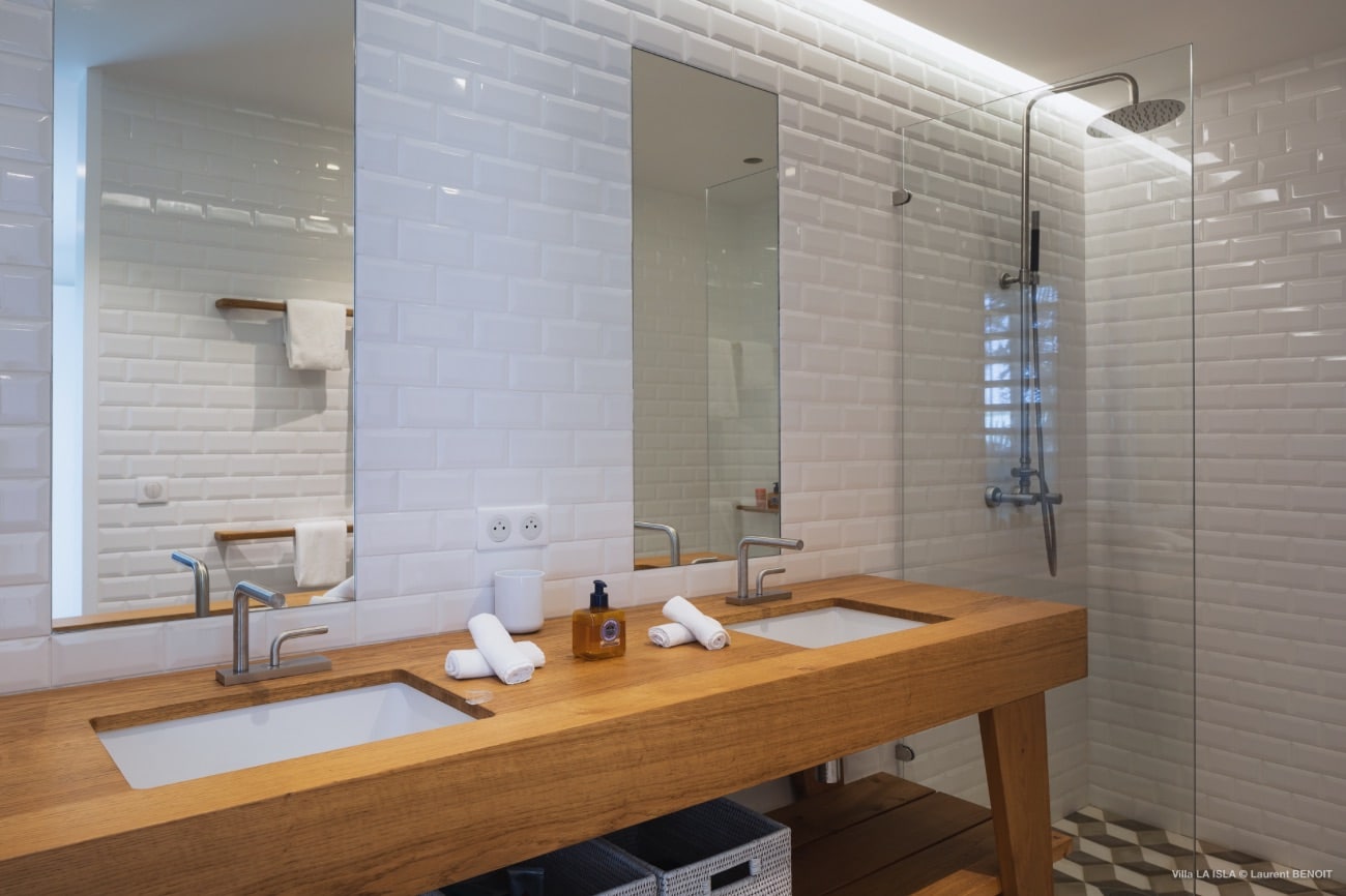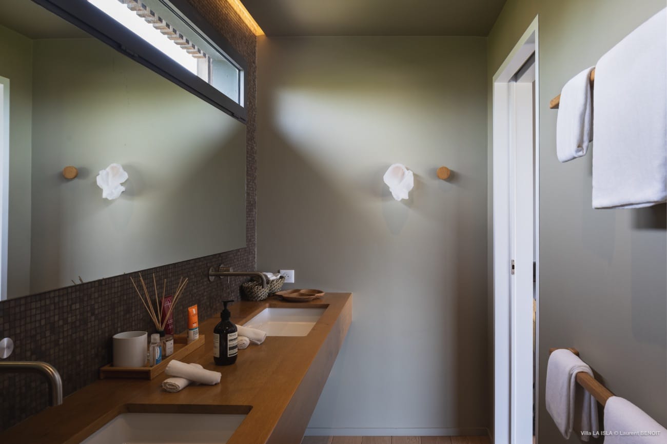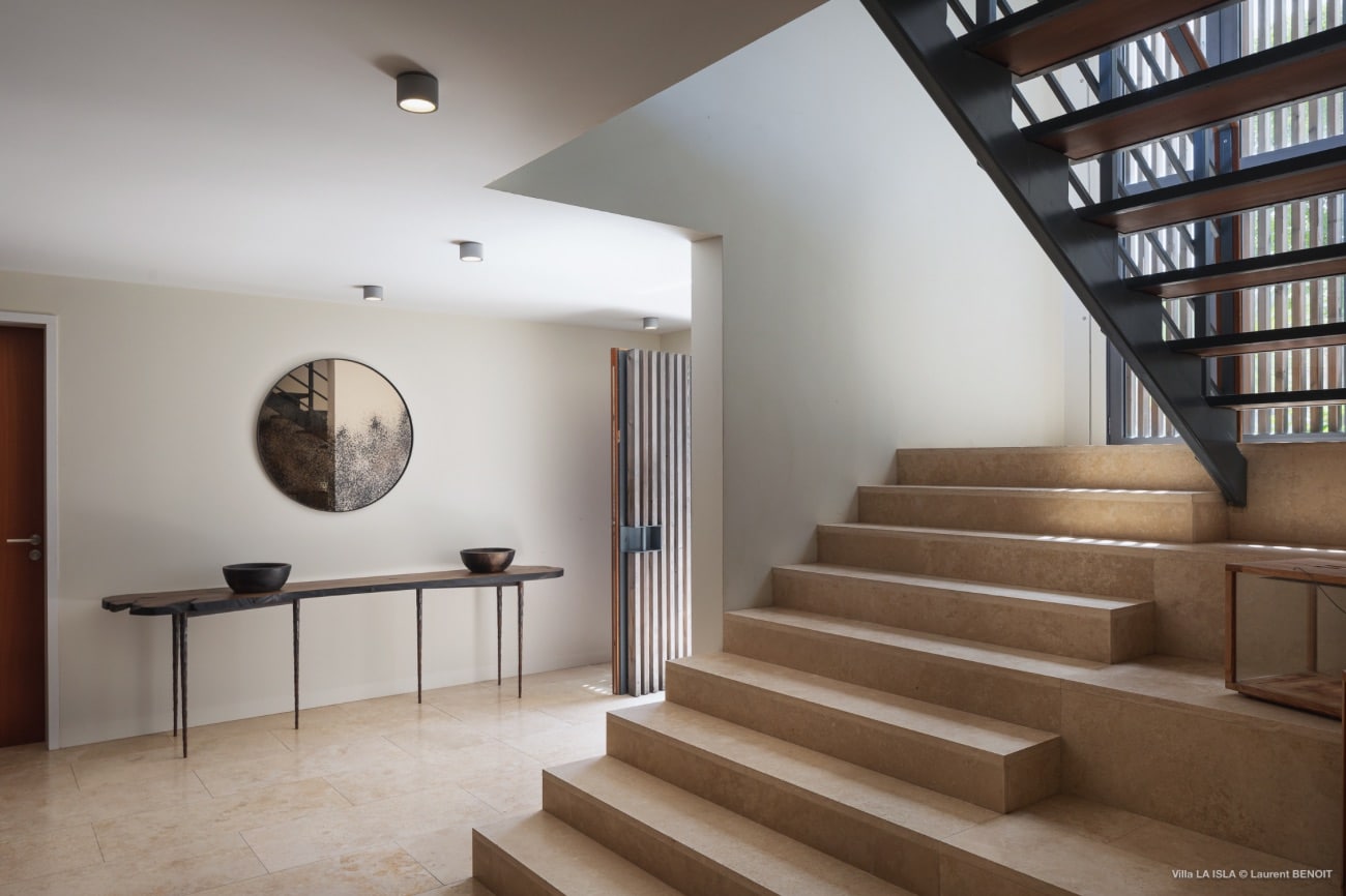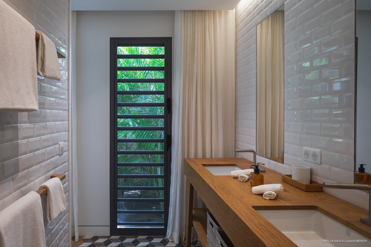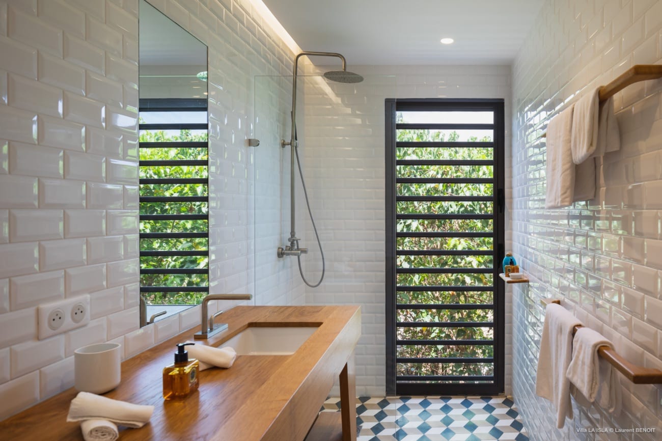 Villa La Isla stands out for its unique combination of modern architecture and warm wood details with genuine bay-view tranquility in Marigot. Its four equal king-bed suites open to a private outdoor area, providing hotel-level privacy in a single, tastefully designed residence.