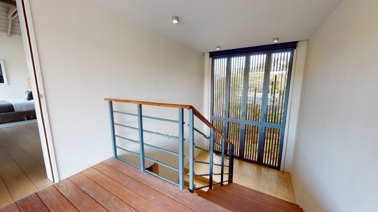 The same feeling of comfort is brought by the bedrooms. An interior staircase leads to three suites, each with a king bed, an ensuite bathroom, and sliding doors that open to furnished patios; one suite is on the main level for easy access to the pool and terrace.