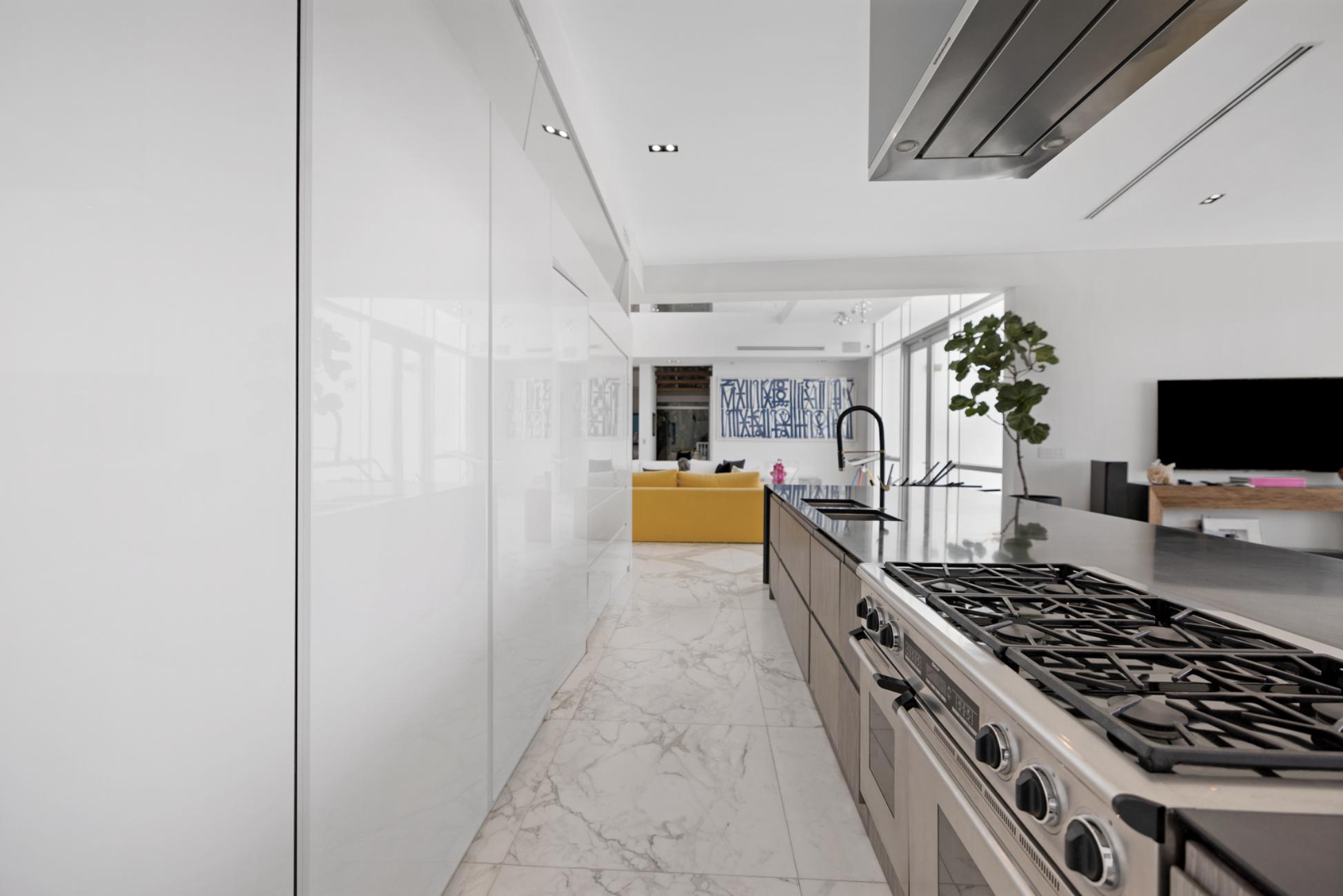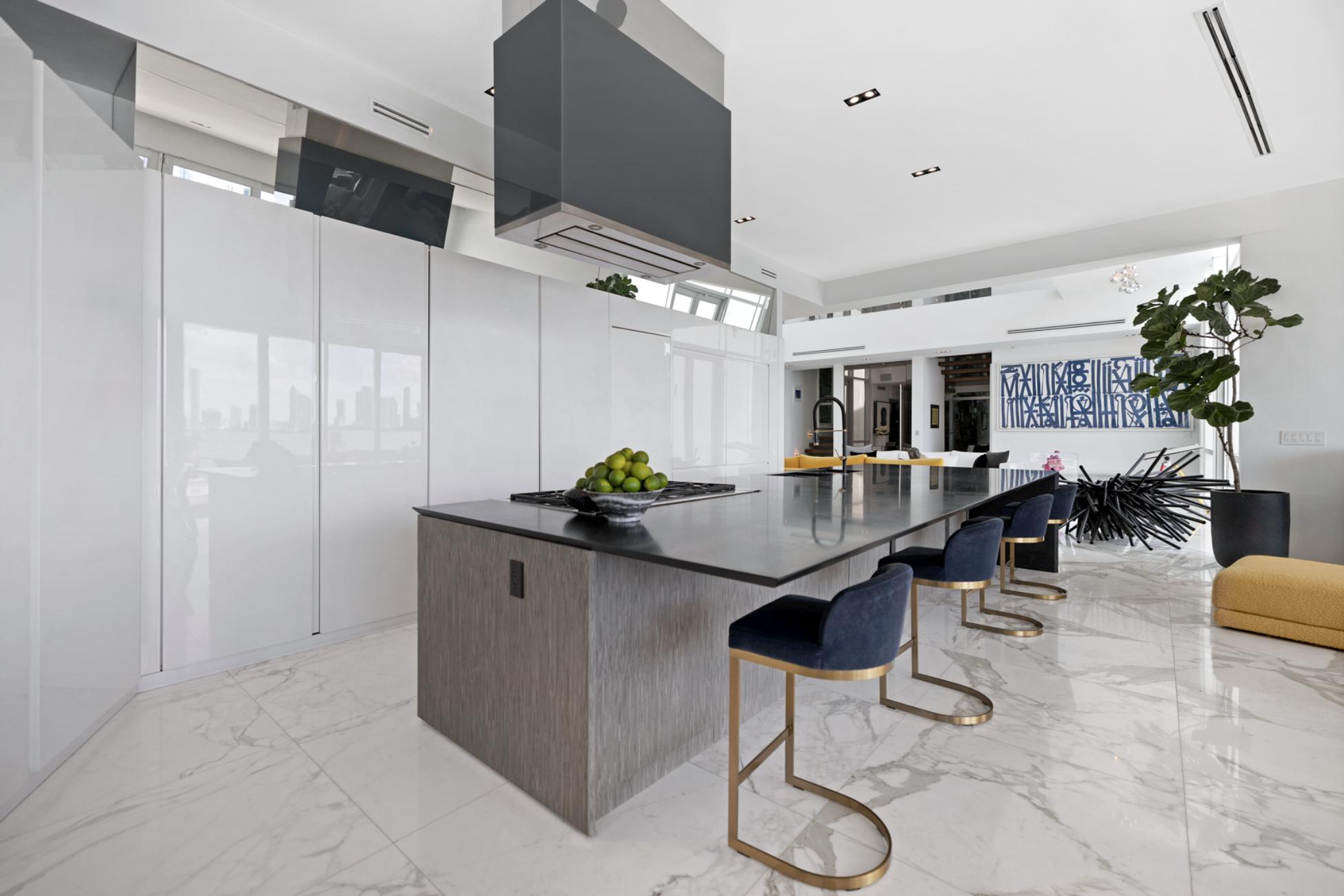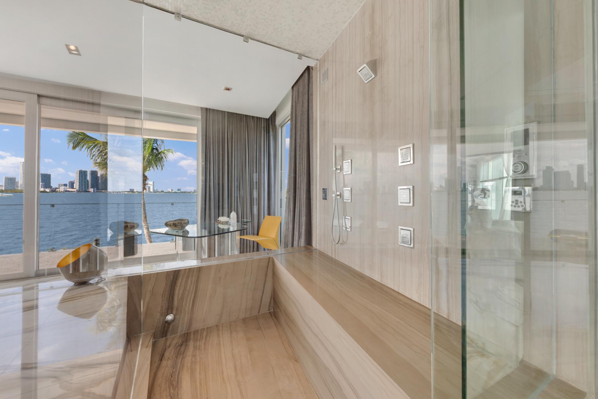 Inside, six expansive bedrooms and six and a half refined bathrooms unfold like private sanctuaries, each with spa-inspired finishes and its own balcony overlooking the water. Mornings begin quietly here, coffee in hand as boats glide past, while evenings invite long conversations under open skies. A state-of-the-art chef’s kitchen anchors the home, seamlessly connecting indoor elegance with outdoor living, and a private glass elevator ensures effortless movement throughout the property.