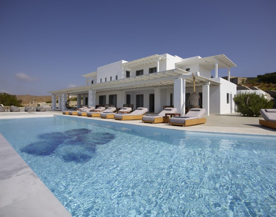 Villa Livadi is a luxury villa rental with 18 bedrooms and a private pool. This stunning villa, with its unique Cycladic beauty, promises to take your breath away from the very first moment of your arrival. The estate’s state-of-art design features contemporary luxury, and 17 bedrooms grant privacy for families or groups of friends. Ideal for those wishing to spend a remarkable summer vacation under the Mediterranean sun, the luxurious villa can host comfortably up to 34 guests.