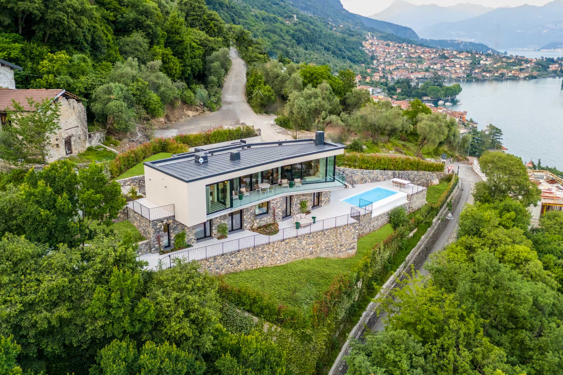 Just 2 km from the nearest town and moments from Sala Comacina, Luminora is perfectly placed for exploring the lake. The nearby ferry stop offers easy access to coveted destinations, fine dining, boutique shopping, and cultural excursions—while you return each evening to complete privacy and calm.