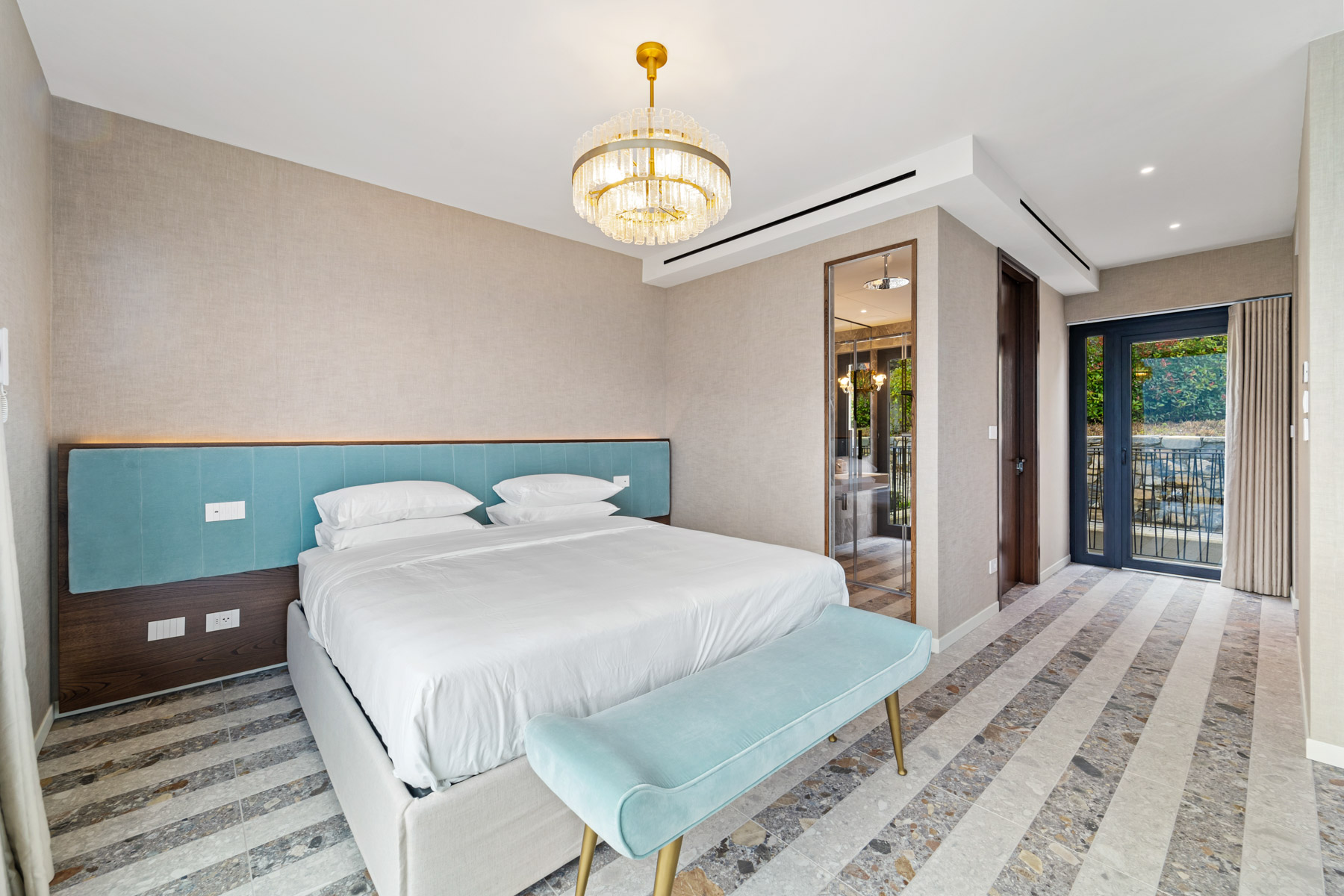 Master King bedroom with study area + lake-view balcony