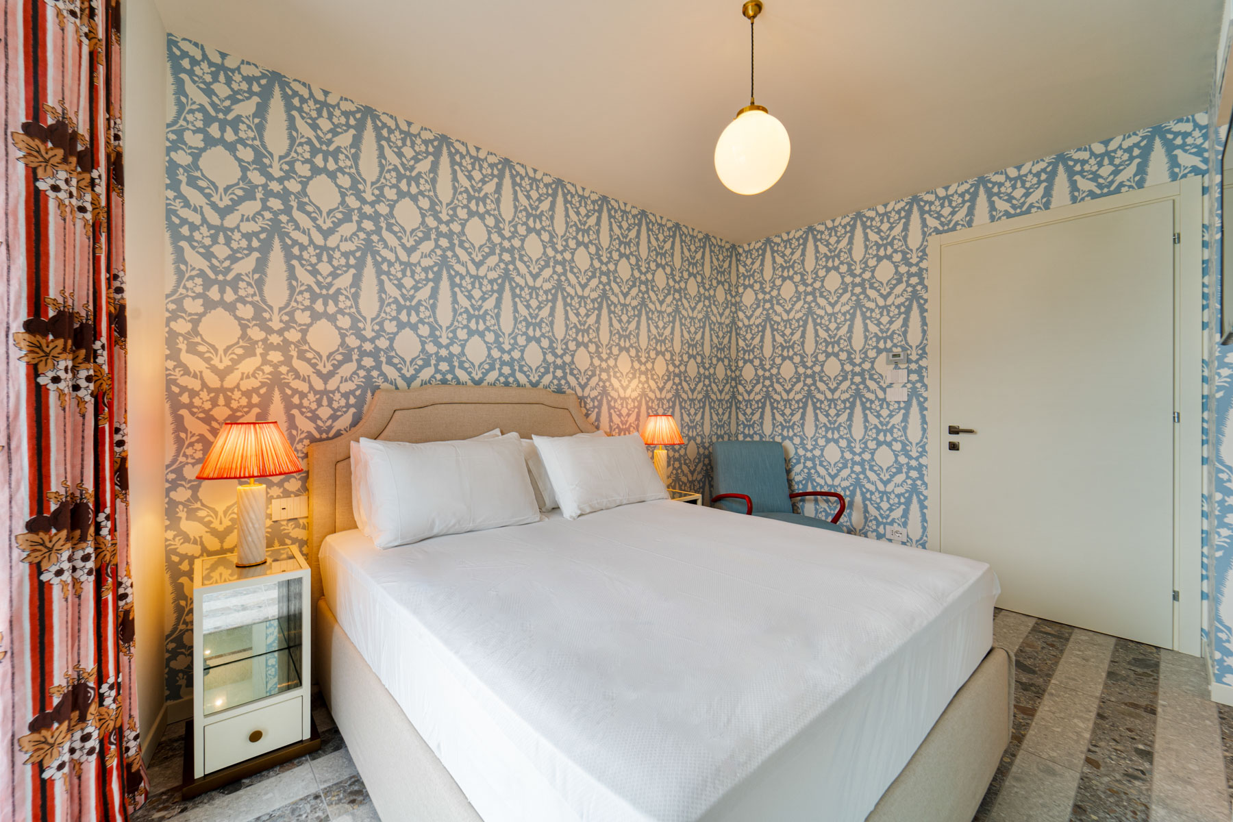 Bedroom with French bed and lake view
