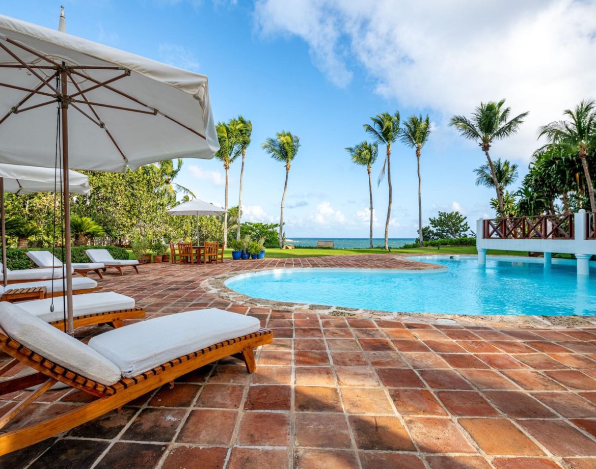 Villa Mar Azul is unique among Casa de Campo villas because of its true front-row beach location, sea-view suites on both floors, louvered indoor-outdoor architecture, and gazebo-over-pool arrangement that transforms the horizon into your regular living area.