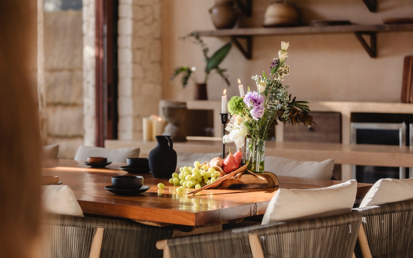 Back inside, the open-plan living room, which transitions naturally from the outdoor deck, is an ideal space for reunions with family and friends. Tastefully designed down to the finest details, the stylish decor sets the mood for your tropical escape, while the staff, including a private chef, will no doubt make you feel at home.