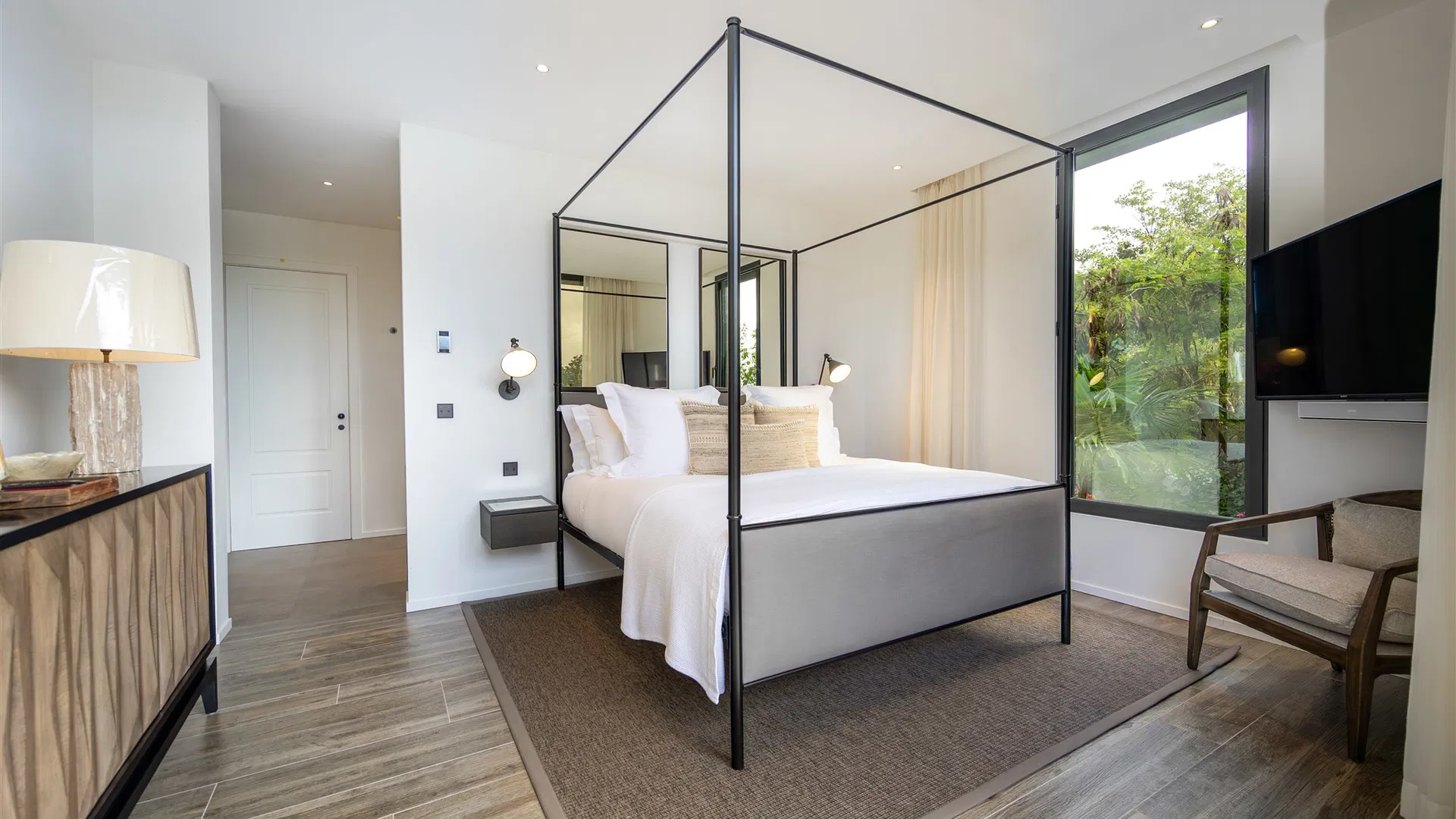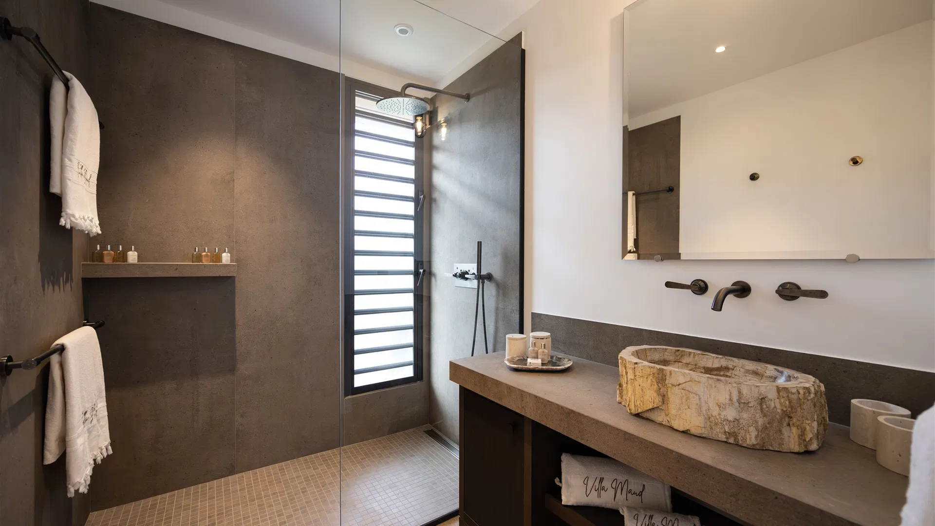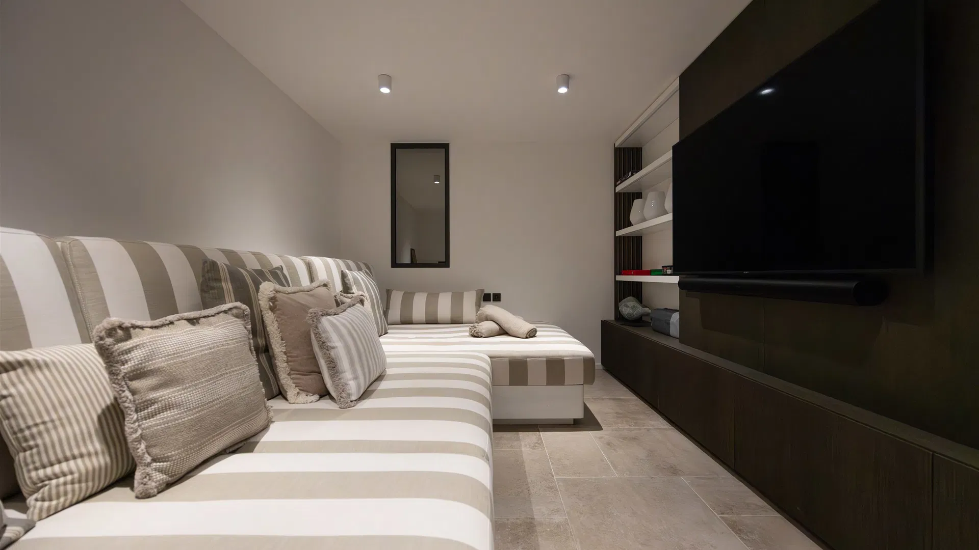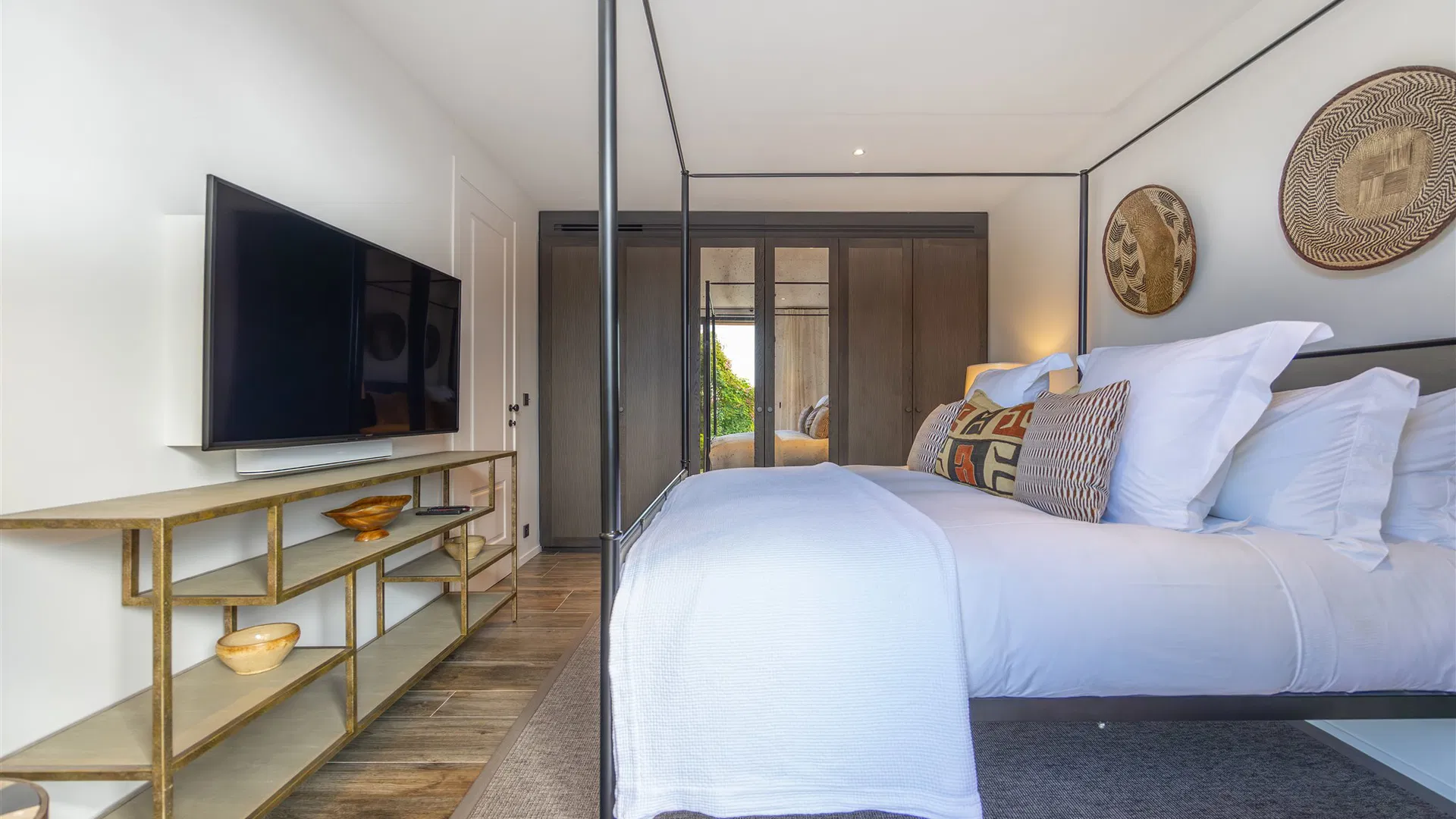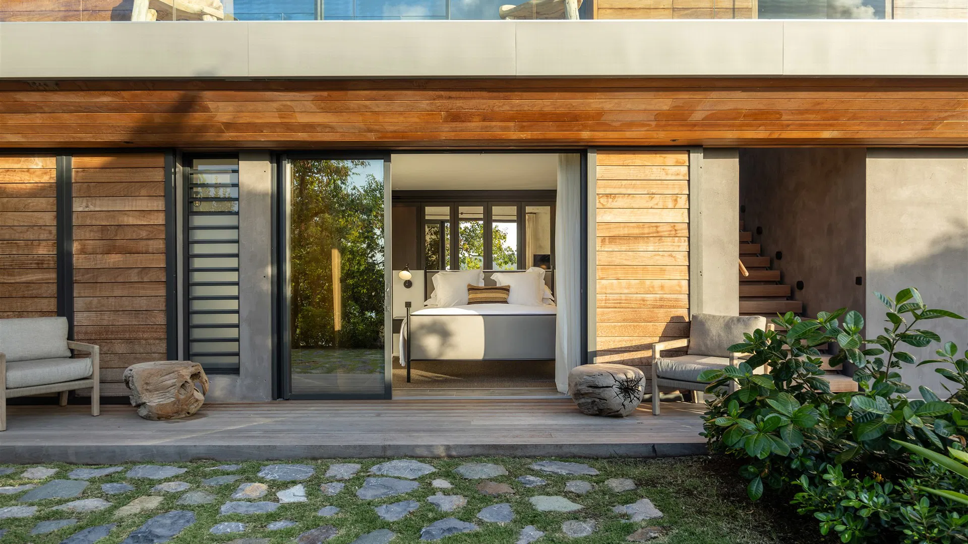 Every room feels equally thought out thanks to the design language, which includes subtle linens, tactile textures, and thoughtful lighting. Each also has an HD screen and an en suite bathroom. Because of its adaptable layout, Villa Maud can accommodate up to ten guests, whether they are part of an extended family, traveling in tandem, or celebrating a milestone that requires both privacy and togetherness. One suite has twin beds, making it ideal for kids or friends traveling together.