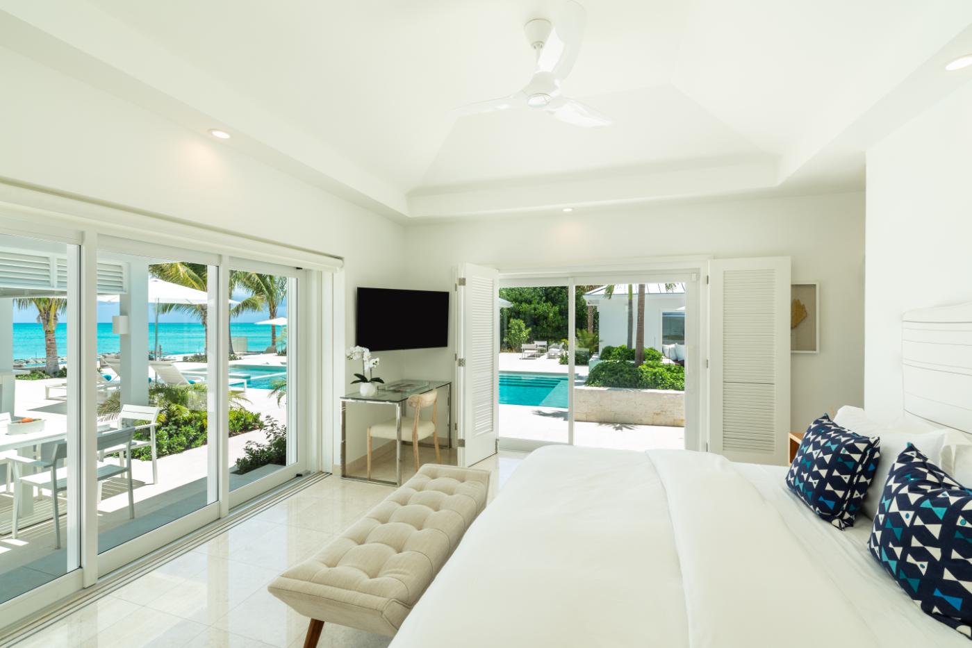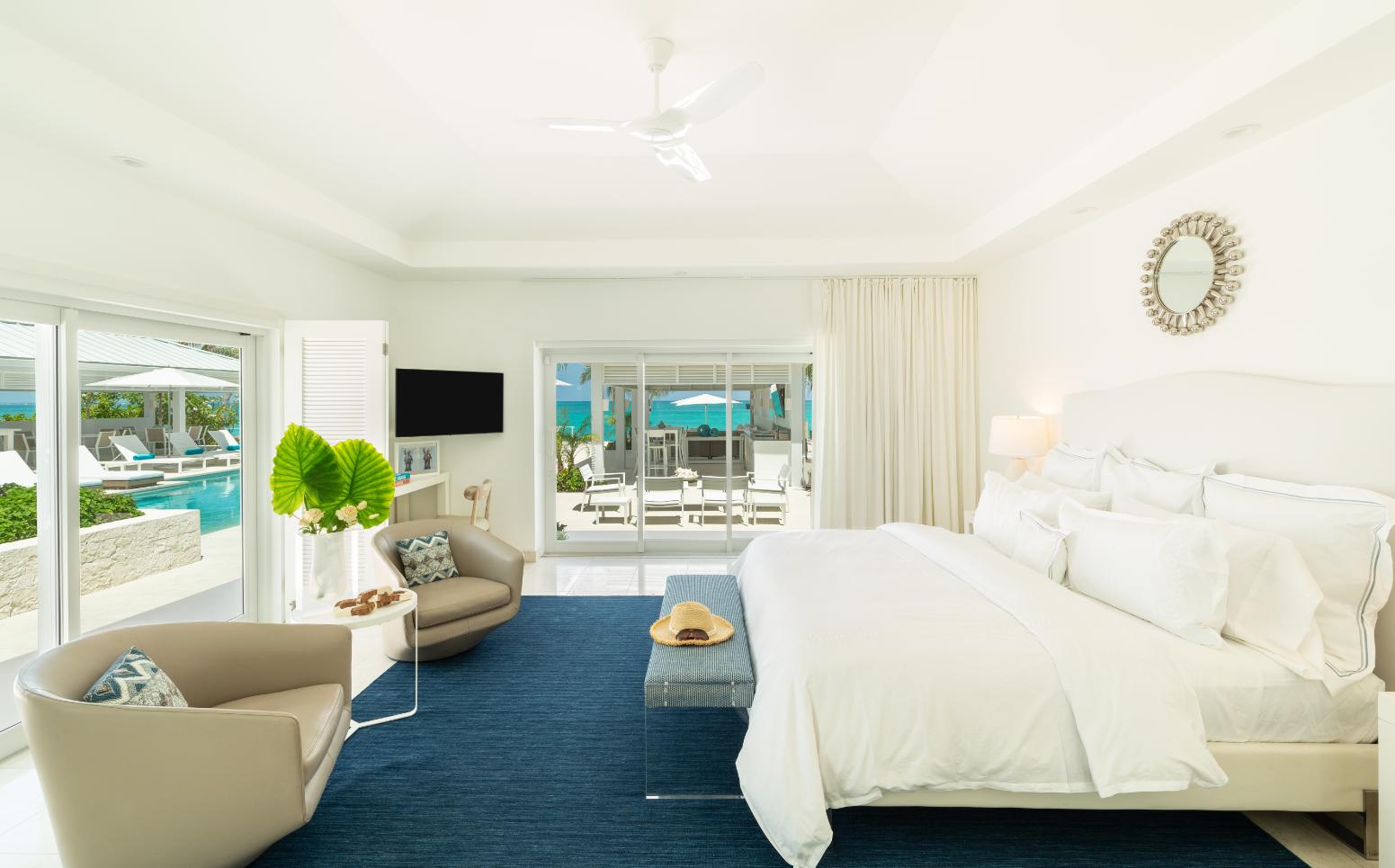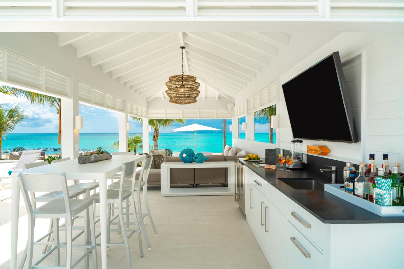 Villa Milestone reads like a private beach club outside. Two outdoor pavilions, each with a grill, refrigerator, bar, and a variety of seating options, set the scene for long, sun-kissed lunches and star-lit dinners, while a recently added heated pool with spa and lounge-in shallow areas invites all-day relaxation. As the sky turns from apricot to indigo, assemble around the fire pit for sunset cocktails after dark. With bicycles, kayaks, stand-up paddleboards, and snorkeling equipment available, Grace Bay’s crystal-clear water is your playground just a short distance away.