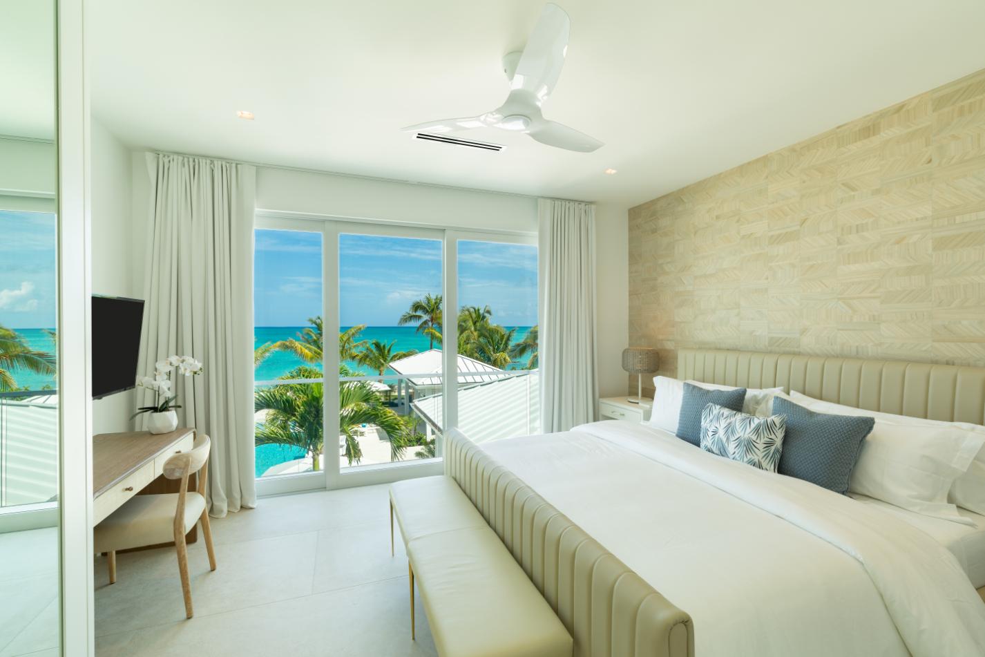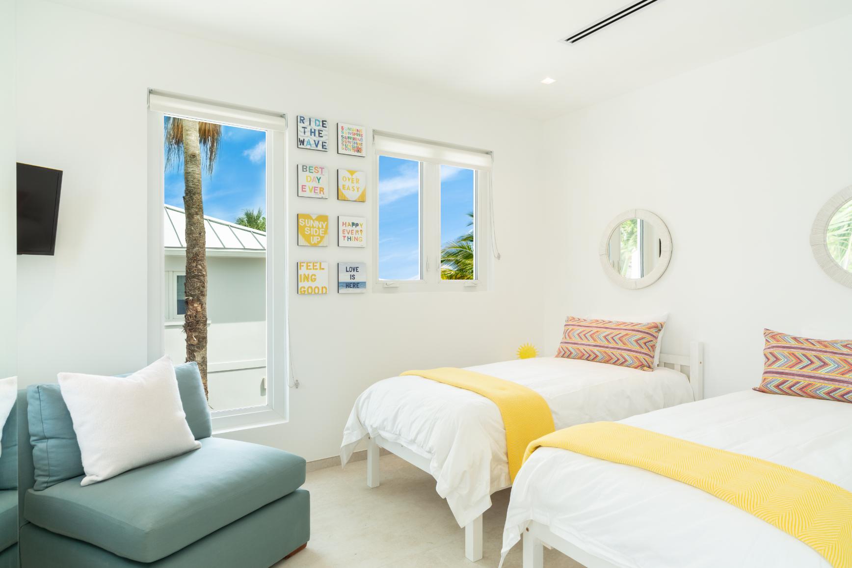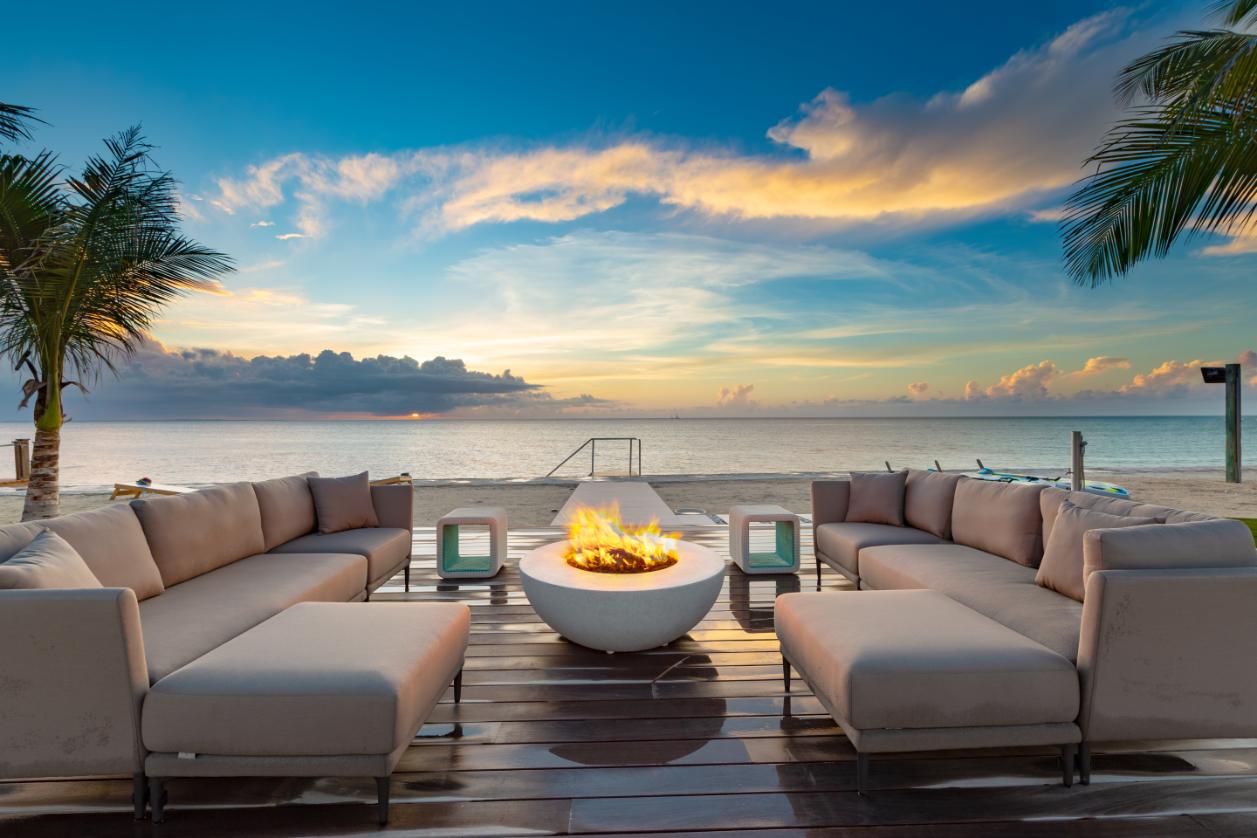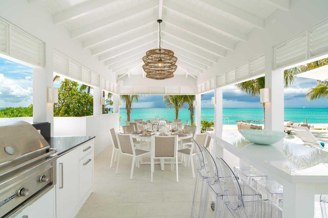 Villa Milestone reads like a private beach club outside. Two outdoor pavilions, each with a grill, refrigerator, bar, and a variety of seating options, set the scene for long, sun-kissed lunches and star-lit dinners, while a recently added heated pool with spa and lounge-in shallow areas invites all-day relaxation. As the sky turns from apricot to indigo, assemble around the fire pit for sunset cocktails after dark. With bicycles, kayaks, stand-up paddleboards, and snorkeling equipment available, Grace Bay’s crystal-clear water is your playground just a short distance away.