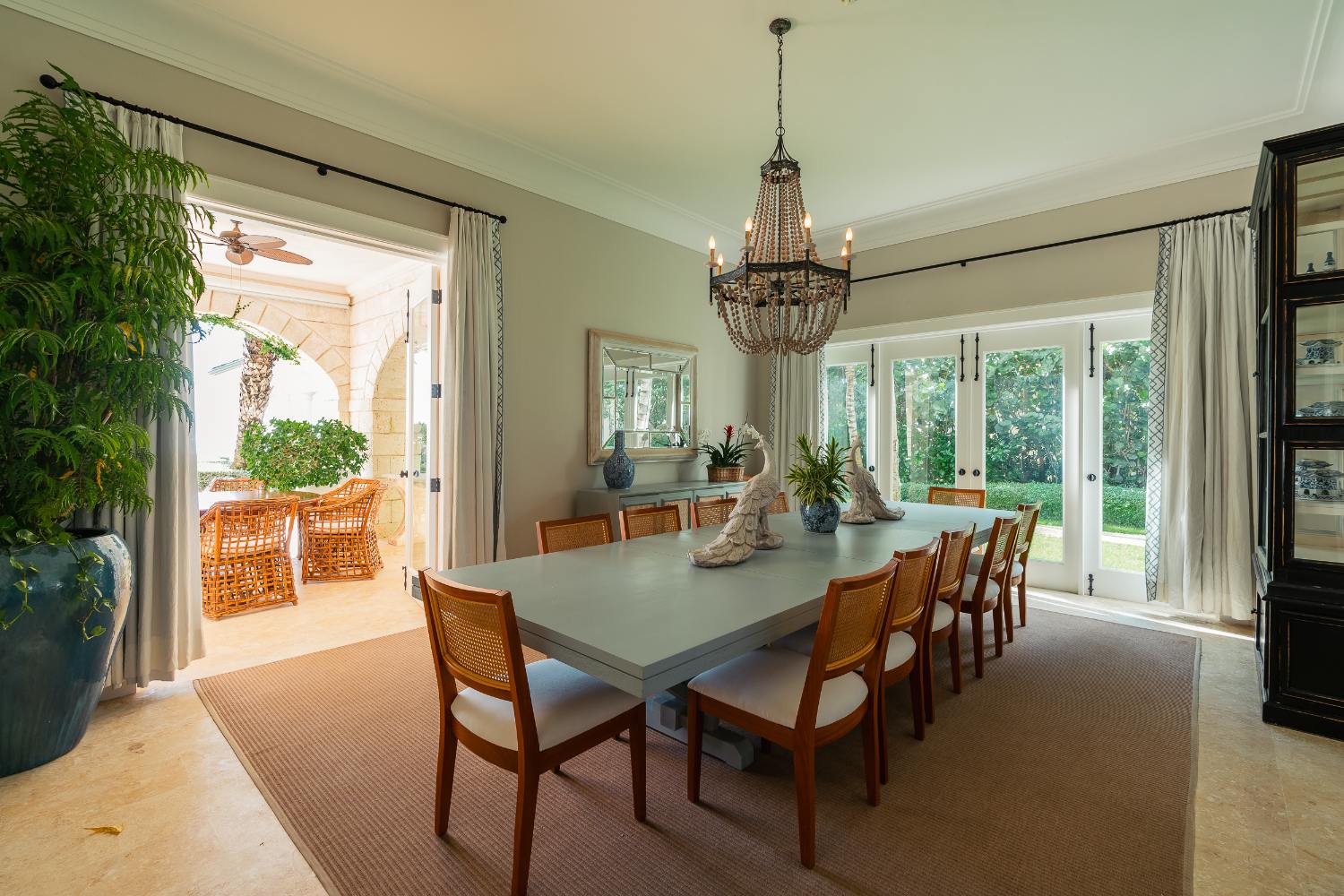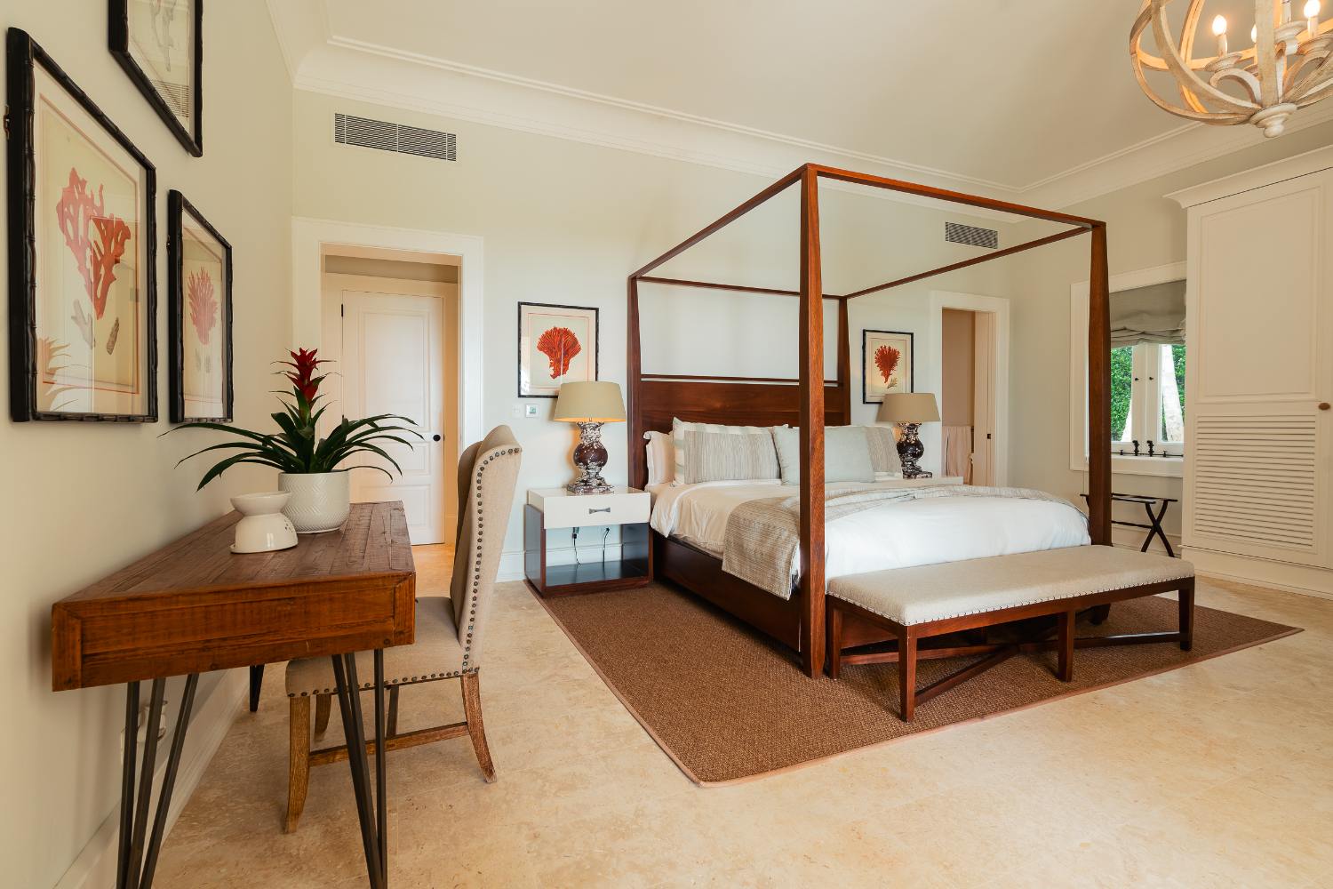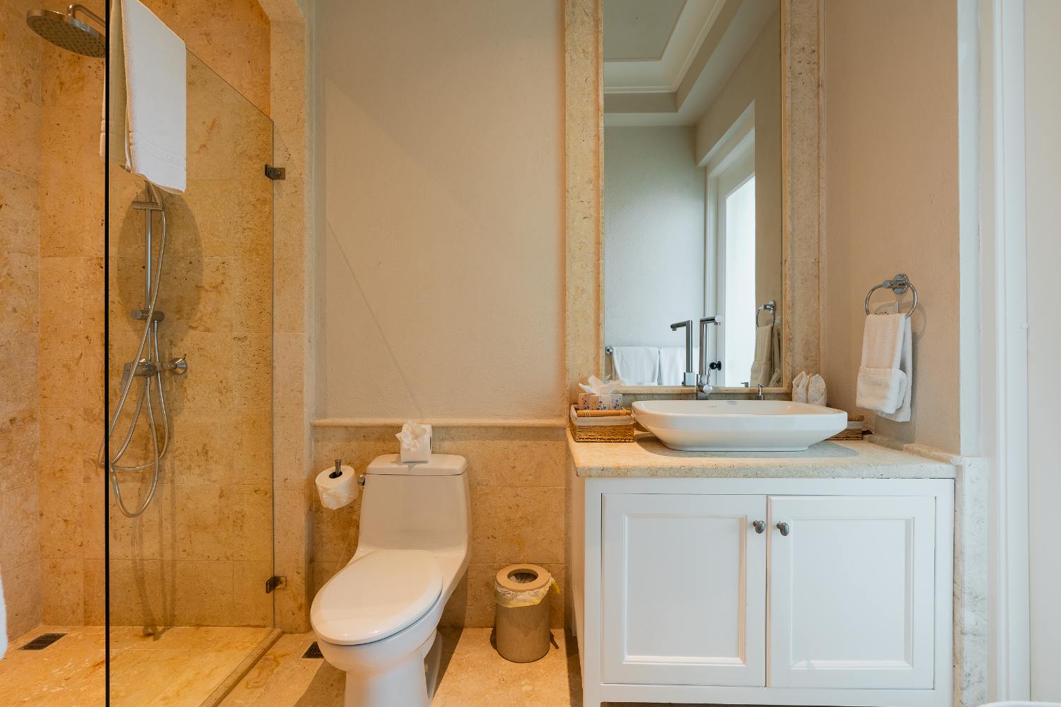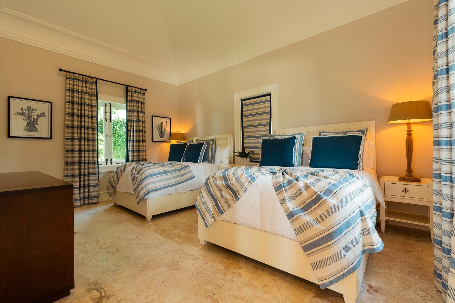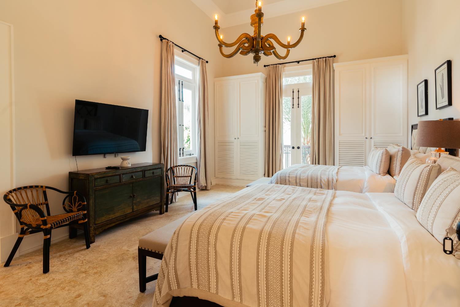 Seven beautifully furnished bedrooms resemble private suites. The main oceanfront suite has a large bathroom and dressing area that allow you to unwind into the evening, and it opens to a private terrace for first-light color and last-light tranquility. With spa-bright en suite bathrooms, ample wardrobes, quiet climate control, and cool linens against sun-warmed skin, companion suites—some featuring lounge areas and terrace or garden access—are designed for genuine relaxation. Couples withdraw to their areas of light and breeze, families spread out without interfering with each other’s rhythms, and everyone re-connects where the pool meets the sea.