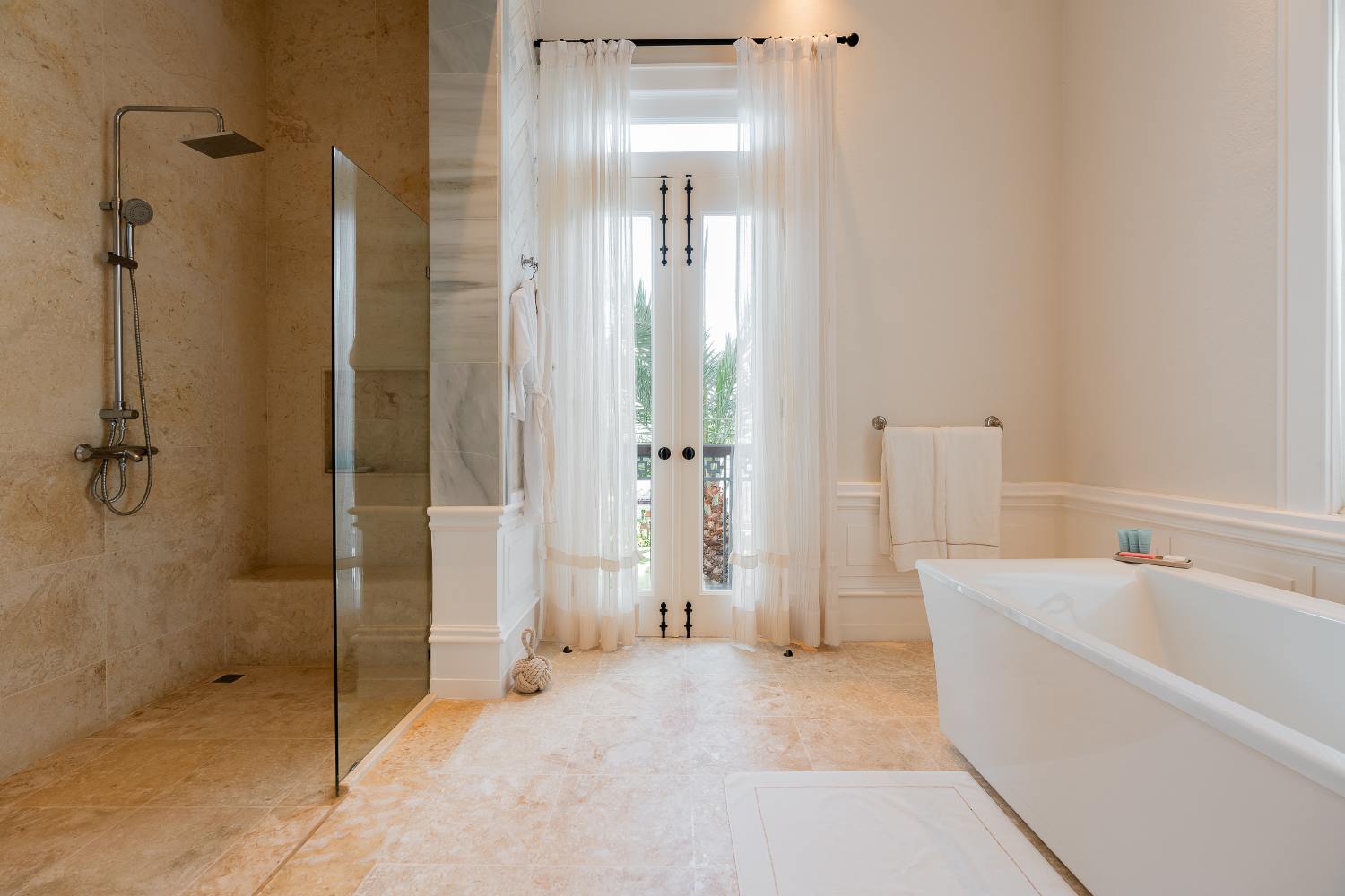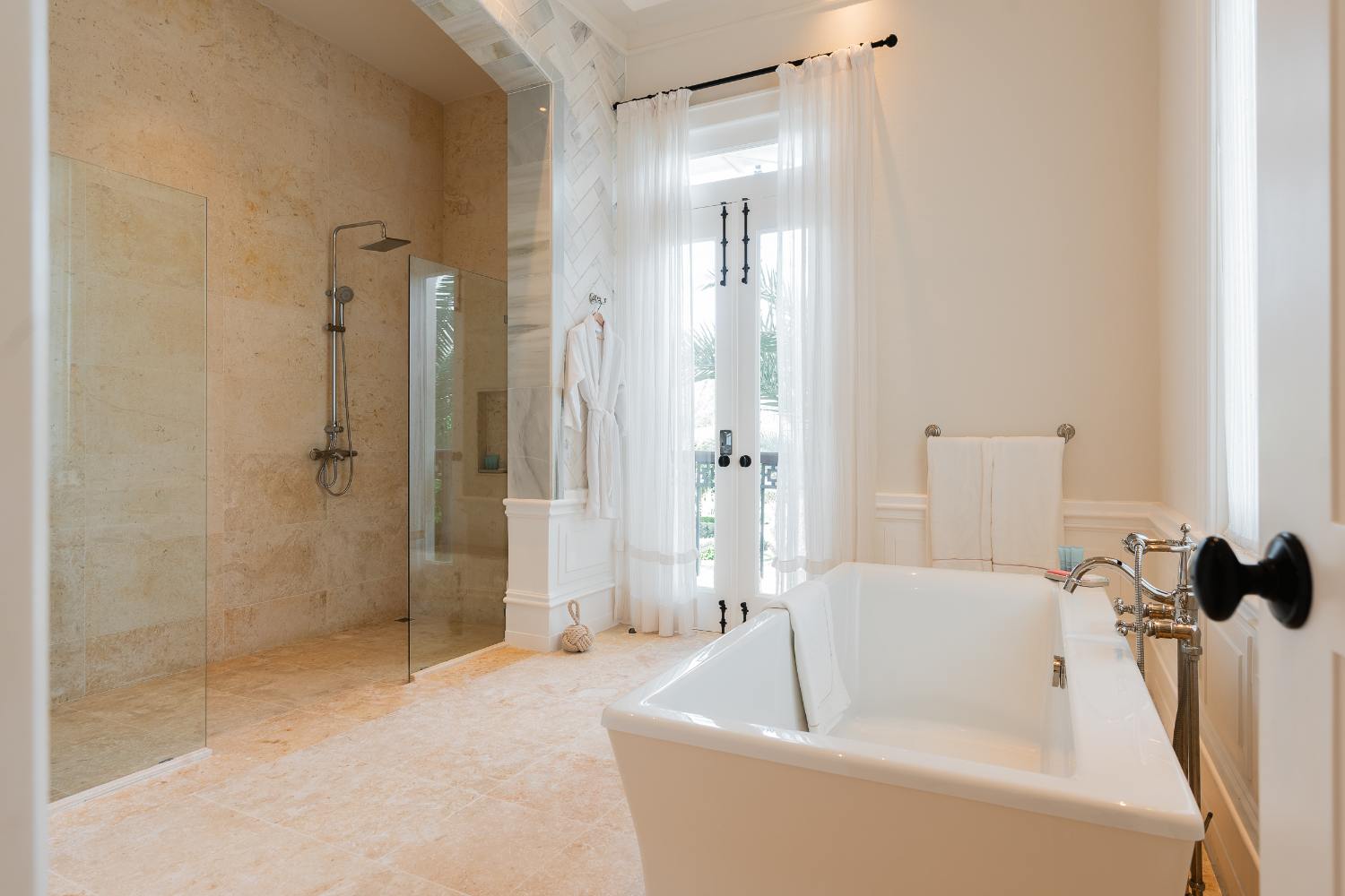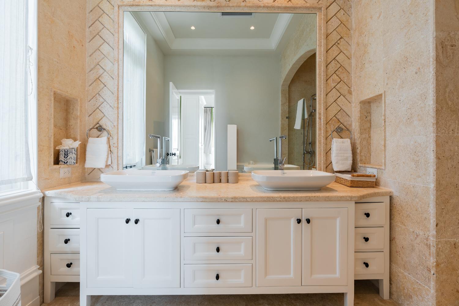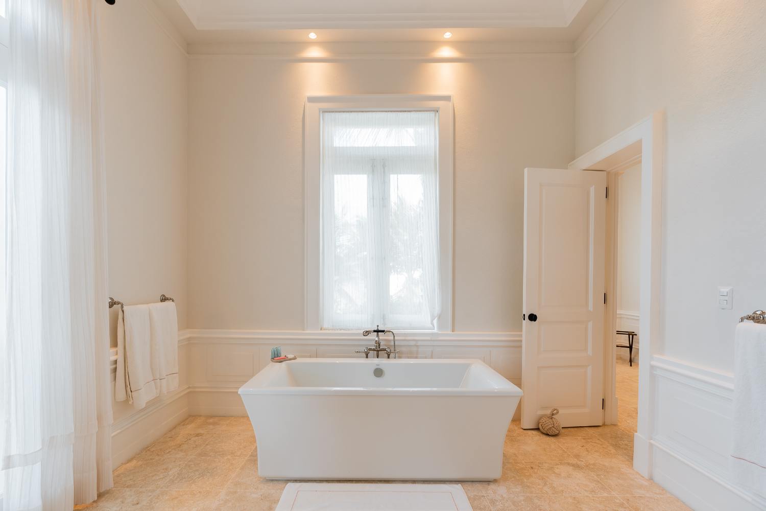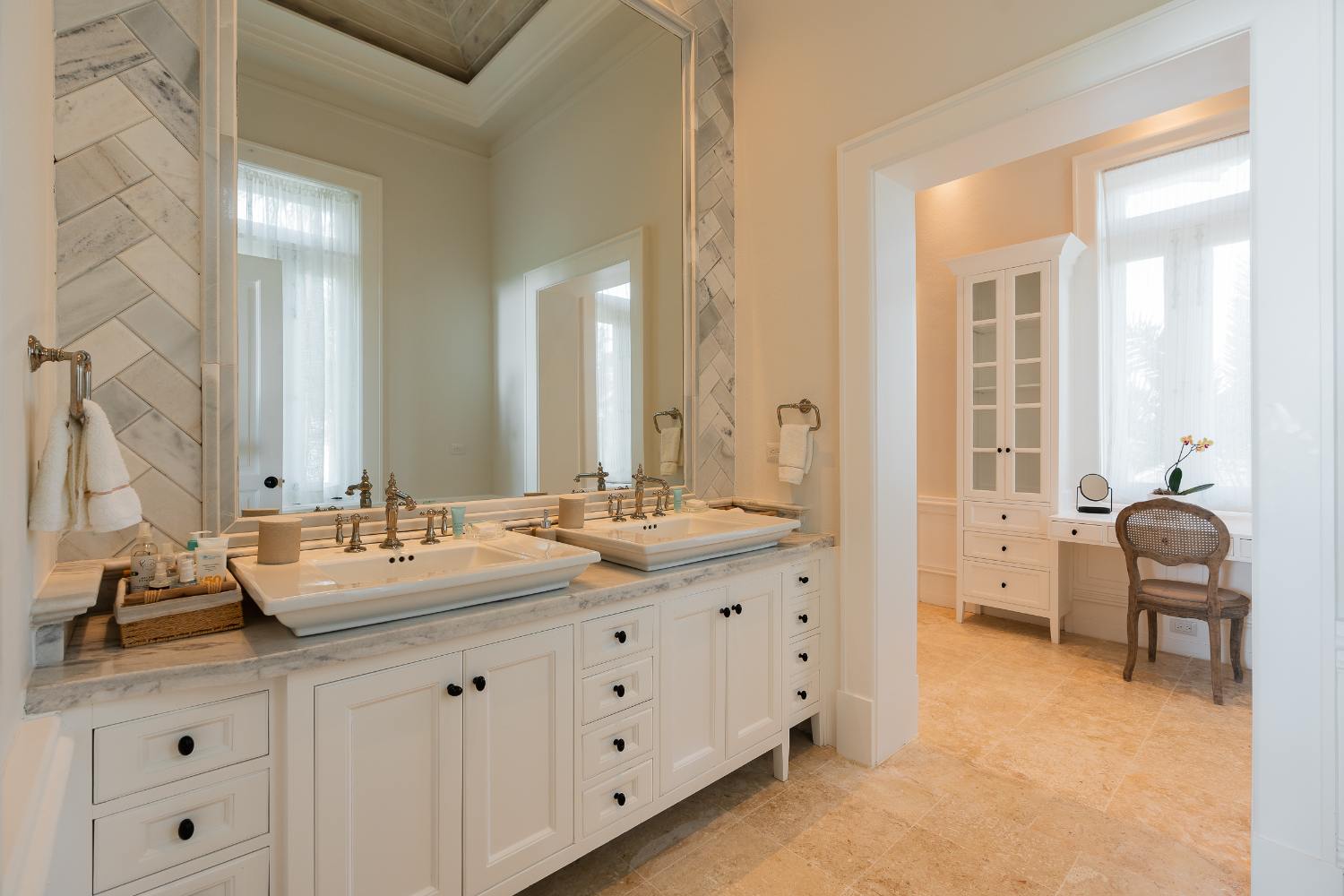 Seven beautifully furnished bedrooms resemble private suites. The main oceanfront suite has a large bathroom and dressing area that allow you to unwind into the evening, and it opens to a private terrace for first-light color and last-light tranquility. With spa-bright en suite bathrooms, ample wardrobes, quiet climate control, and cool linens against sun-warmed skin, companion suites—some featuring lounge areas and terrace or garden access—are designed for genuine relaxation. Couples withdraw to their areas of light and breeze, families spread out without interfering with each other’s rhythms, and everyone re-connects where the pool meets the sea.