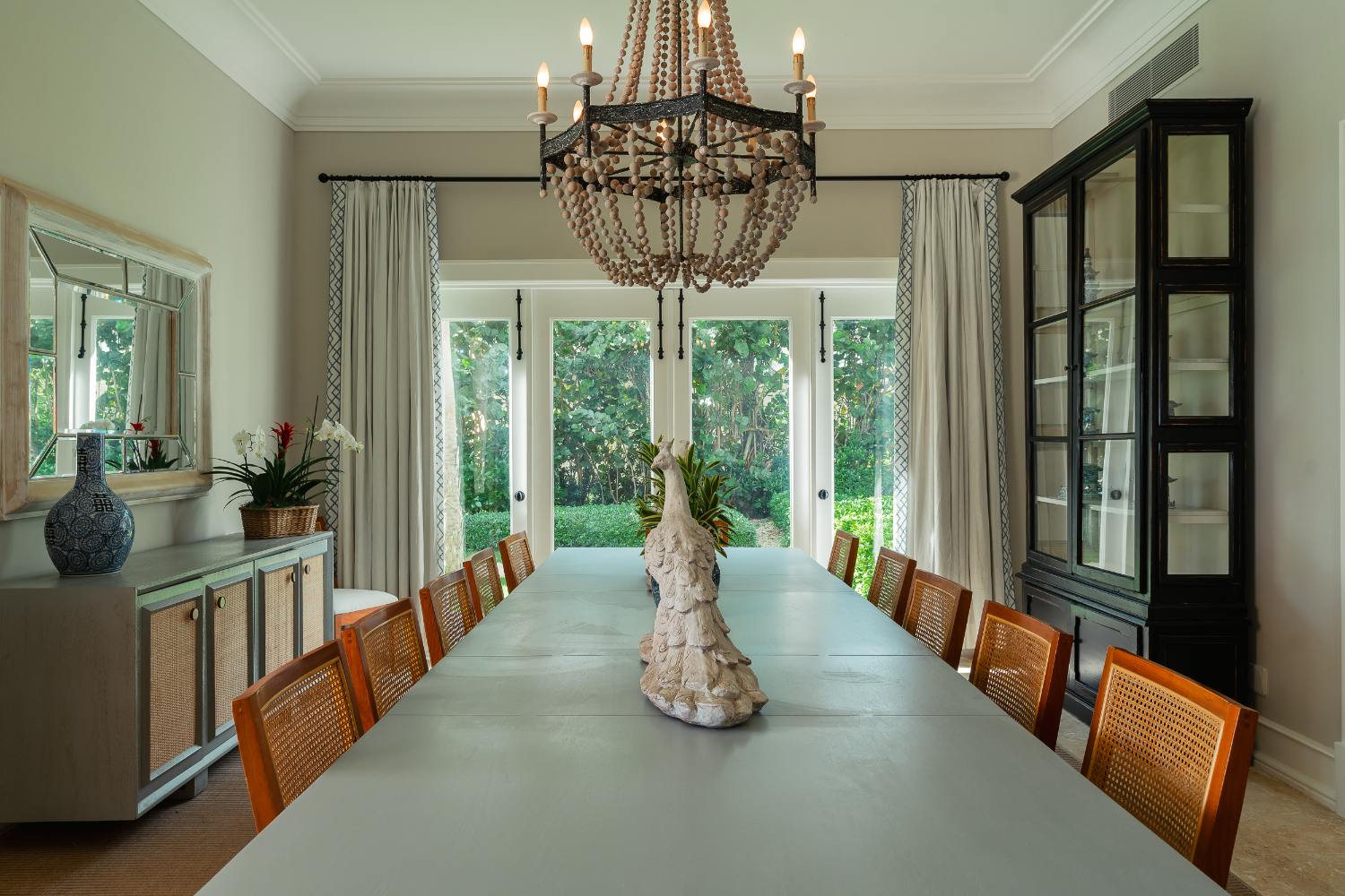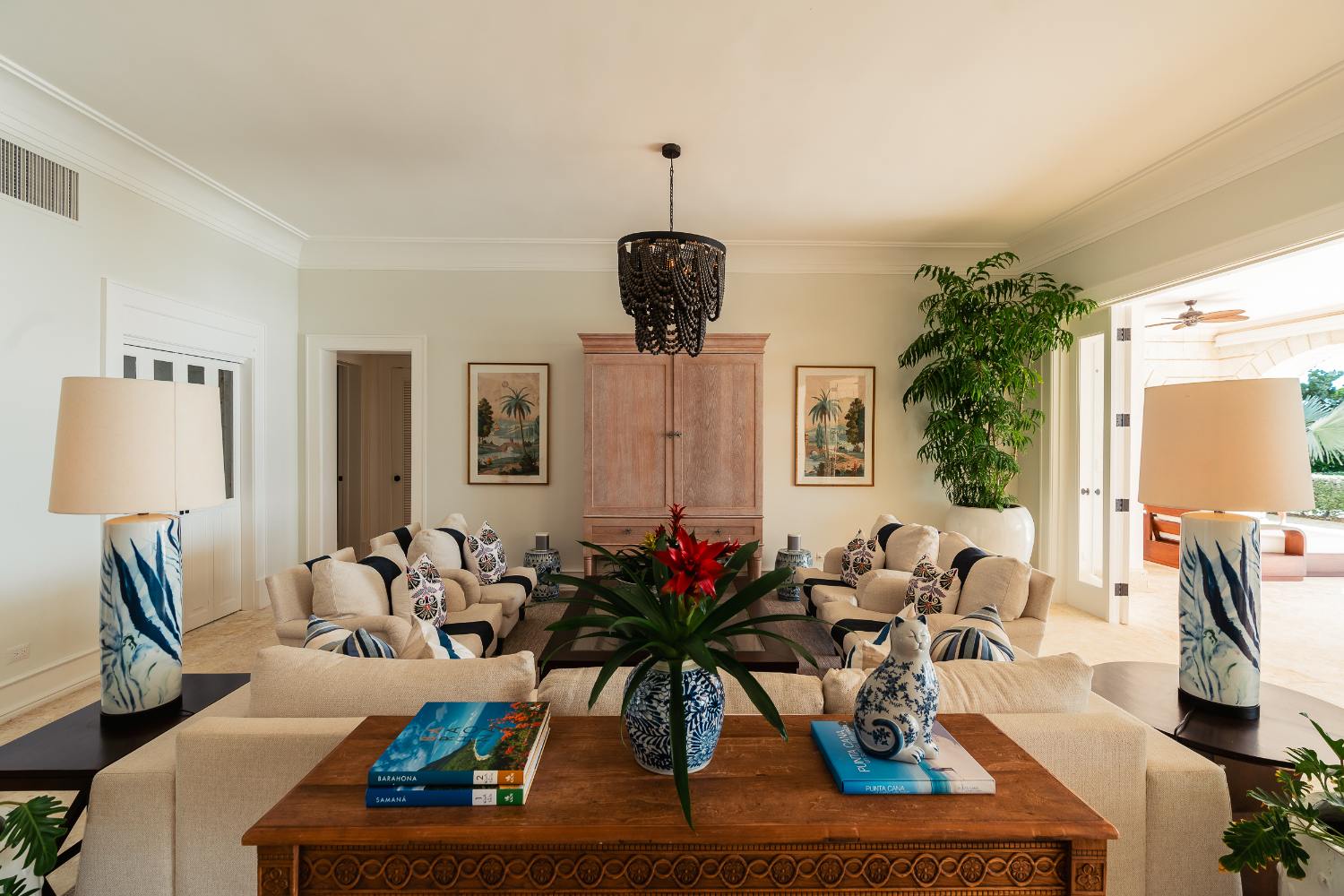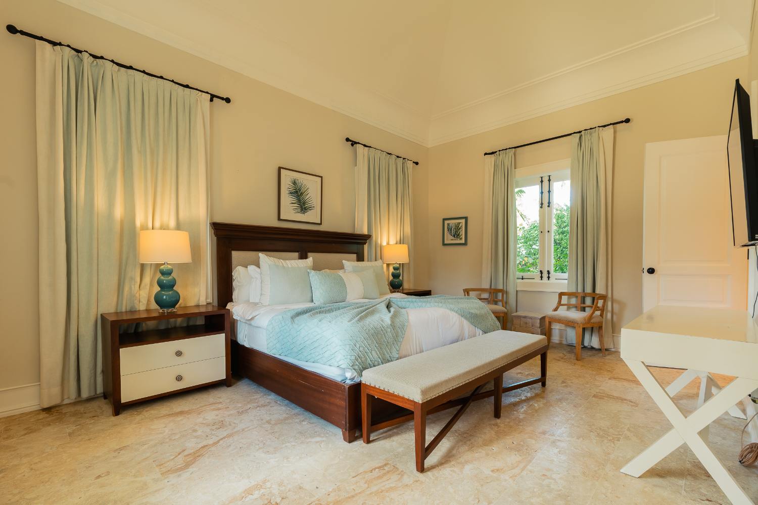 Here, life happens simultaneously indoors and outdoors. The house is gathered for late-night stories and sunrise coffee in a spacious great room that frames the ocean and the finishing green like a living mural. Meals are kept interesting by a variety of dining settings, such as a formal table that transforms festivities into memories, a shaded terrace where lengthy lunches float, and a perch with a view of the sea that is perfect for Dominican twilight.