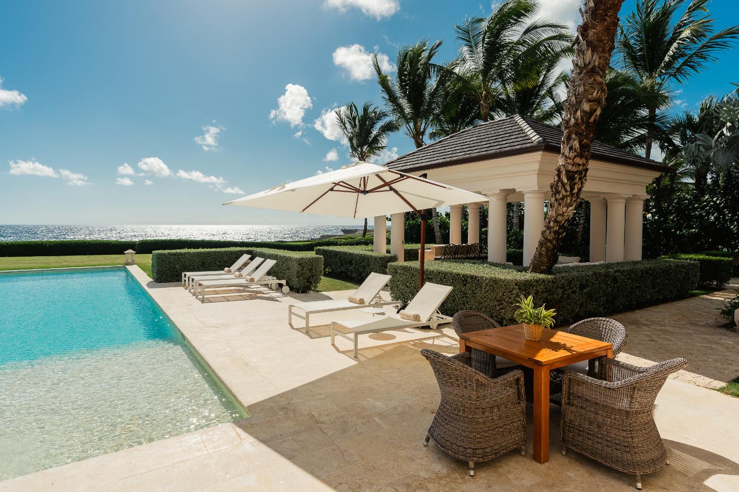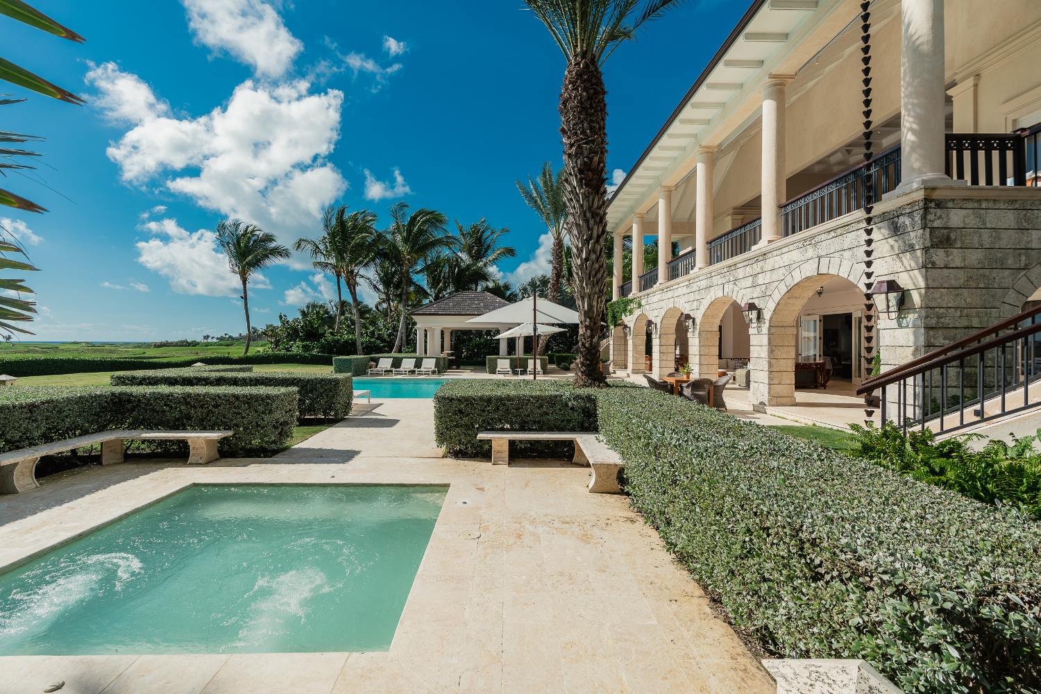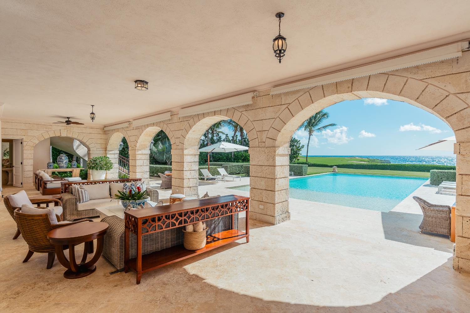 Situated on a large 4,443 m² (≈1.1 acres) plot of land with roughly 1,380 m² (14,850 ft2) of interior space, this seven-bedroom sanctuary is designed for both luxurious living and peaceful restoration. Warm wood and Coralina stone are bathed in morning light; glass walls open to let birdsong and sea breezes wander through salons, galleries, and verandas; the horizon draws every room outward to the pool, lawn, and blue beyond. The best Punta Cana villas are polished, incredibly livable, and tailored to how families and friends truly enjoy vacations together. This is the sophisticated ease that most travelers envision.