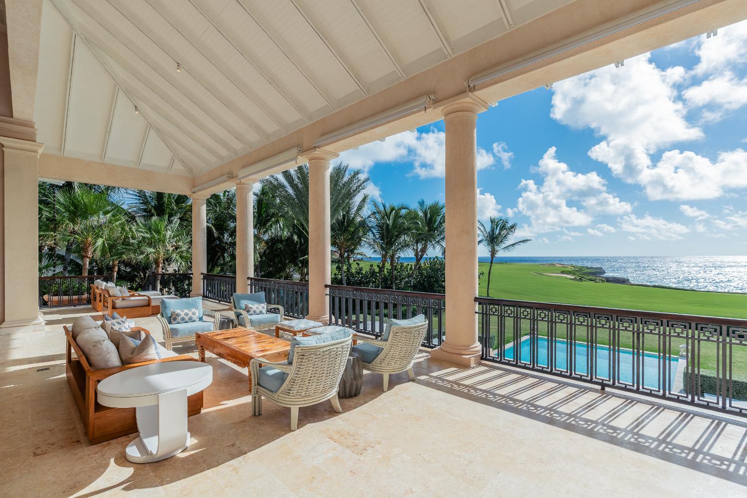 Villa Miramar, an architectural statement situated along the 18th hole at the Corales Championship Course, where fairway greens give way to the endless Caribbean, can be seen by following the coral-fringed coast past swaying palms.