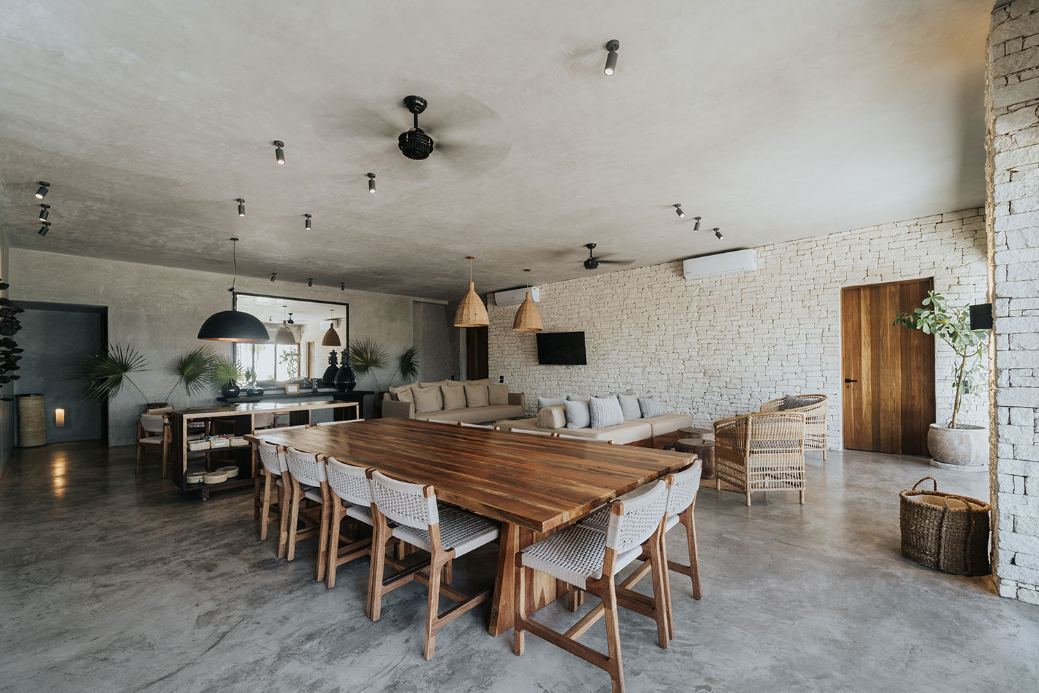 The name Moloch means in Mayan “together”, and the villa itself was built for coexistence. Its elegant open floor plan creates a homey gathering space that fuses the indoors with the outdoors and lets nature in. So whether you are chilling in the lounge, spending some time at the pool, or simply taking in the stunning natural surroundings, you will always be close to the landscape and to one another.