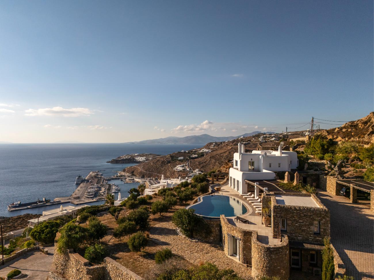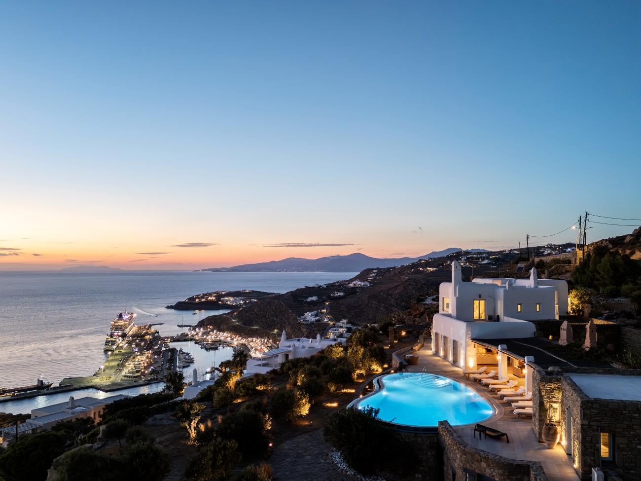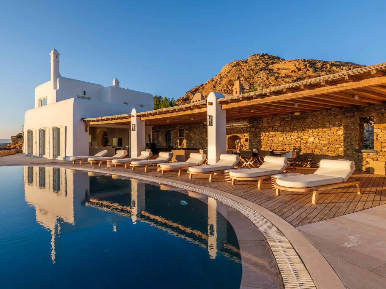 After spending a few hours at the south-coast beaches (Ornos for families, Psarou for people-watching, Paraga for music) on another day, head back to the villa for a late-night movie at the theater and one last swim outside. On the third day, stay completely local: wake up slowly, work out in the gym while the town below comes to life, spend the afternoon lounging in the shaded lounges and by the pool, and end the day with a private chef dinner on the terrace while the boats follow their paths across the dark water.