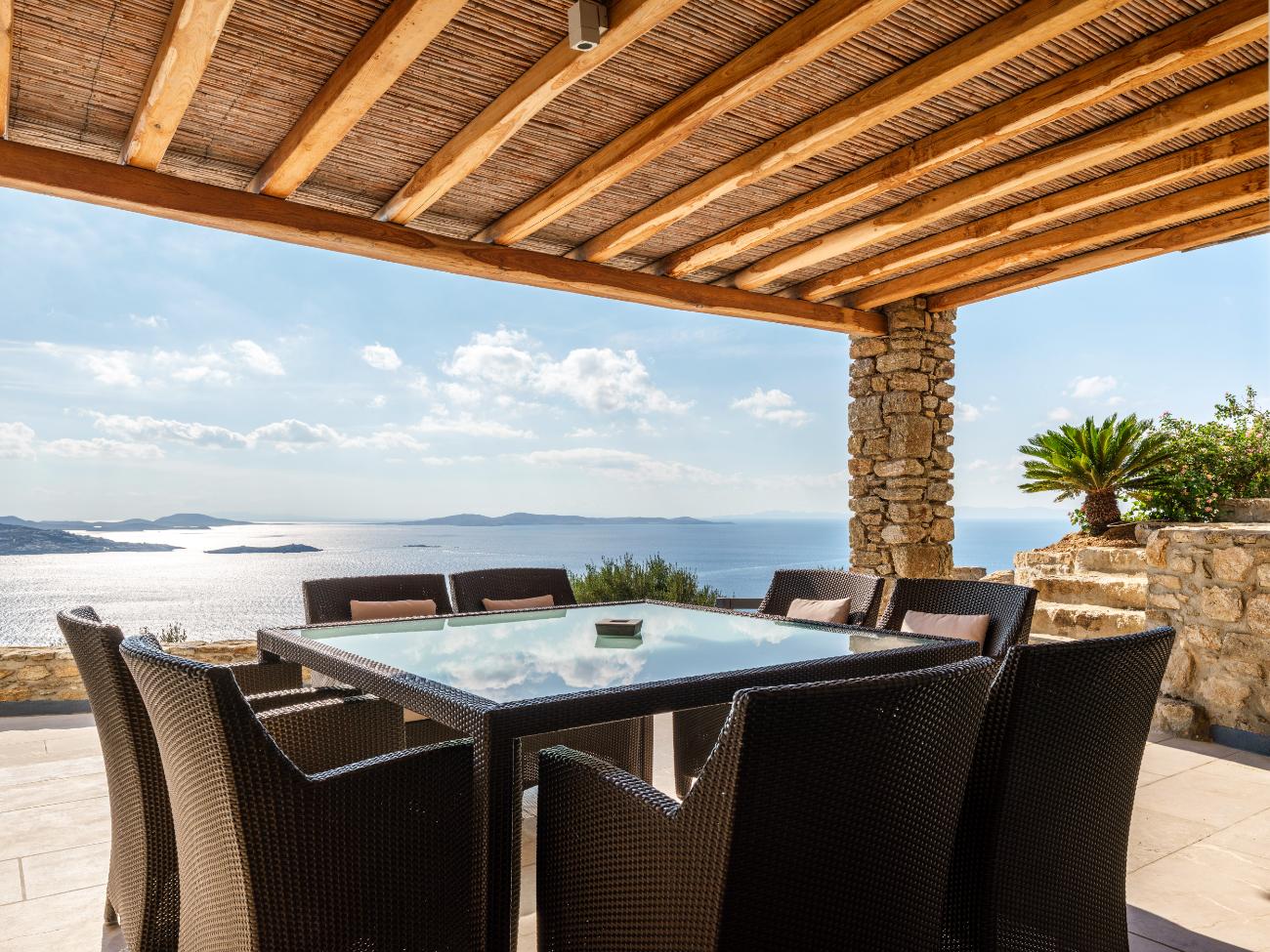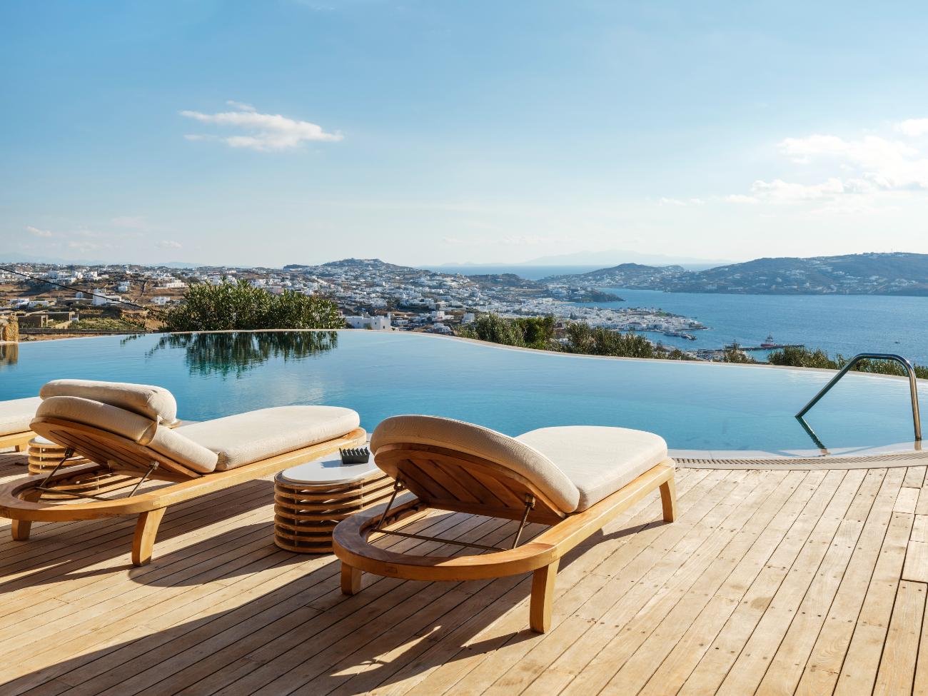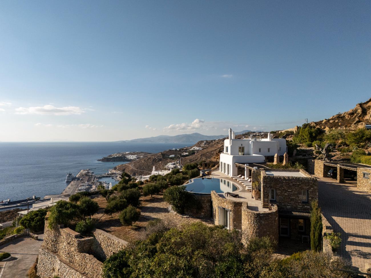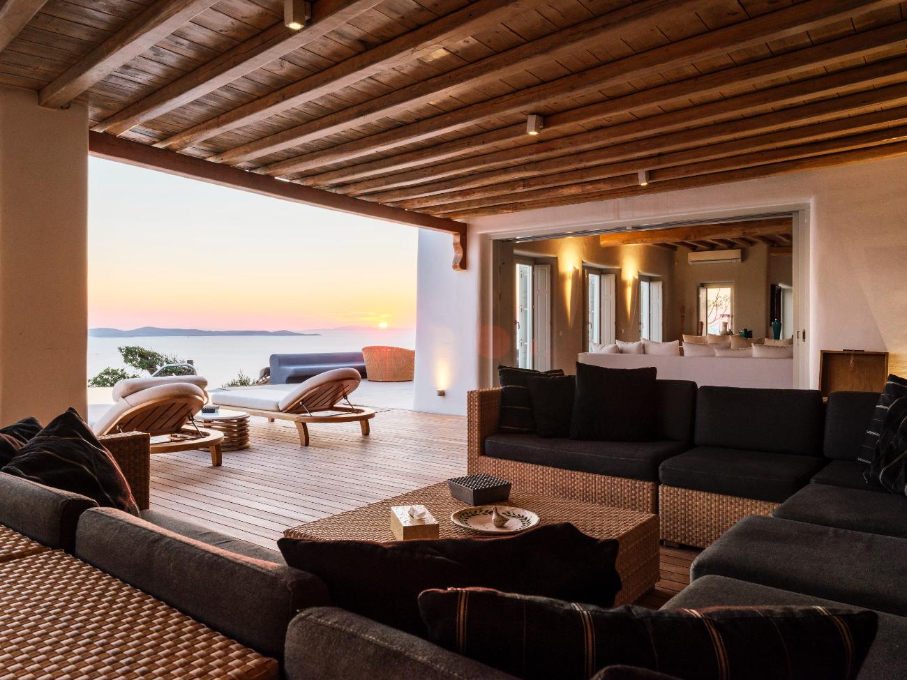 After spending a few hours at the south-coast beaches (Ornos for families, Psarou for people-watching, Paraga for music) on another day, head back to the villa for a late-night movie at the theater and one last swim outside. On the third day, stay completely local: wake up slowly, work out in the gym while the town below comes to life, spend the afternoon lounging in the shaded lounges and by the pool, and end the day with a private chef dinner on the terrace while the boats follow their paths across the dark water.