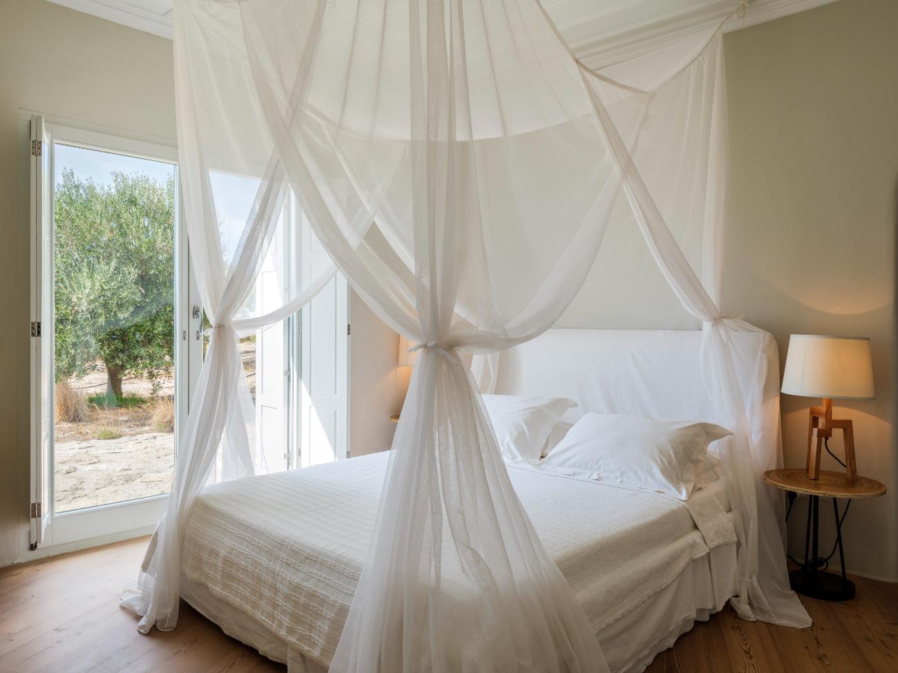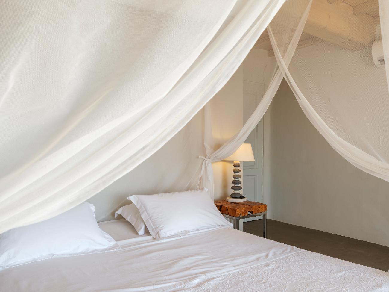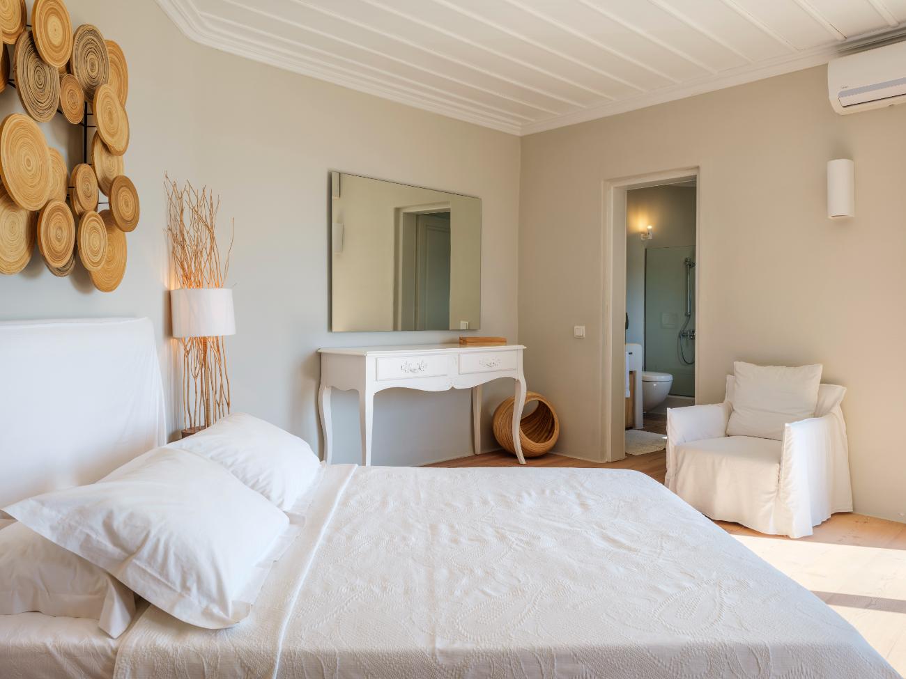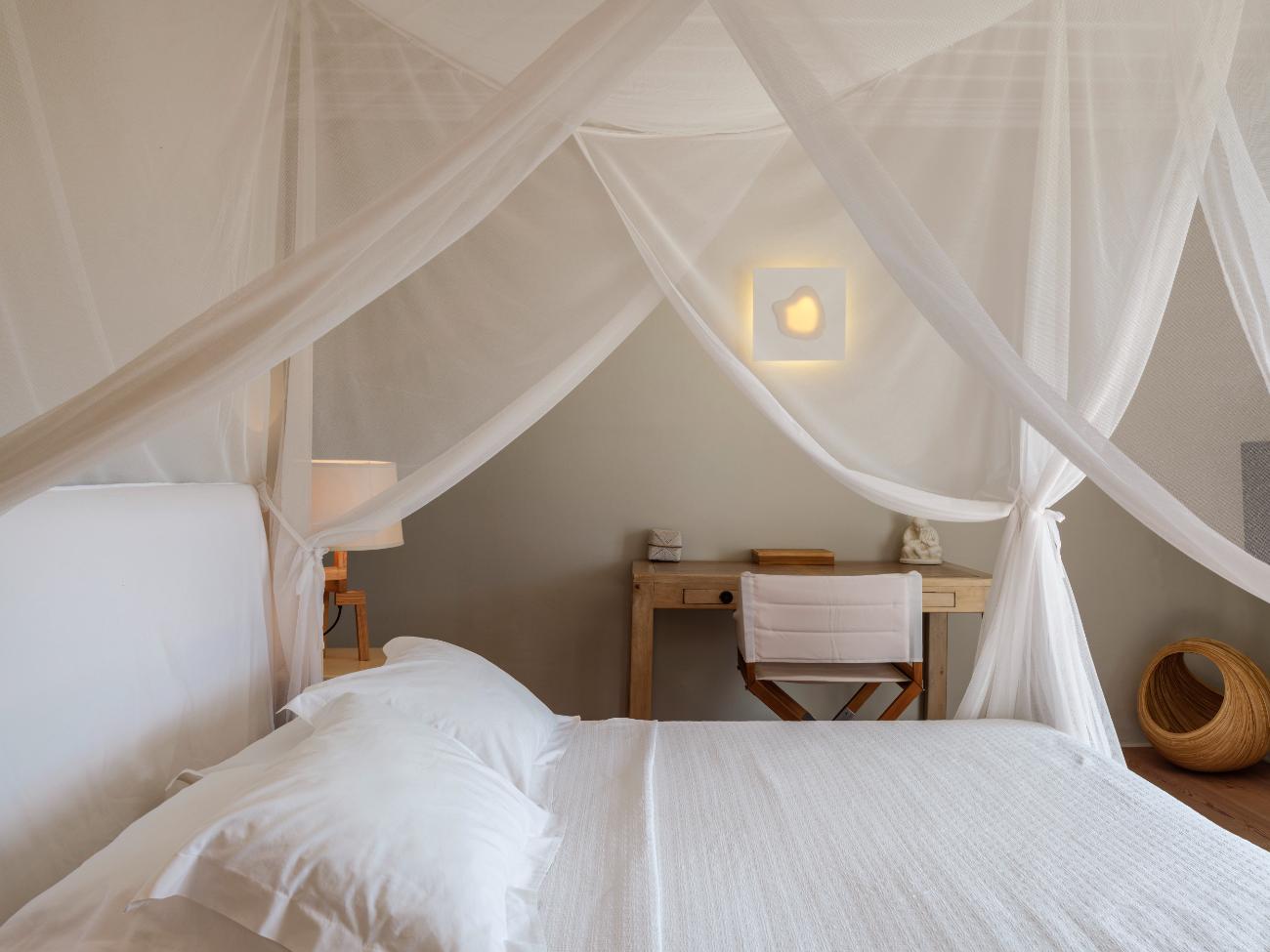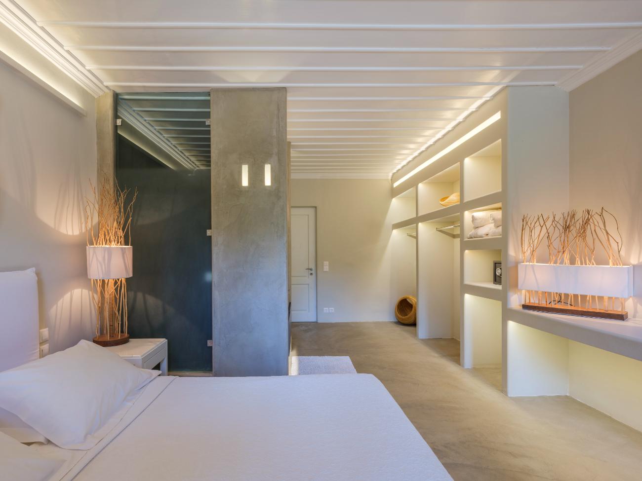 The light is the first thing you notice when you wake up in one of the ten bedrooms. Even before you stand up, you can see the bay’s curve and the whitewashed homes of Chora below thanks to floor-to-ceiling openings. No one has to sacrifice comfort thanks to the main villa’s seven double bedrooms, all of which have views of the sea and private bathrooms.