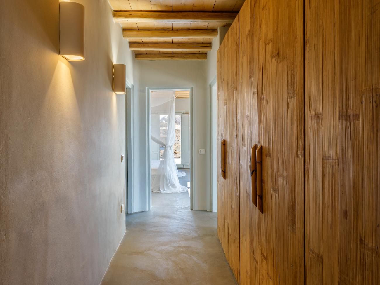 Montessito stands out among all the Mykonos Villas due to its hilltop helipad location just above town, its uncommon capacity for twenty guests spread across ten bedrooms, and its resort-style amenities, which include a large infinity pool, a private gym, a home theater, and total privacy, all wrapped in a design that feels luxurious yet effortlessly livable.