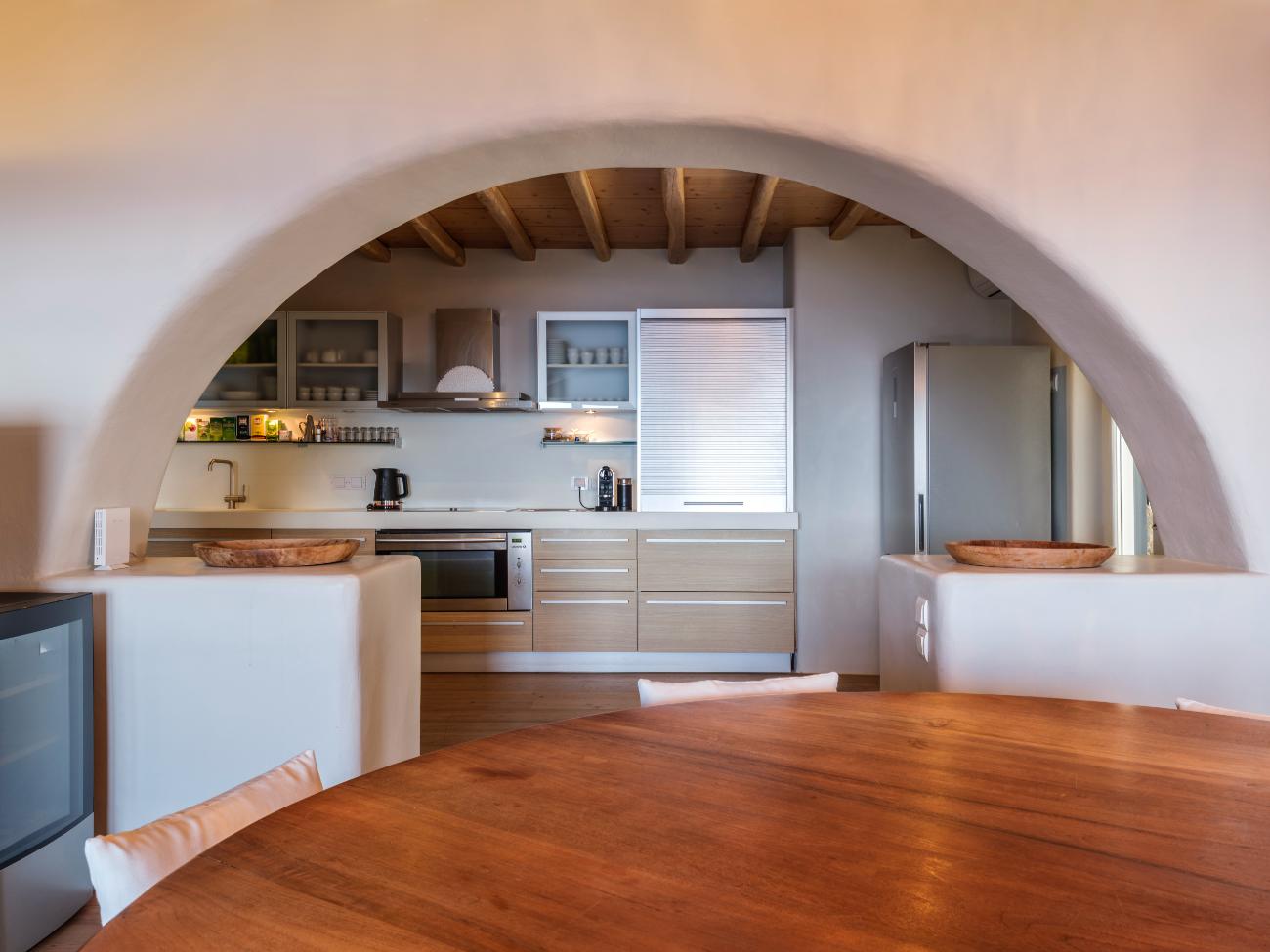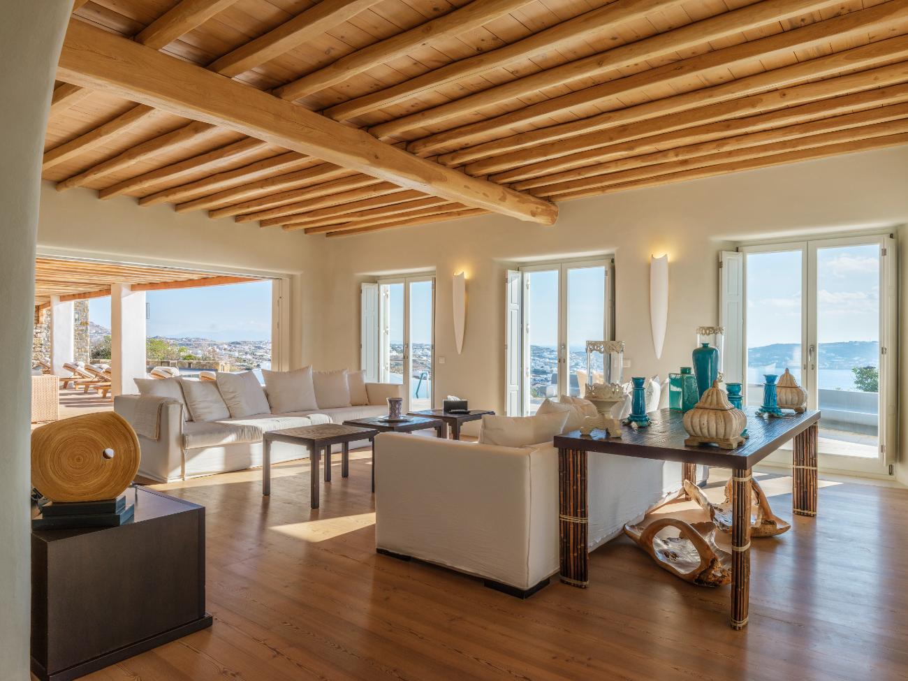 You are only a short distance from the heart of Mykonos, despite the feeling of escape. Depending on traffic and the time of day, Mykonos Town is typically 5 to 10 minutes away by car from the villa. This makes it simple to take a late afternoon stroll through Chora’s lanes, grab a drink in Little Venice, or eat dinner at one of the old-harbour restaurants before heading back to the peace of the hill.