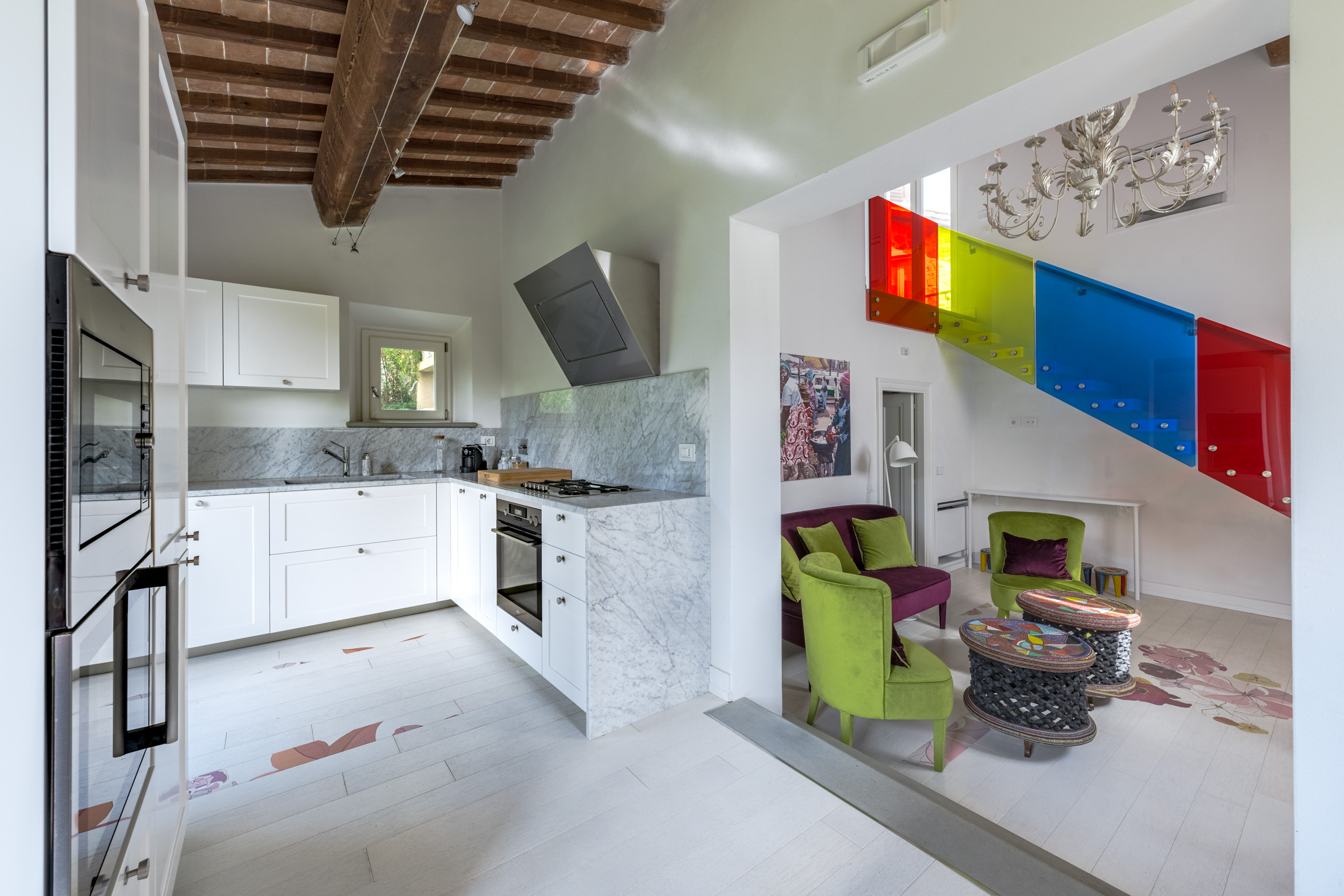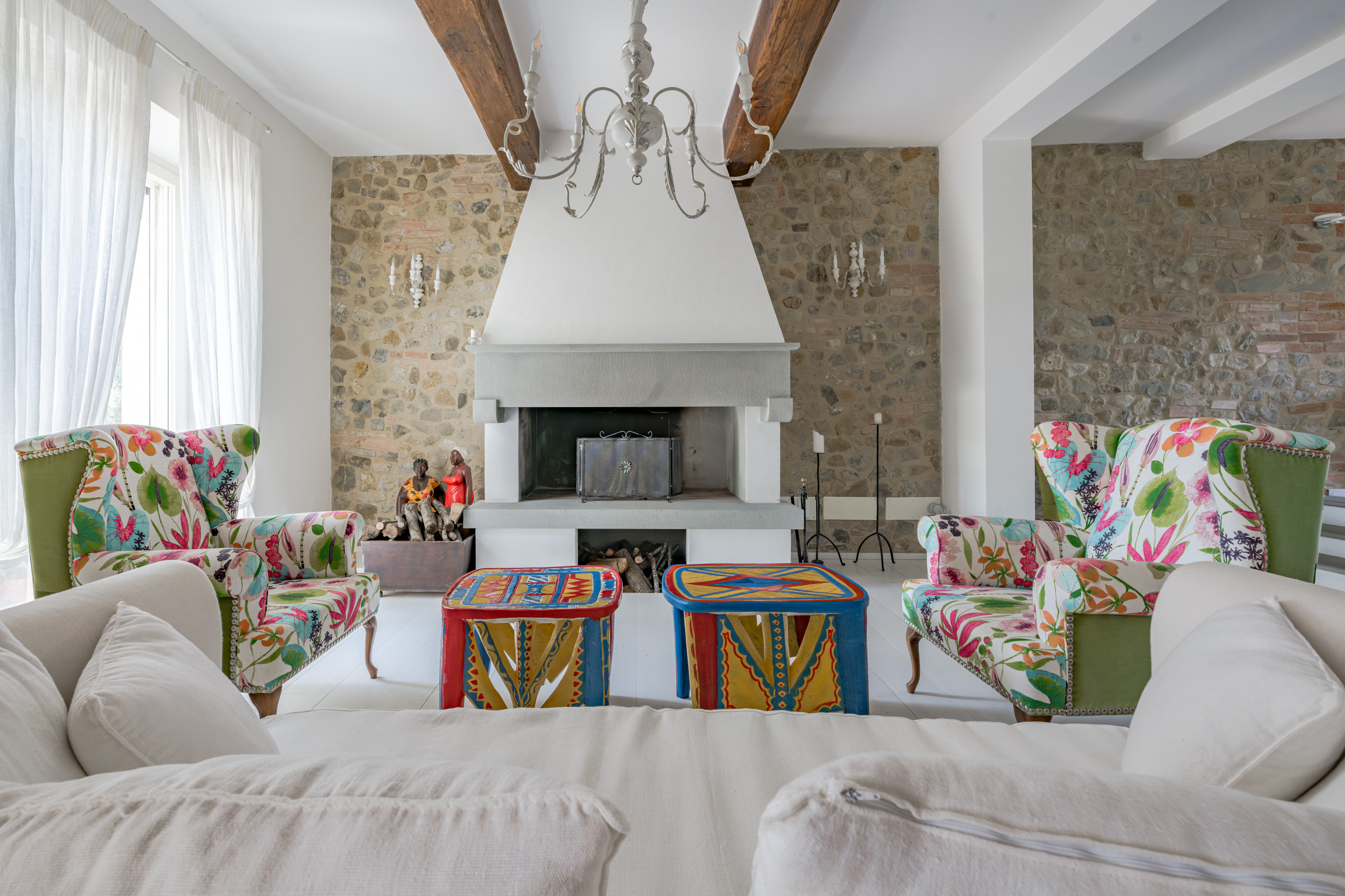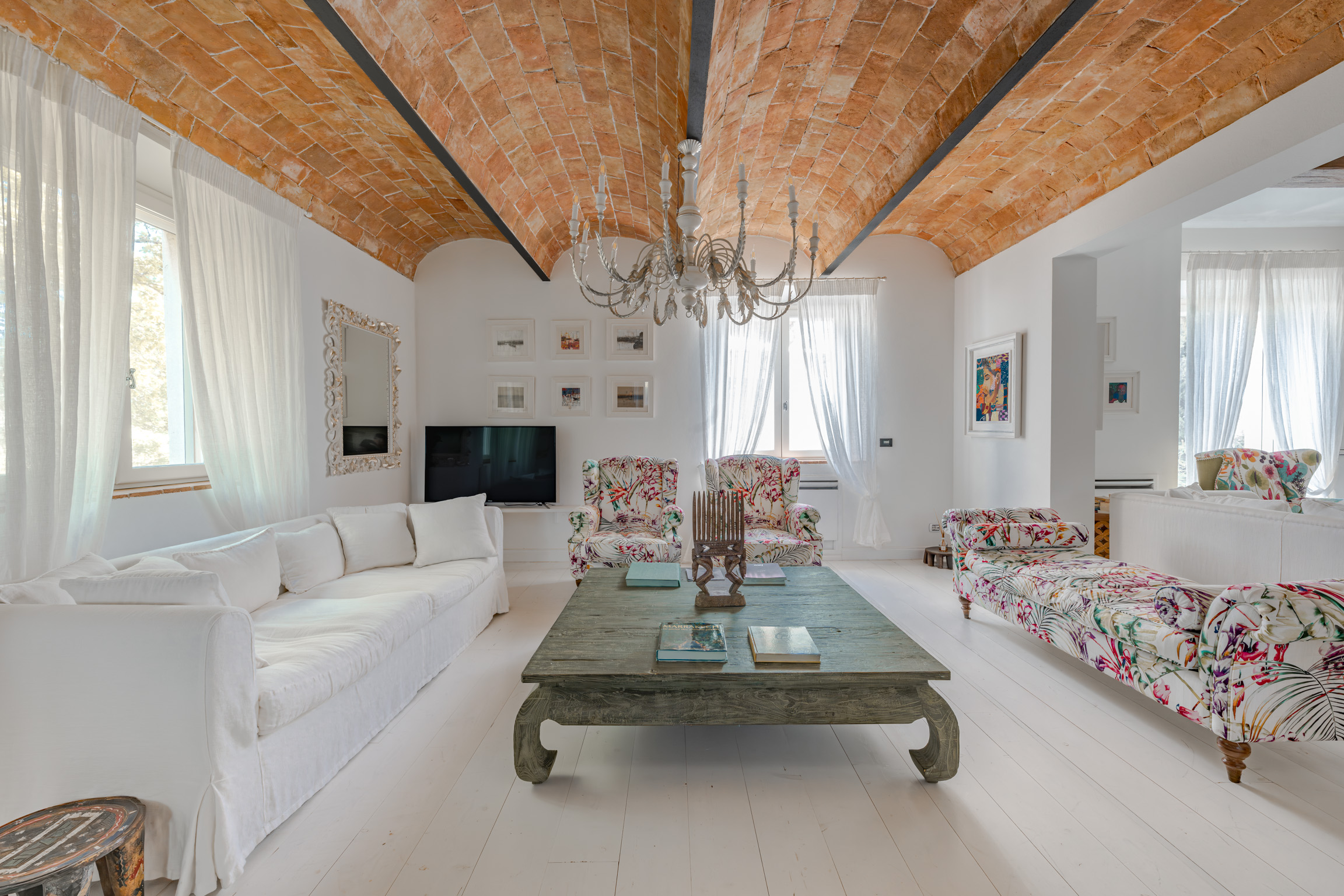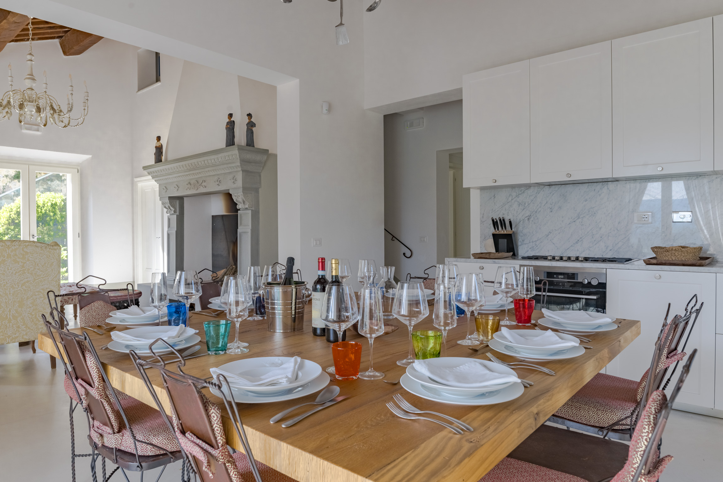 Walk into a house that feels collected, not curated—where color, pattern, and texture play together in a way that’s both bold and beautifully balanced. The estate unfolds across three private residences: the main villa, an adjacent guest house with its own entrance, and an independent annex—ideal for groups who want togetherness with breathing room.