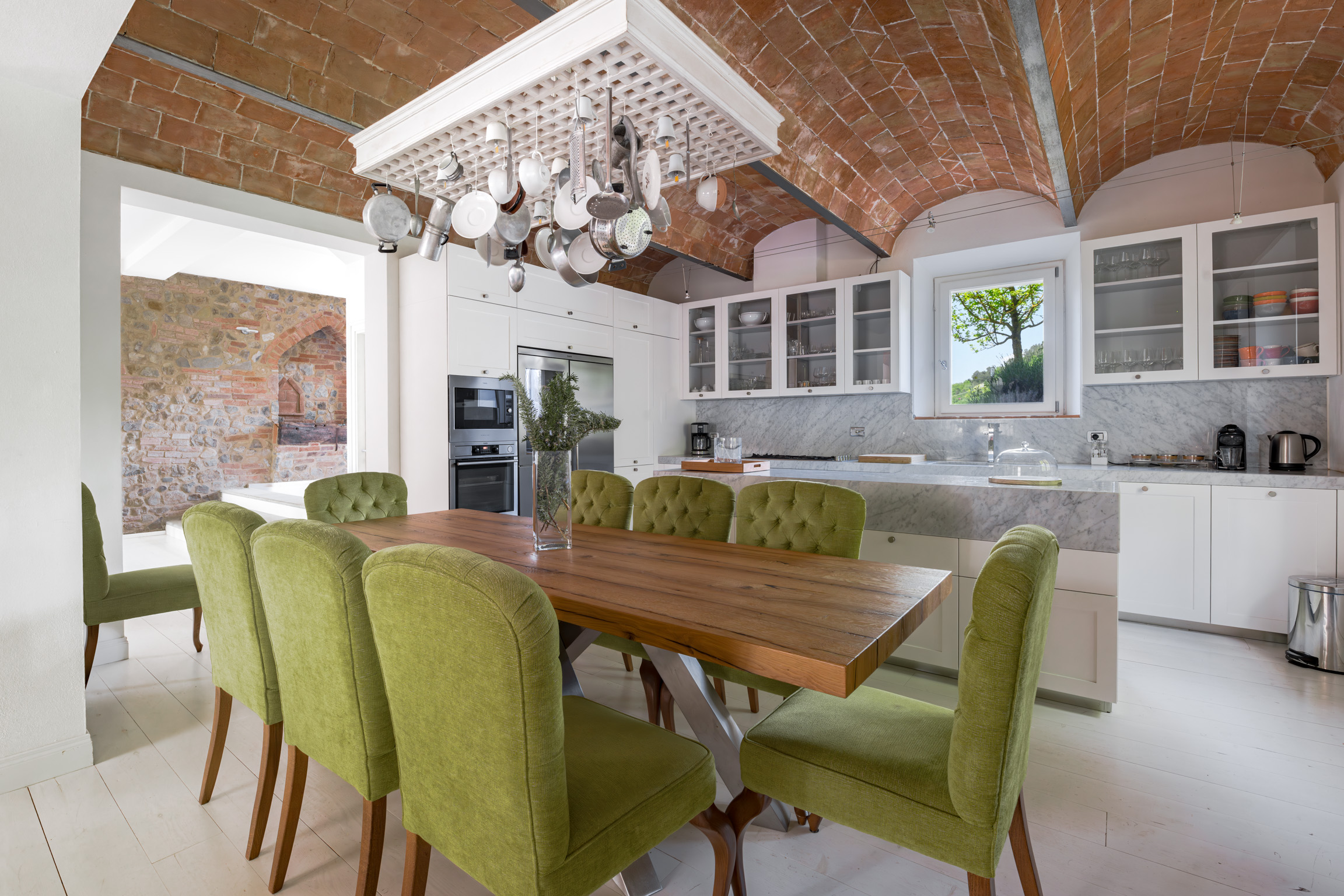 Each space offers its own finely furnished living and dining areas, styled with distinctive pieces and thoughtful details, plus modern, practical kitchens designed for effortless days at home. The designer-owner’s signature is everywhere: a deep respect for the property’s farmhouse soul, elevated by contemporary finishes and a level of taste that feels quietly confident.