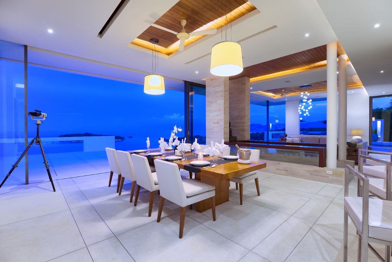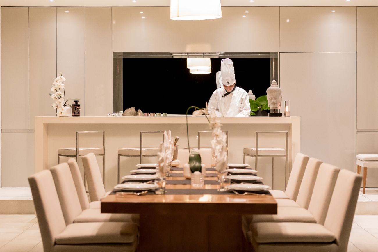 The villa’s private chef curates bespoke menus of Thai and international cuisine, using fresh and organic ingredients sourced from local farms. Meals can be served in the elegant dining room or outdoors beneath the stars, with attentive staff ensuring every moment feels effortless.