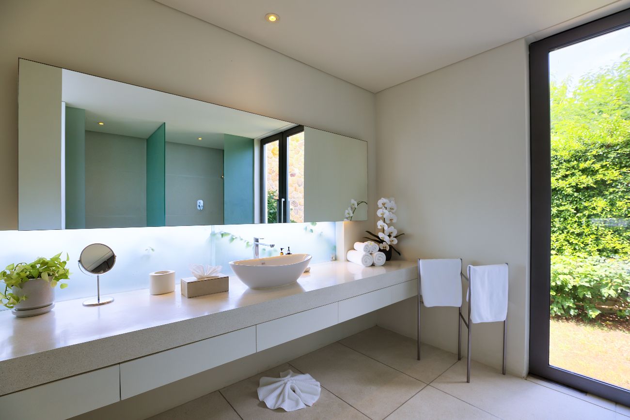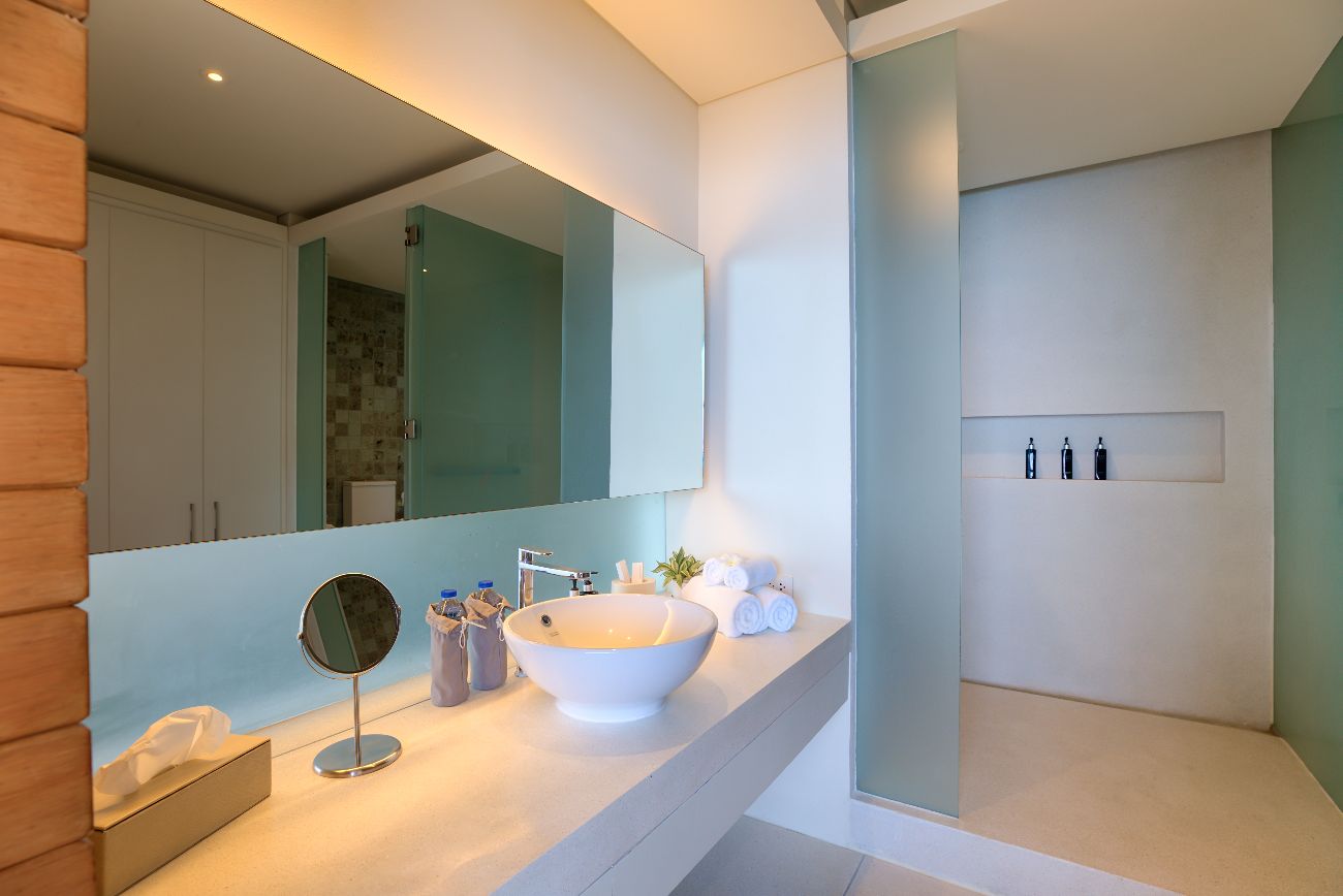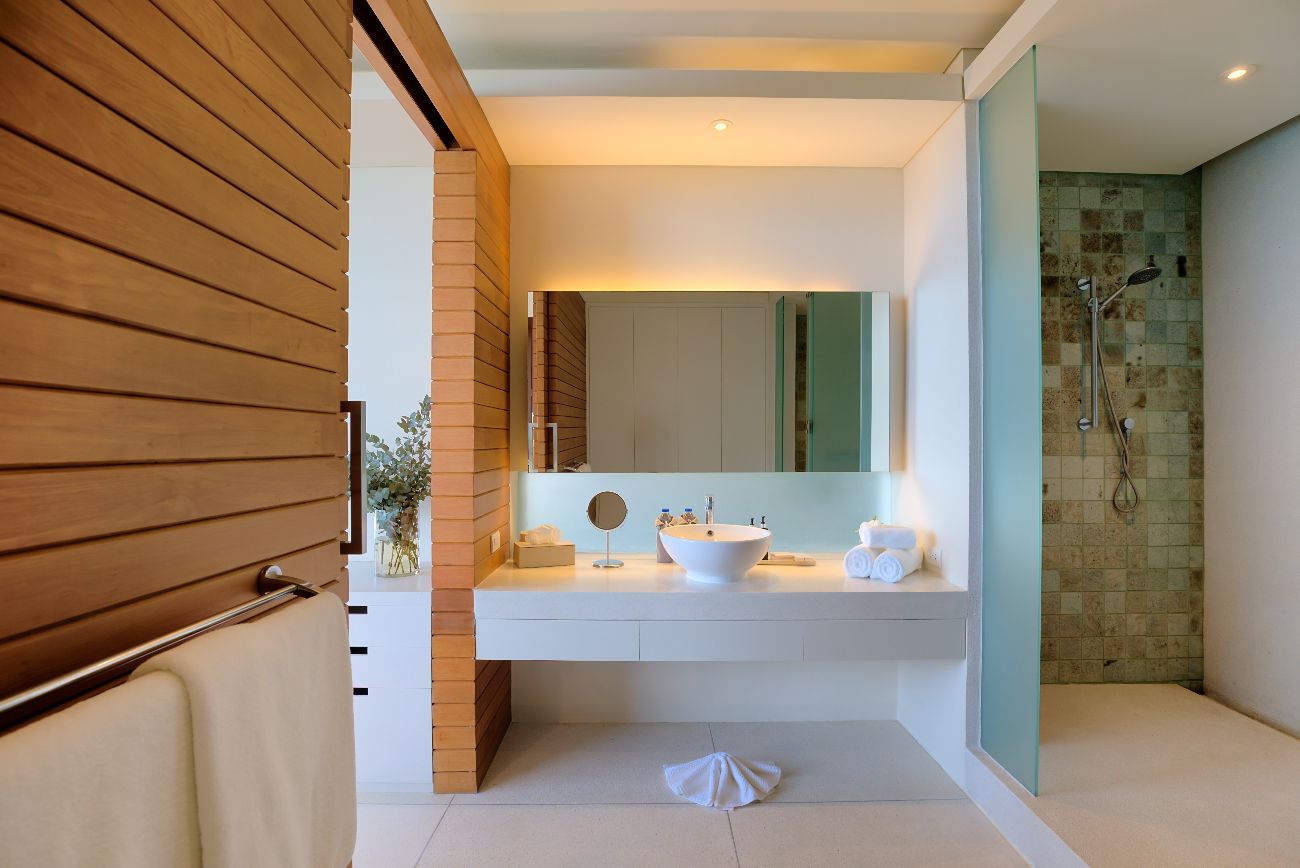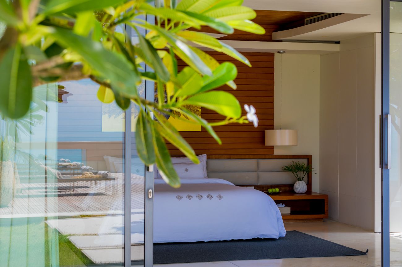 Villa Natha features five stylish double bedrooms (three king, two queen), each with mesmerizing sea views. The two master suites boast expansive ensuite bathrooms with twin basins, indoor and outdoor showers, and direct access to terraces. The remaining bedrooms are equally comfortable, with private balconies, sleek design, and resort-style amenities.