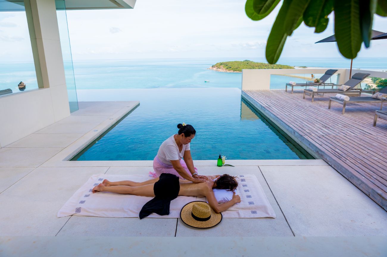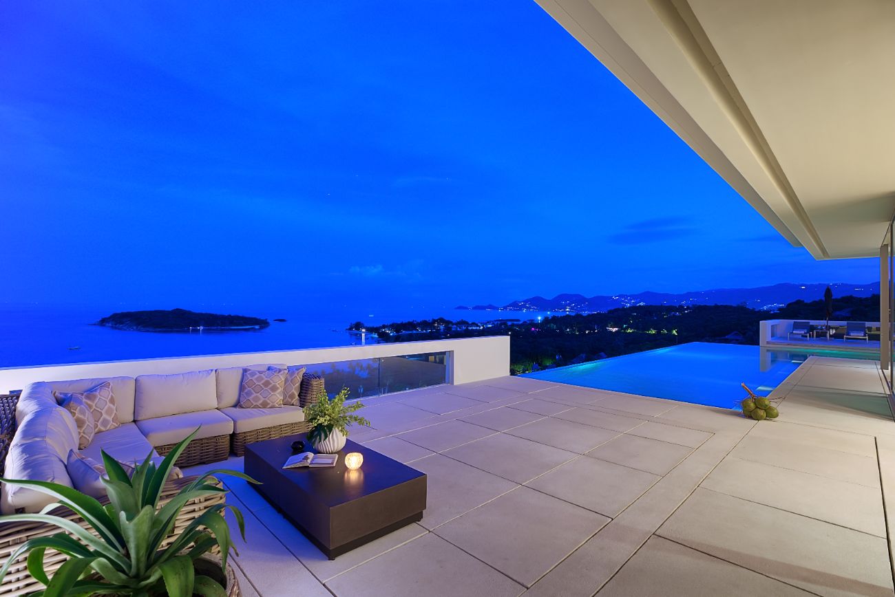 Perched on a lush hillside overlooking Chaweng Bay, Villa Natha is a chic, contemporary escape that redefines luxury living on Koh Samui. With panoramic 180-degree views of the island’s coastline and the Gulf of Siam, this five-bedroom villa offers the perfect blend of modern sophistication, personalized service, and eco-conscious design—all just minutes from the island’s vibrant shopping, dining, and nightlife.