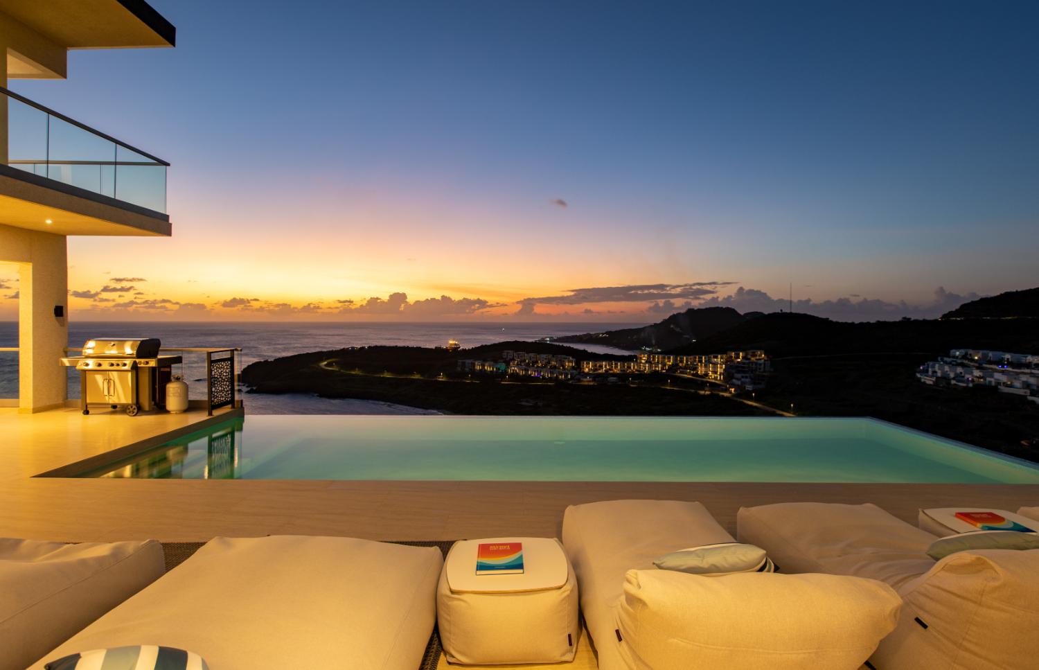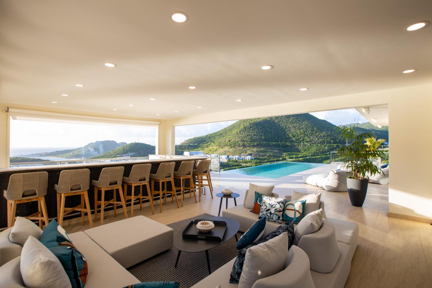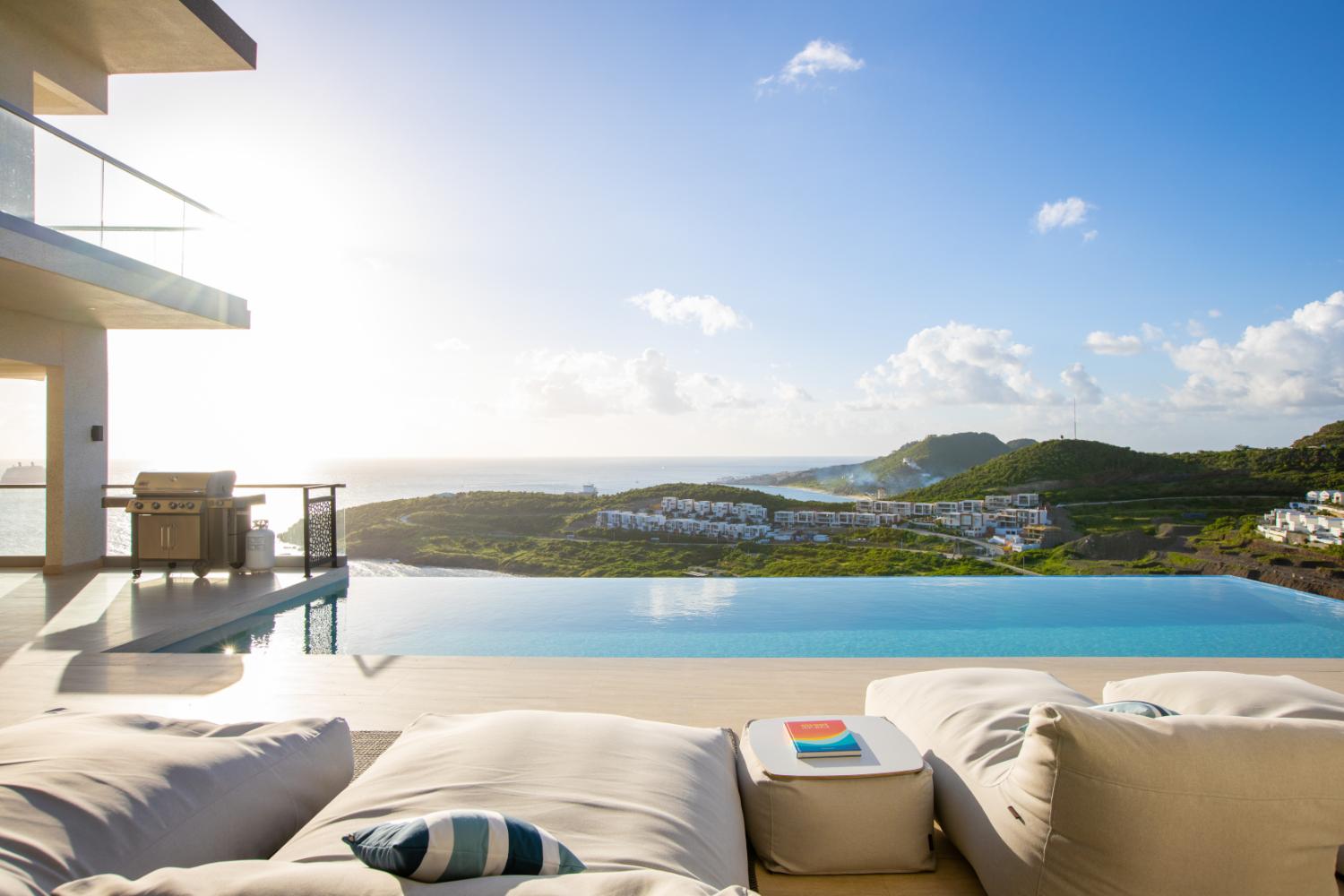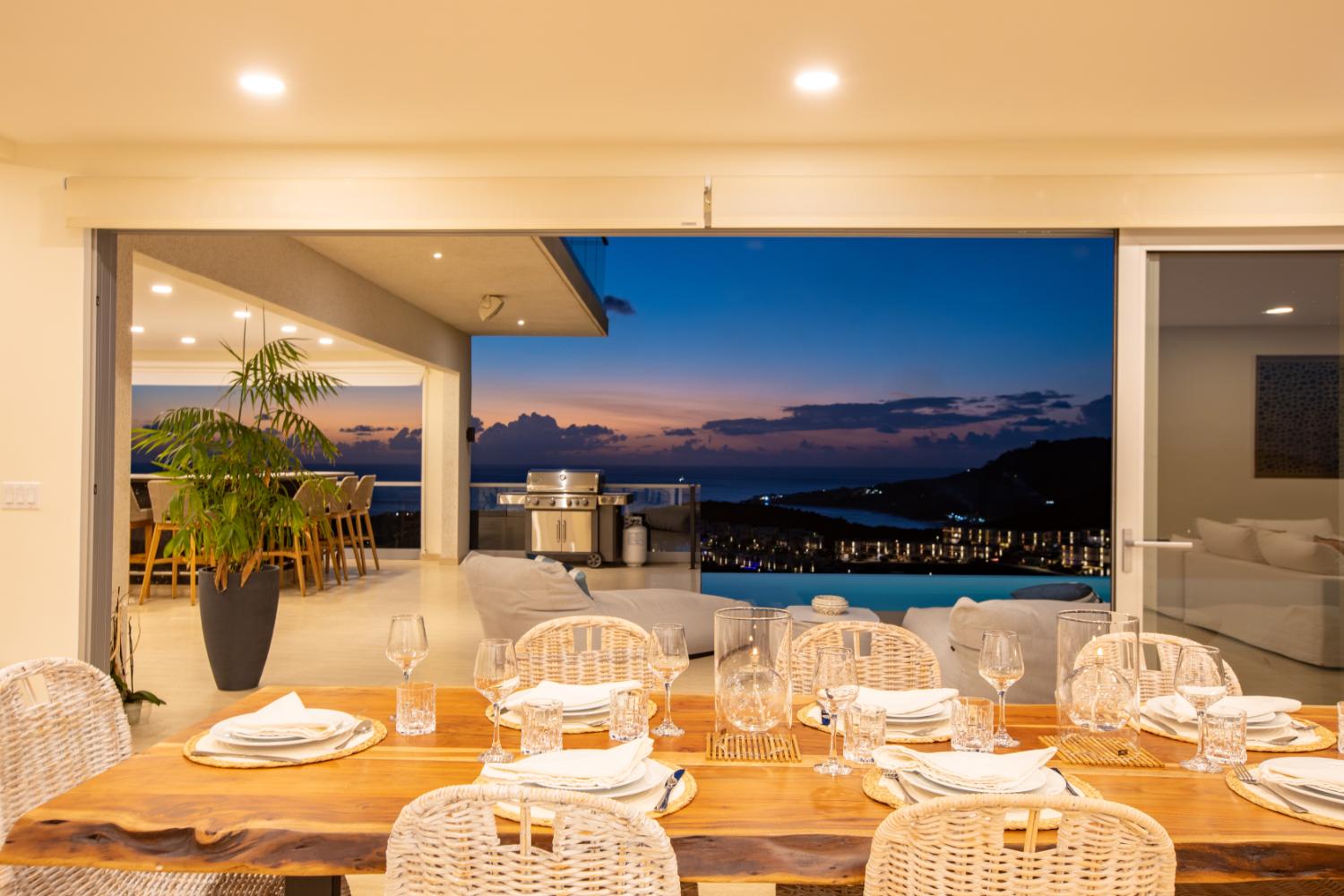 Among St Martin Villas, Villa Numa stands apart for its elevated Indigo Bay location combined with panoramic sunset views, expansive indoor-outdoor living spaces, and a rare six-bedroom layout designed to host groups while maintaining privacy.