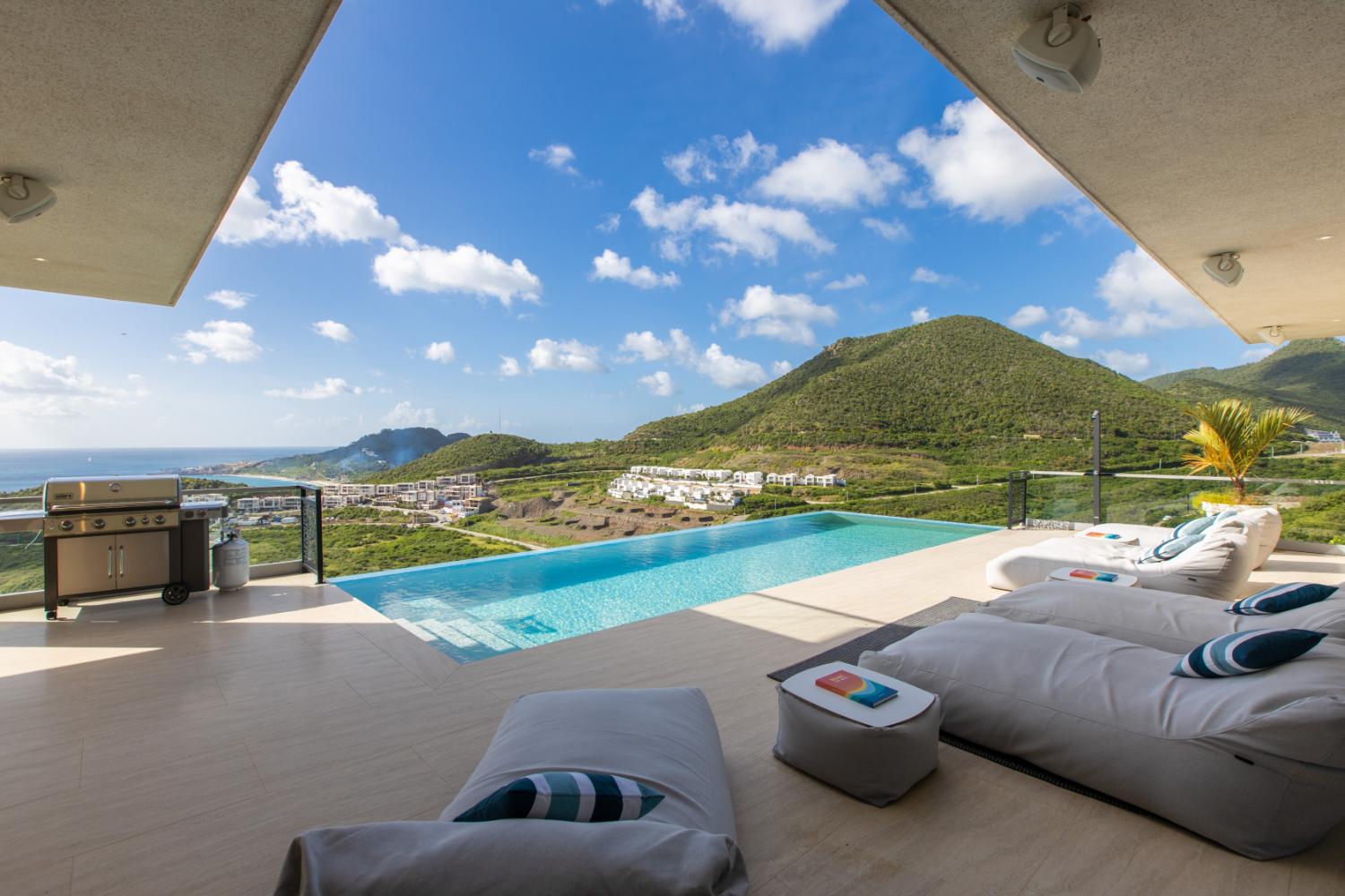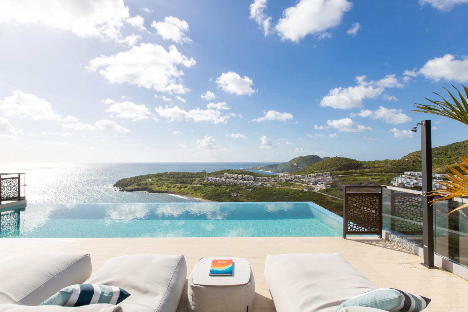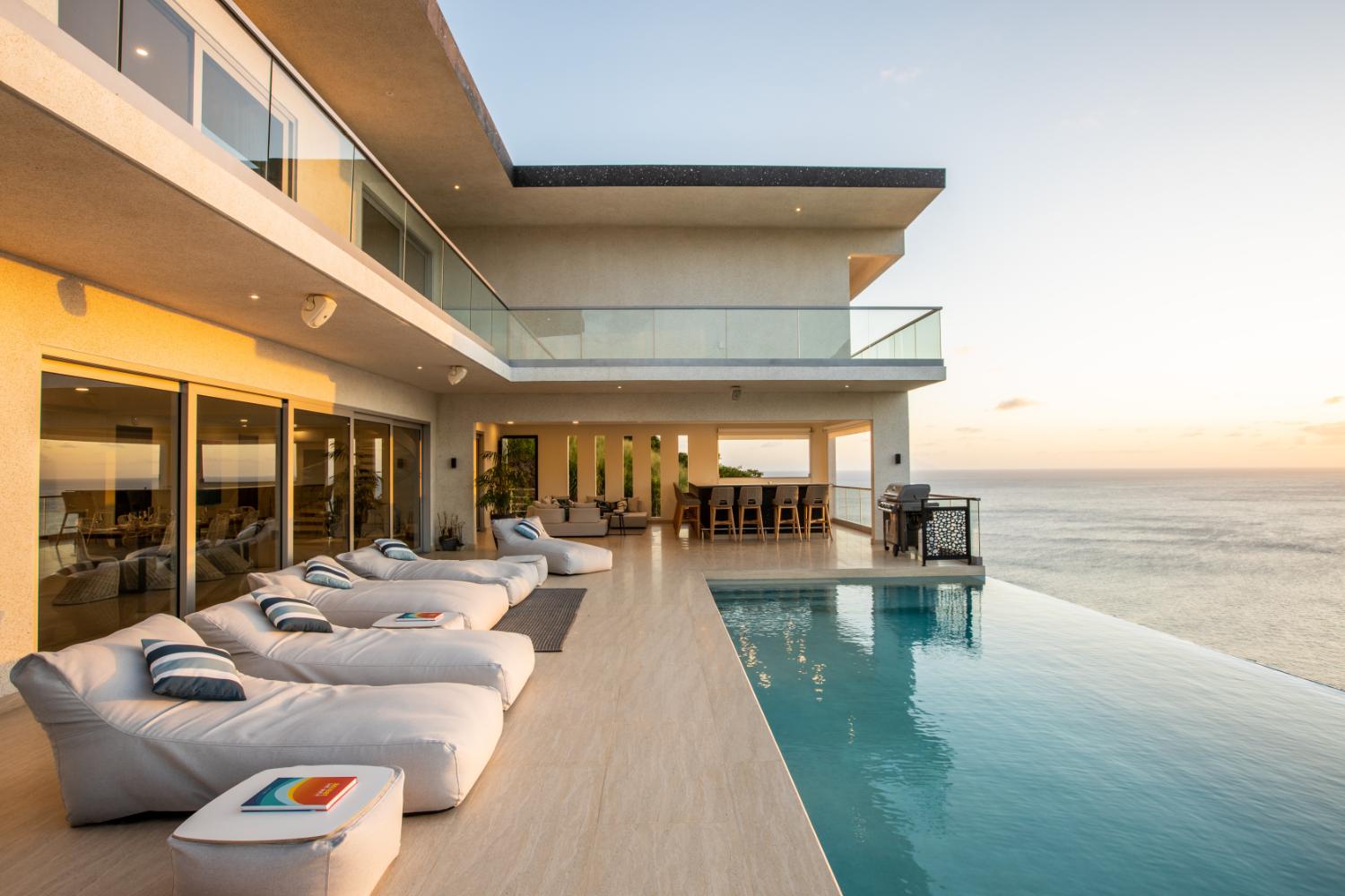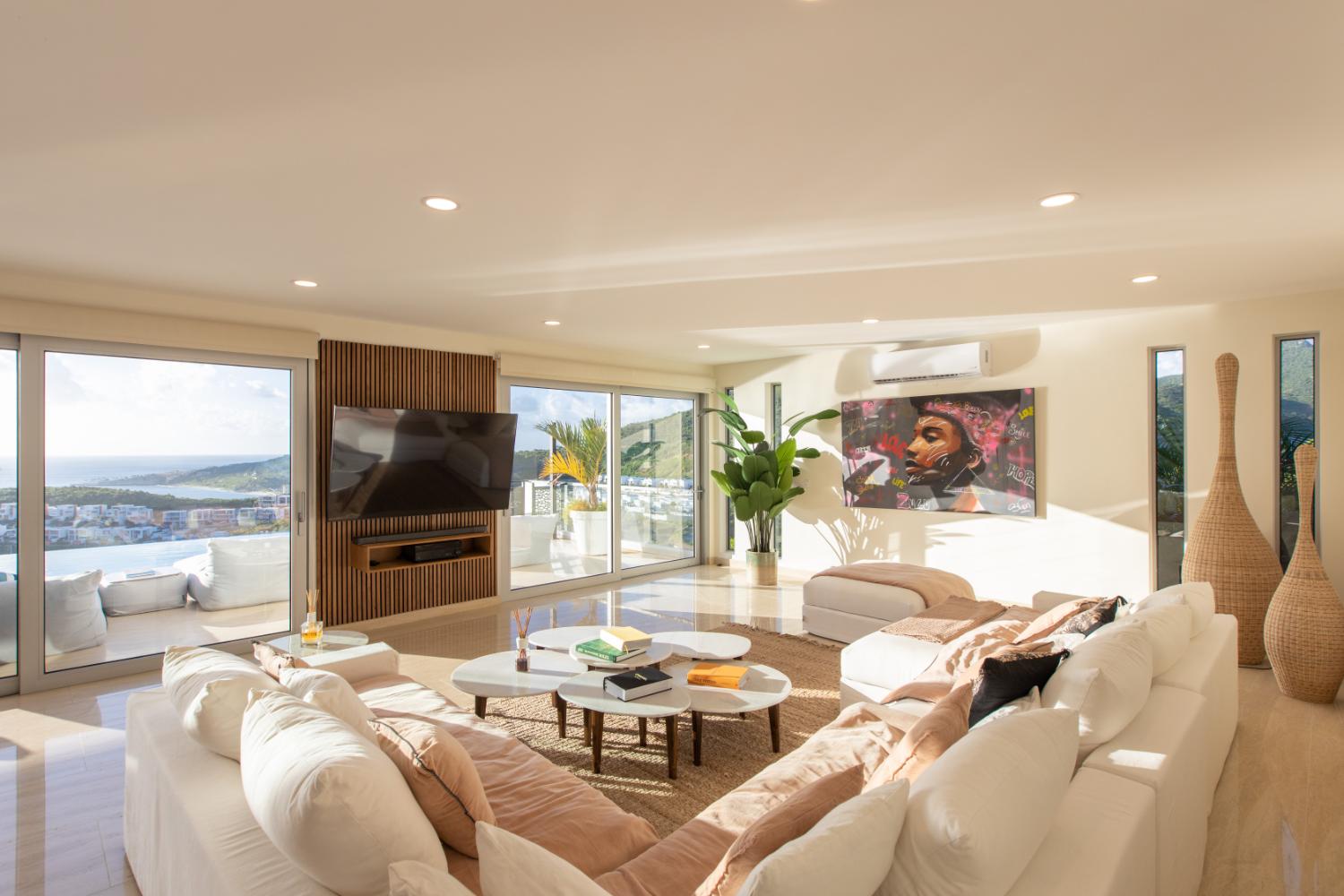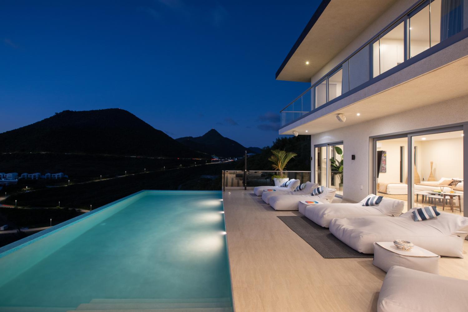 Among St Martin Villas, Villa Numa stands apart for its elevated Indigo Bay location combined with panoramic sunset views, expansive indoor-outdoor living spaces, and a rare six-bedroom layout designed to host groups while maintaining privacy.