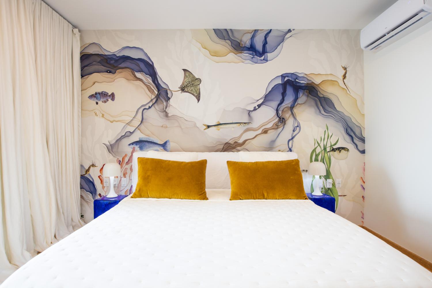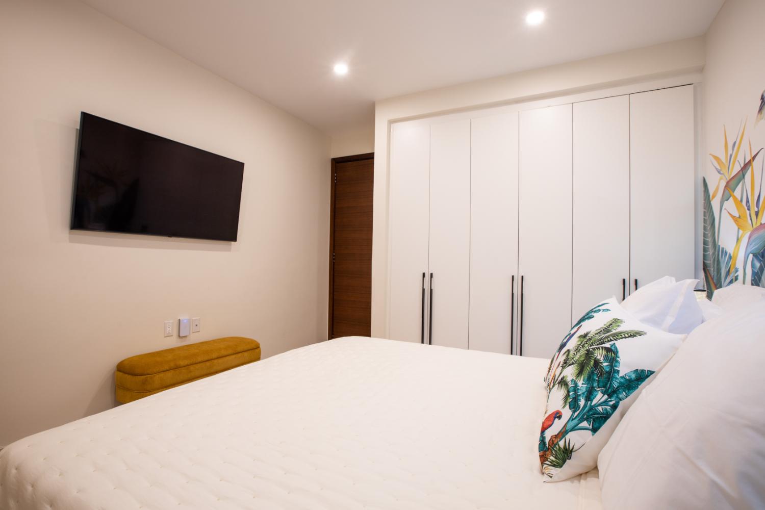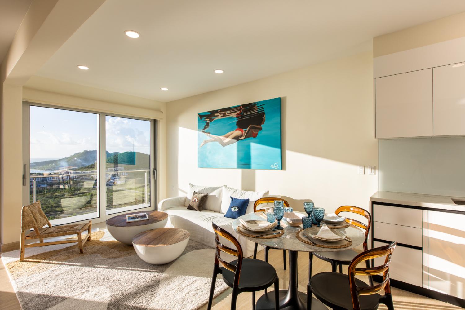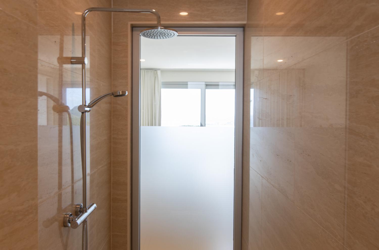 Villa Numa features six beautifully designed bedrooms, each offering unobstructed ocean views and its own private bathroom finished with elegant materials and thoughtful amenities. Four of the bedrooms sit on the entry level, connected by a bright hallway that ensures both privacy and easy access. Two additional suites are located on the second lower level and are reached via an exterior staircase, offering an added sense of independence. The sixth bedroom includes its own living room and kitchenette, an ideal arrangement for a nanny, extended family member, or guests seeking extra privacy during their stay.