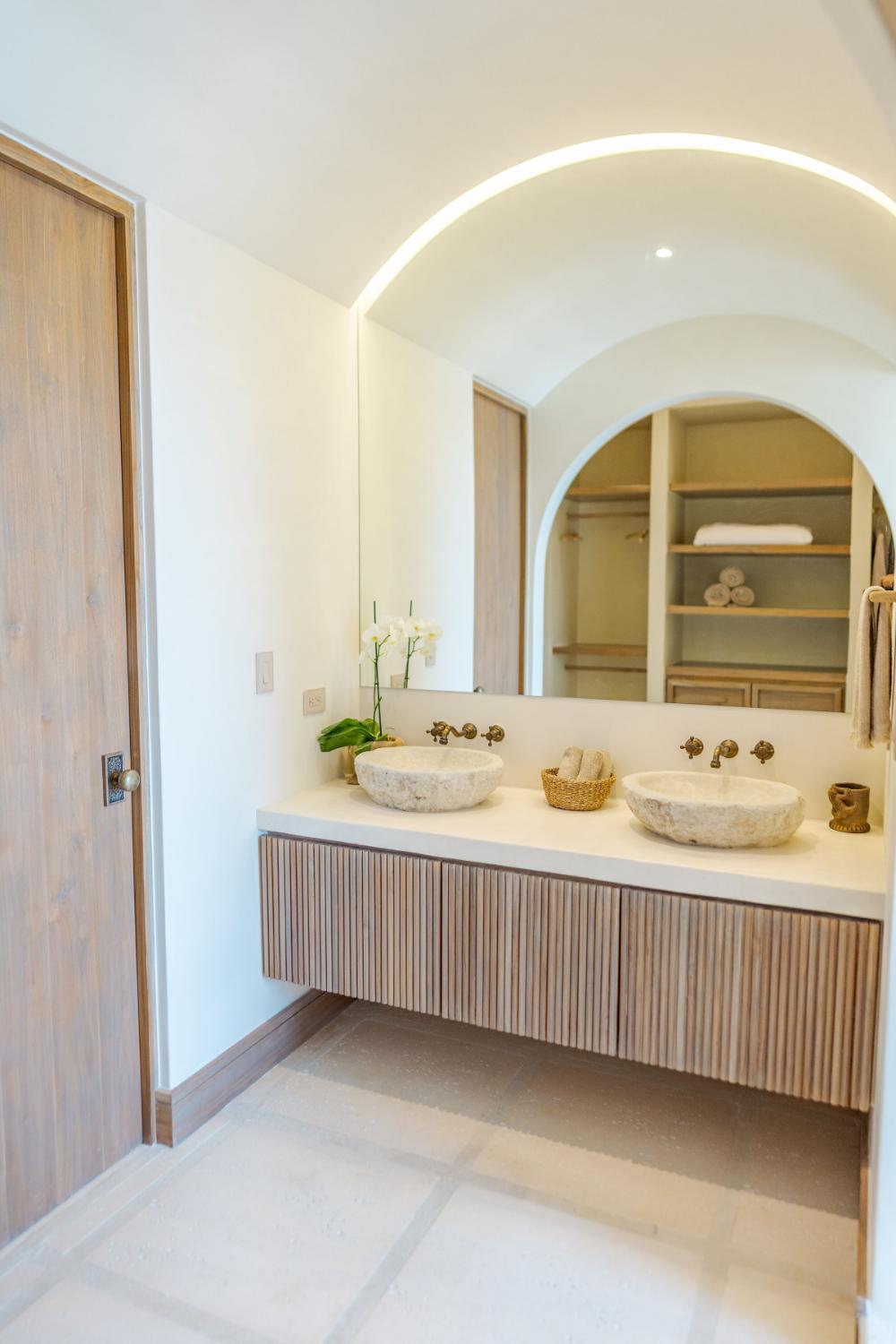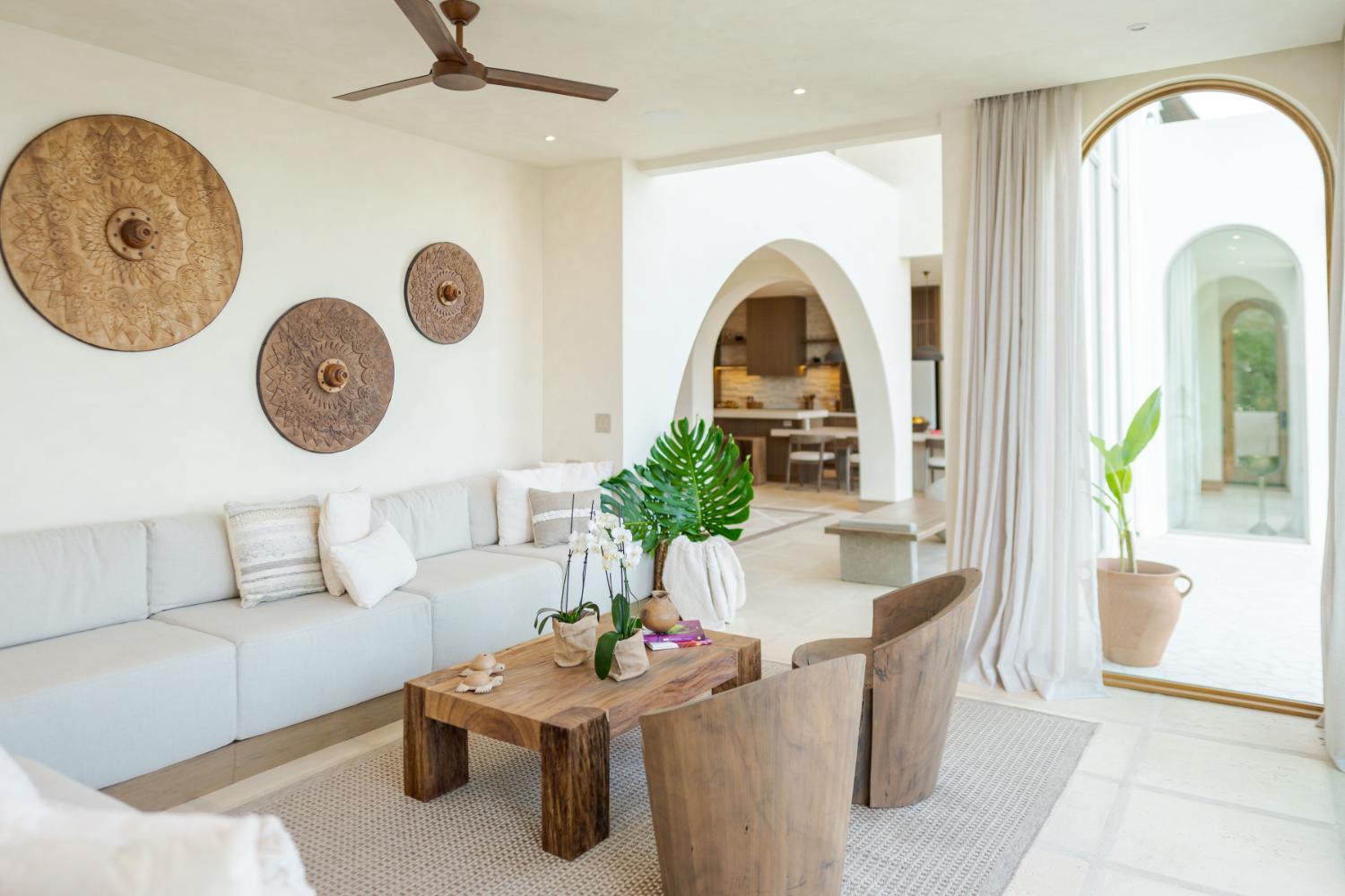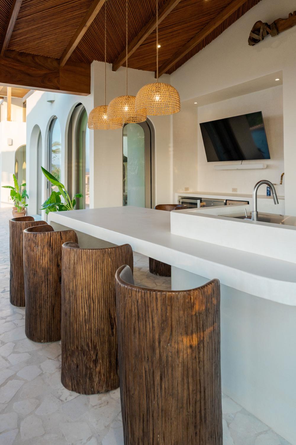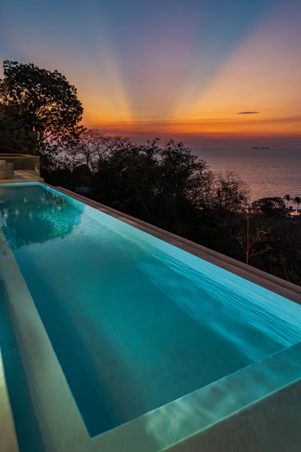 Villa Ocaso was imagined for travelers who want more than beautiful architecture. The villa blends contemporary design with local craftsmanship, creating an atmosphere that feels both refined and deeply rooted in place. Natural stone, warm woods, and artisan-made details reflect the region’s cultural identity, while expansive terraces and floor-to-ceiling openings allow the surrounding landscape to become part of the living experience. Each sunset seems to unfold directly in front of you, turning the sky into a living canvas above the forest and ocean.