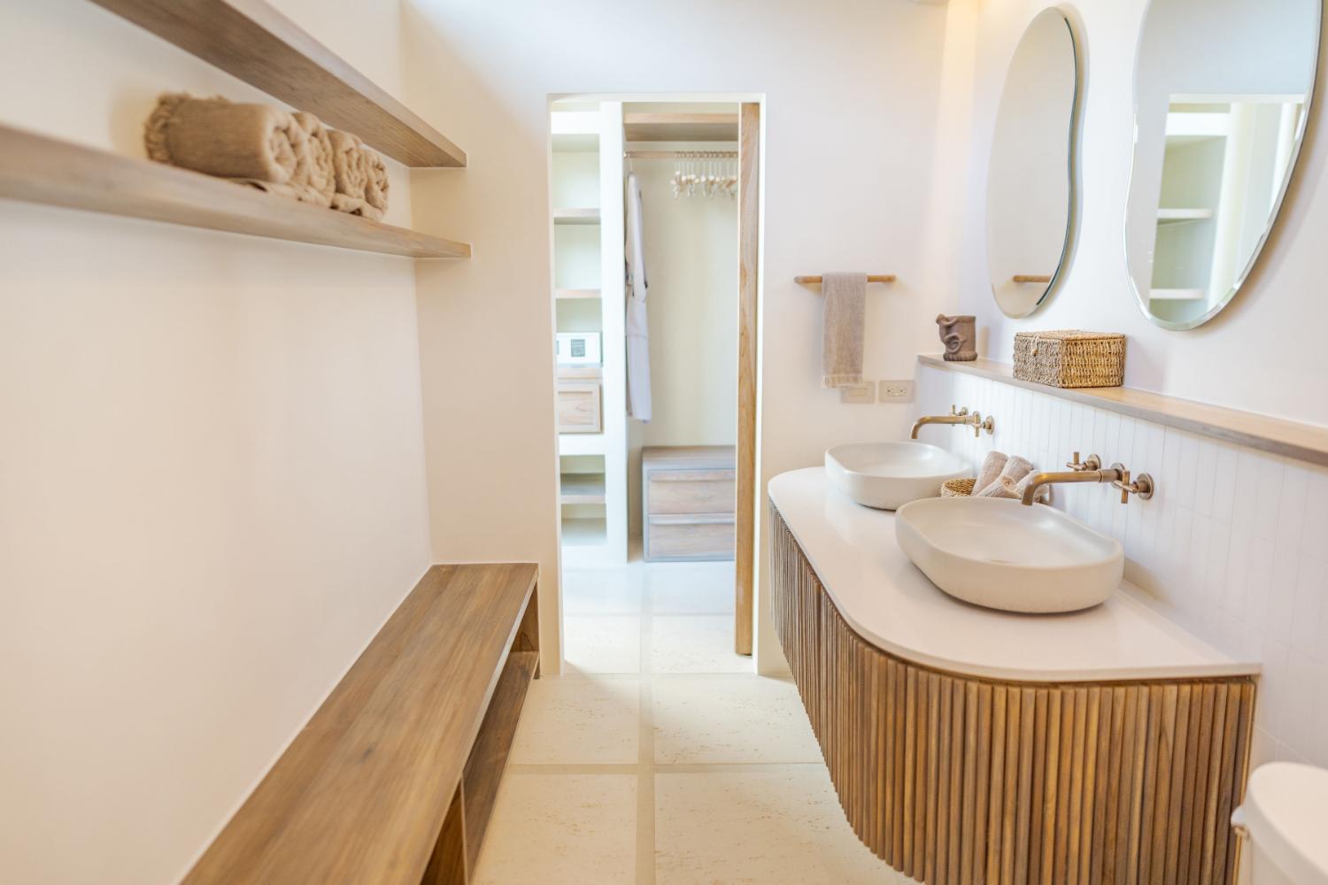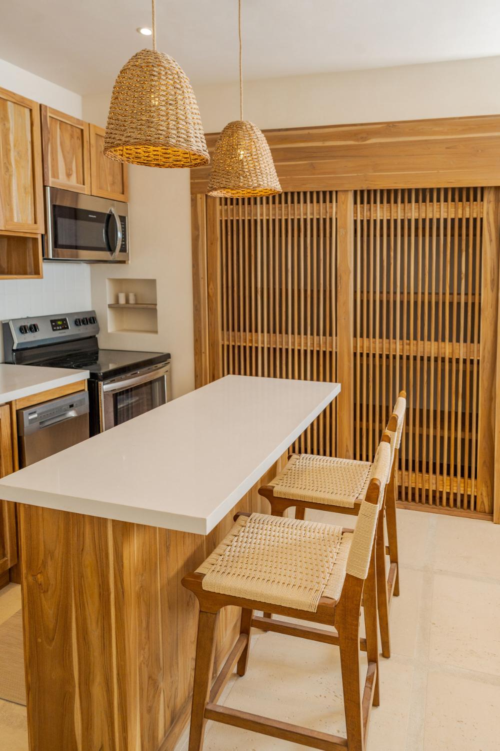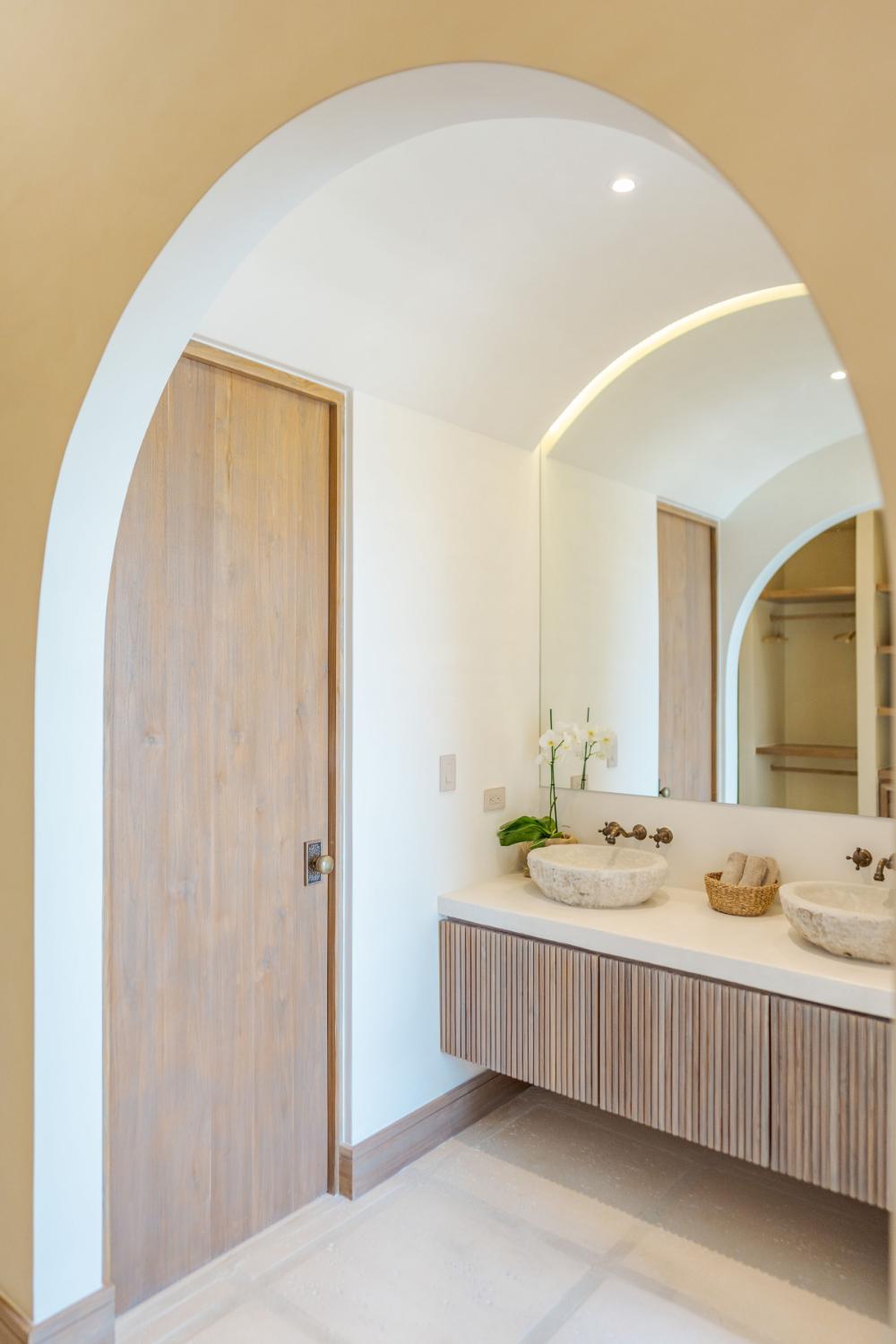 Villa Ocaso was imagined for travelers who want more than beautiful architecture. The villa blends contemporary design with local craftsmanship, creating an atmosphere that feels both refined and deeply rooted in place. Natural stone, warm woods, and artisan-made details reflect the region’s cultural identity, while expansive terraces and floor-to-ceiling openings allow the surrounding landscape to become part of the living experience. Each sunset seems to unfold directly in front of you, turning the sky into a living canvas above the forest and ocean.