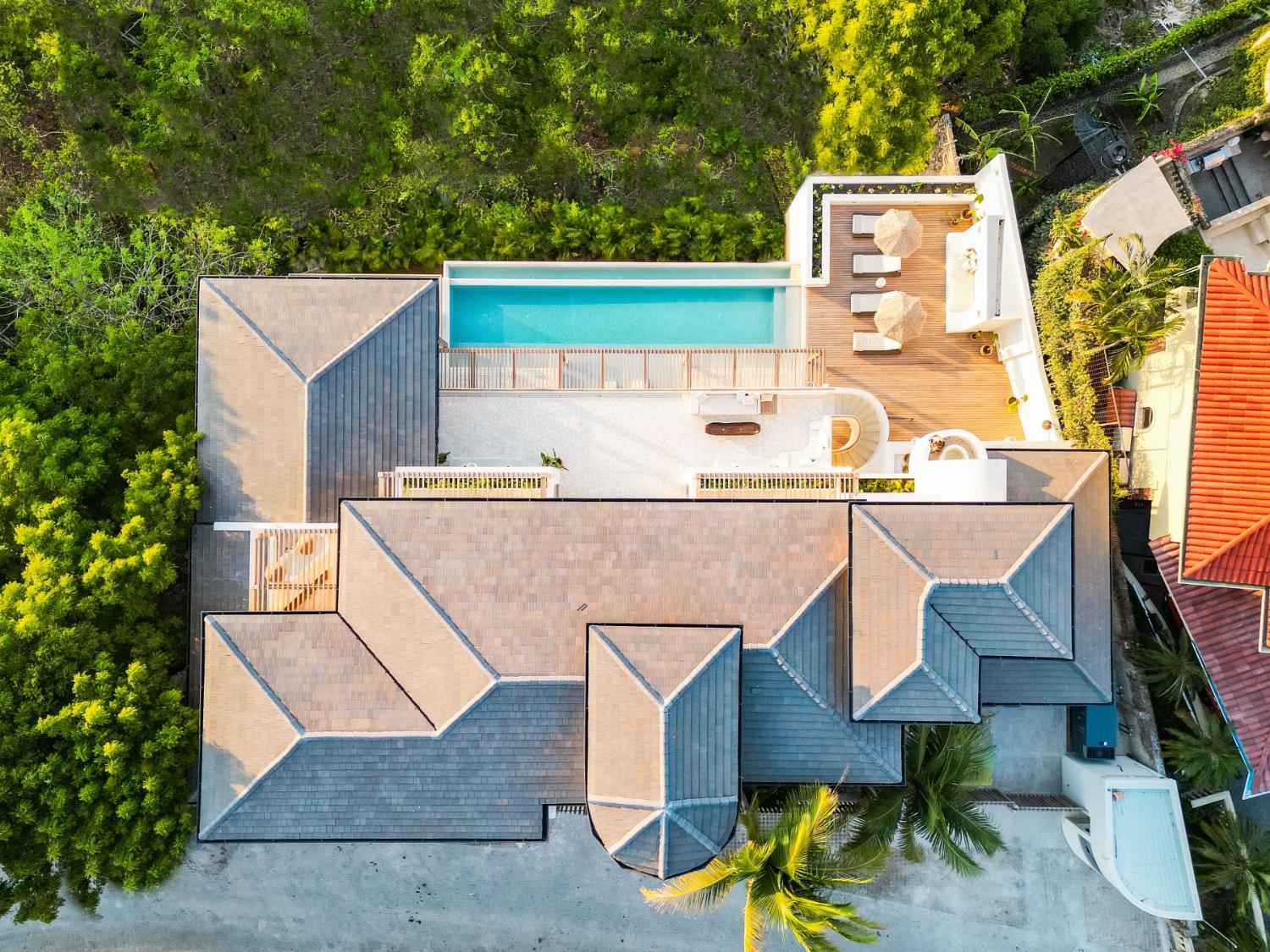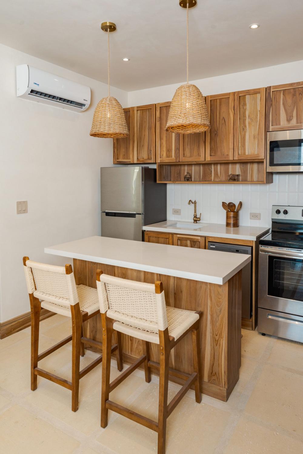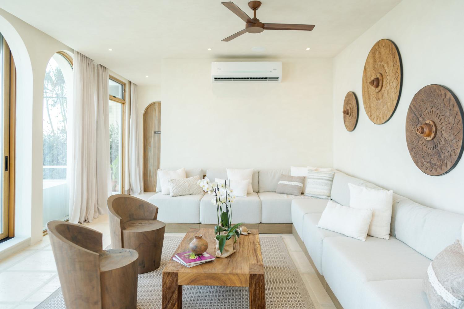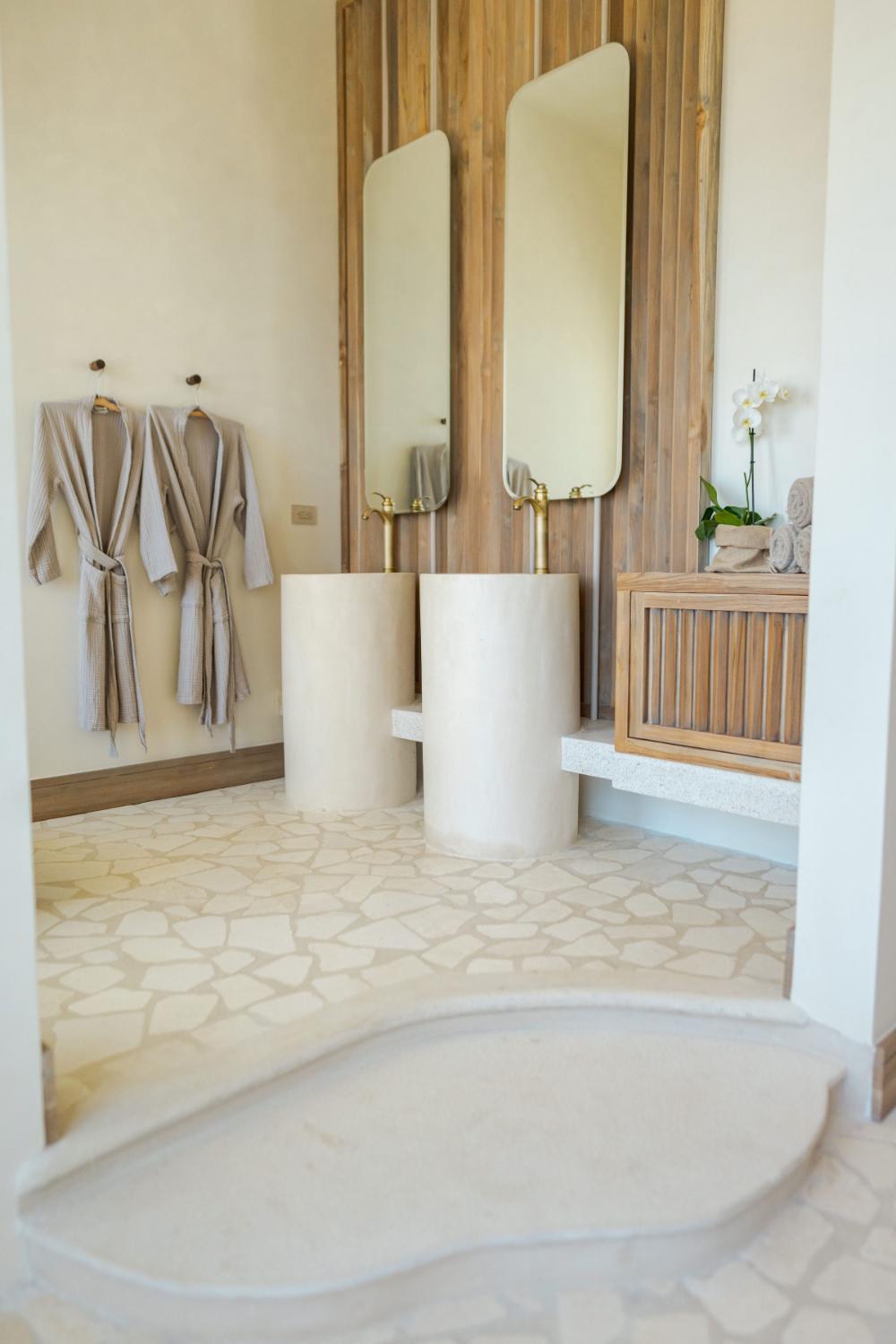 Villa Ocaso was imagined for travelers who want more than beautiful architecture. The villa blends contemporary design with local craftsmanship, creating an atmosphere that feels both refined and deeply rooted in place. Natural stone, warm woods, and artisan-made details reflect the region’s cultural identity, while expansive terraces and floor-to-ceiling openings allow the surrounding landscape to become part of the living experience. Each sunset seems to unfold directly in front of you, turning the sky into a living canvas above the forest and ocean.