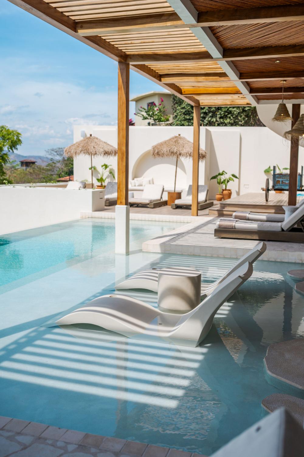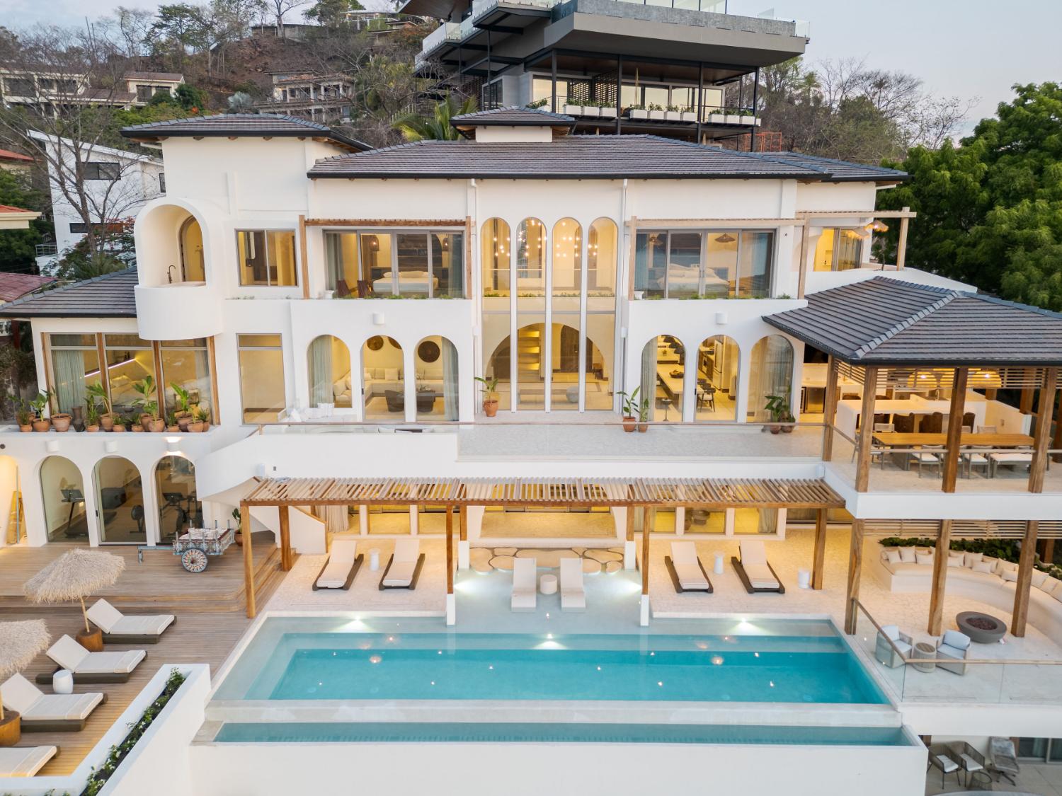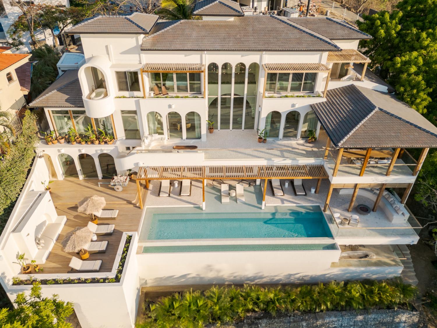 Just beyond the villa, the surrounding area invites exploration and connection with nature. Visitors can surf or walk along the expansive sands of Playa Guiones, explore the protected wildlife sanctuary of Ostional where sea turtles nest seasonally, or hike through the nearby jungle trails that reveal waterfalls, tropical birds, and sweeping coastal viewpoints.