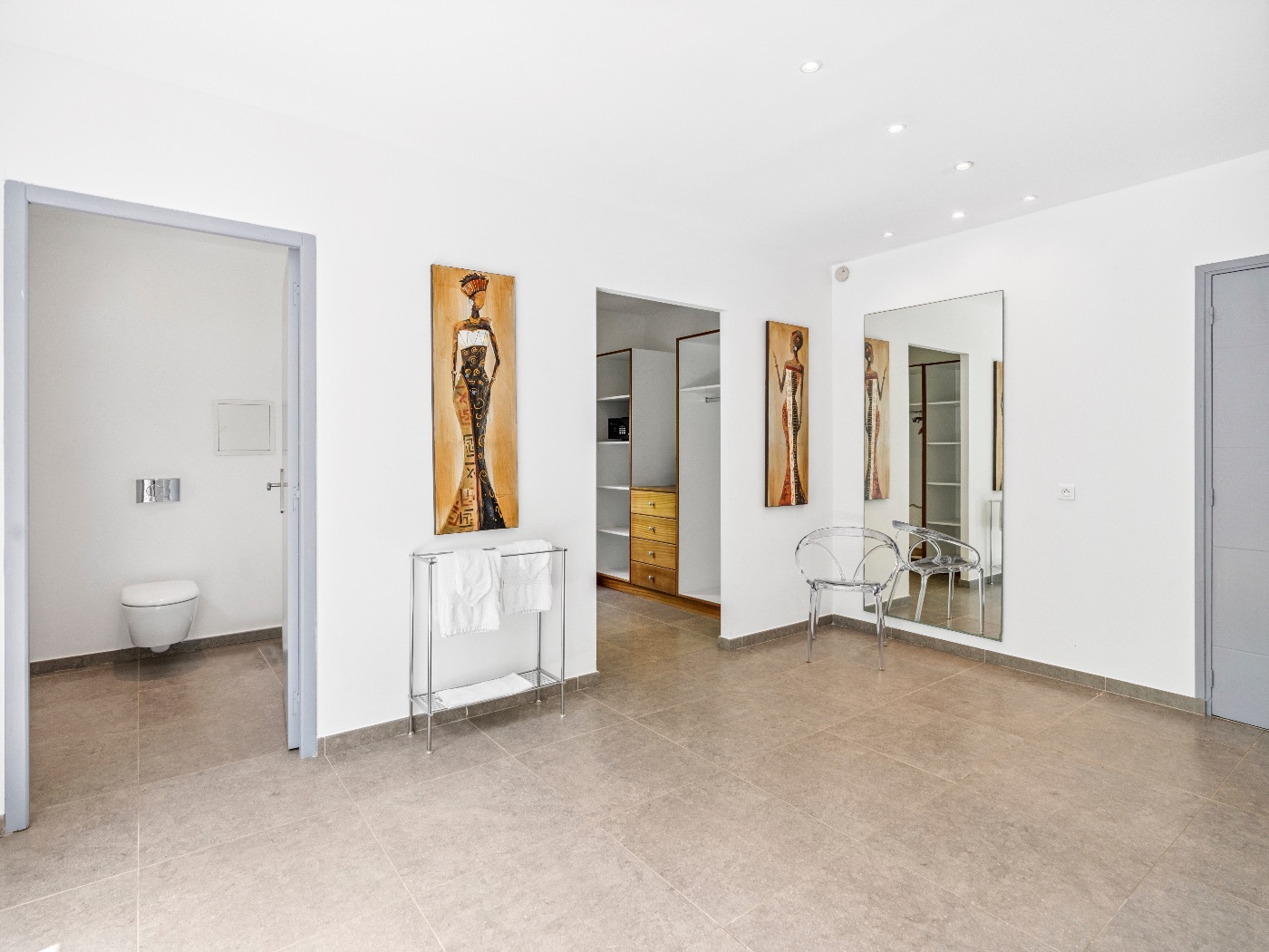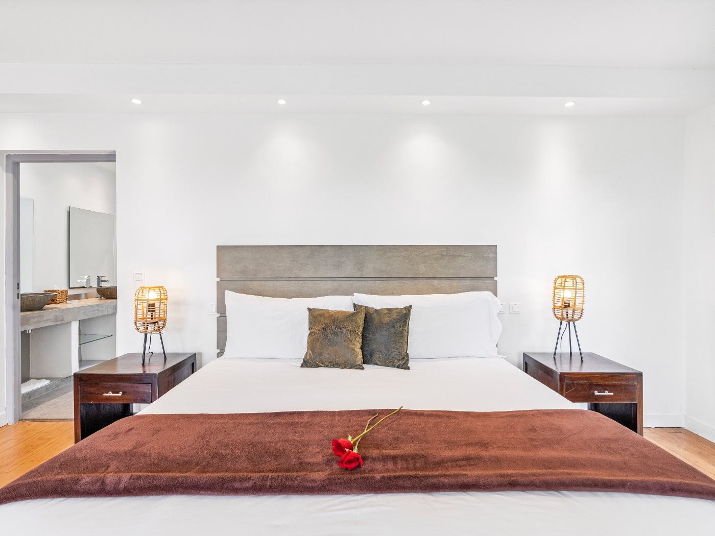 The villa features five equally sized bedrooms, each with: