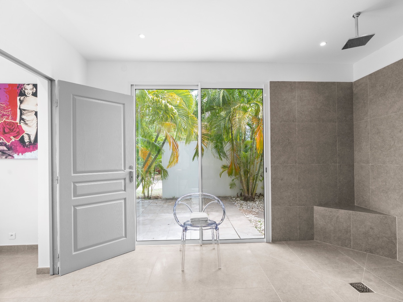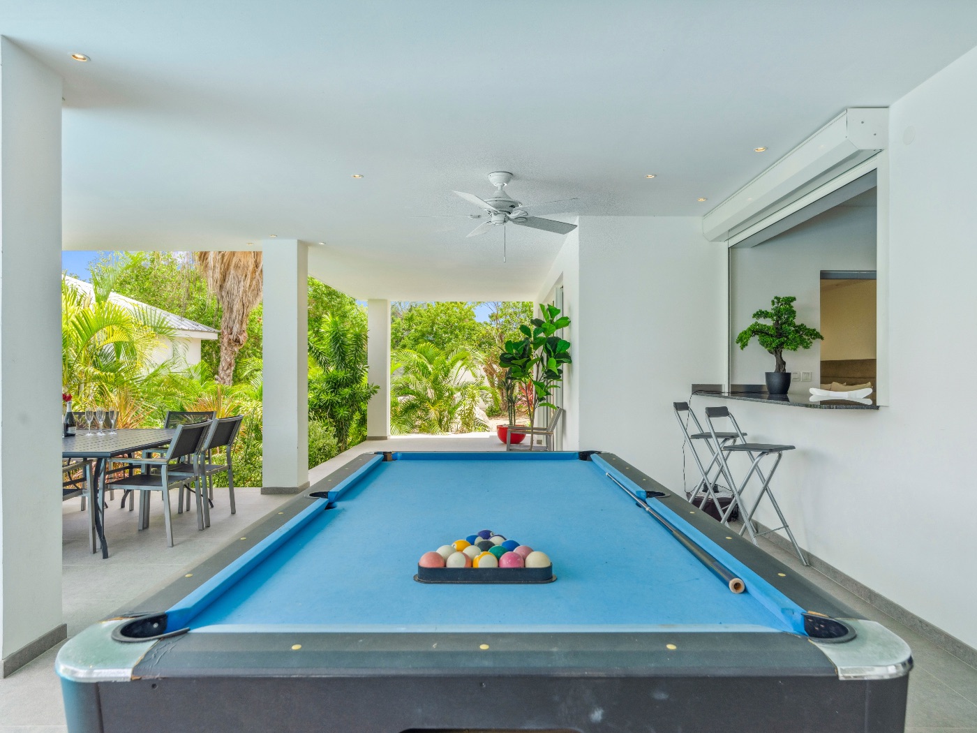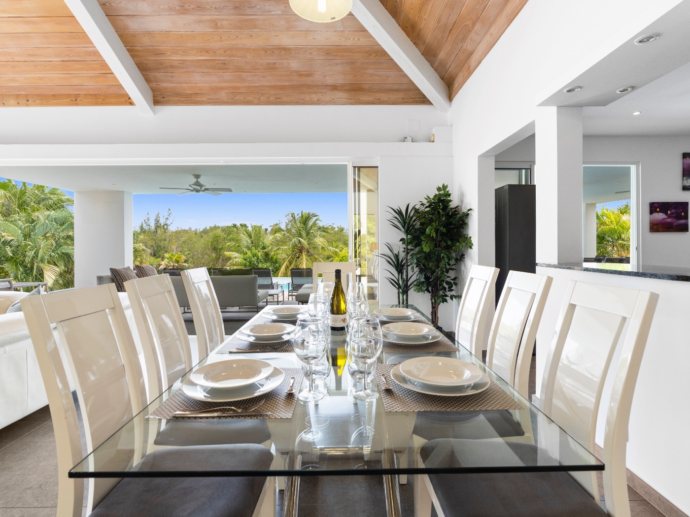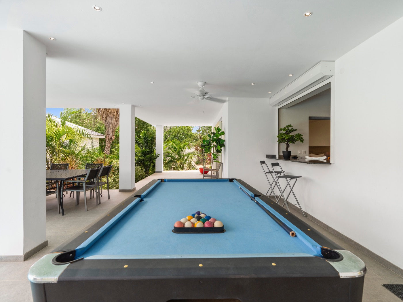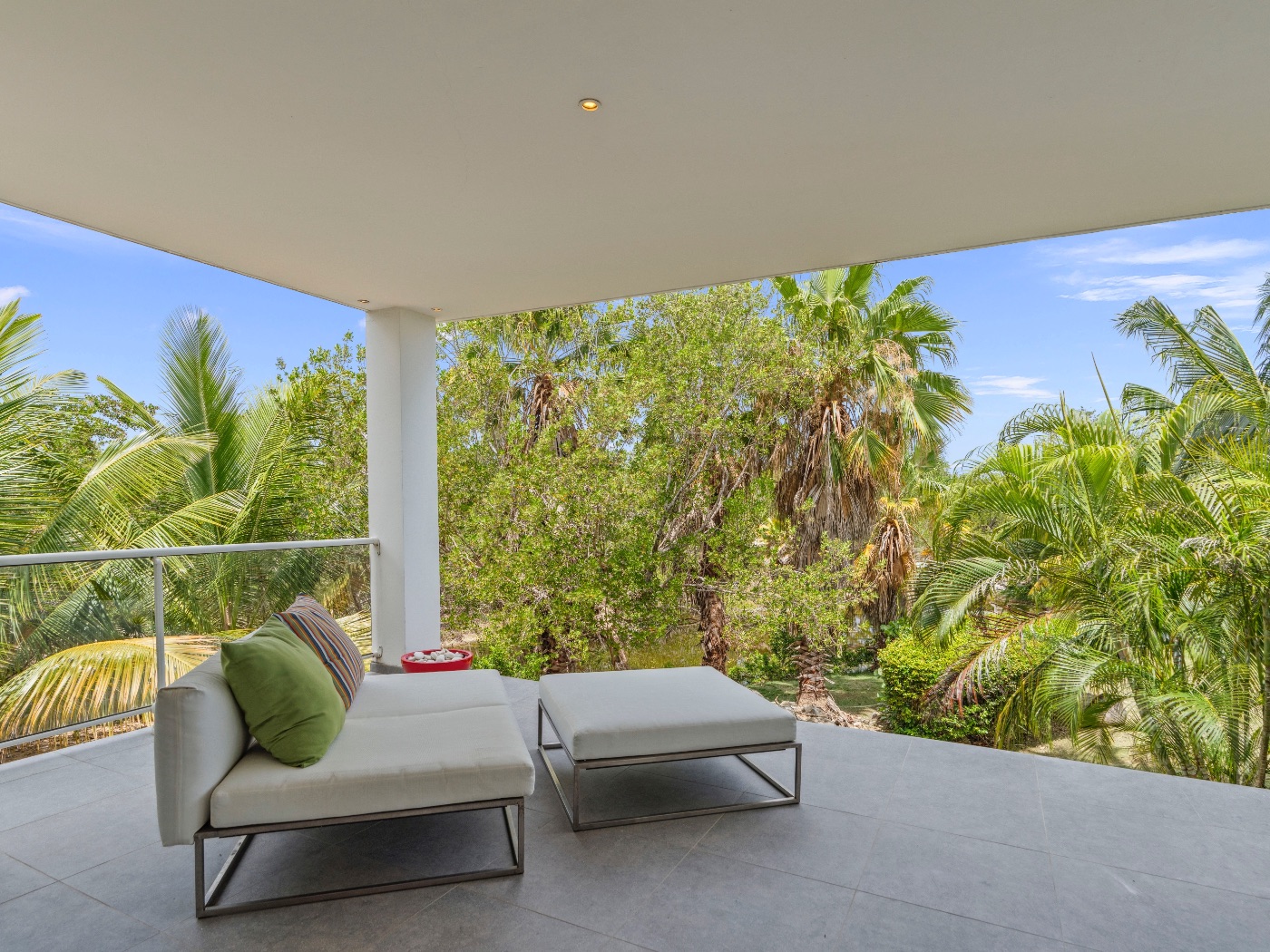 Set within a lush palm-filled garden in the prestigious Lowlands of Terres Basses, this sleek contemporary villa offers rare serenity just moments from the beach. Clean architectural lines draw the eye toward calming ocean views framed by vibrant tropical foliage. The atmosphere is effortlessly peaceful — a space designed to unwind with a book, a glass of champagne, and the rhythm of island life.