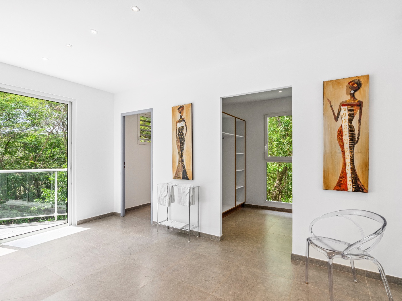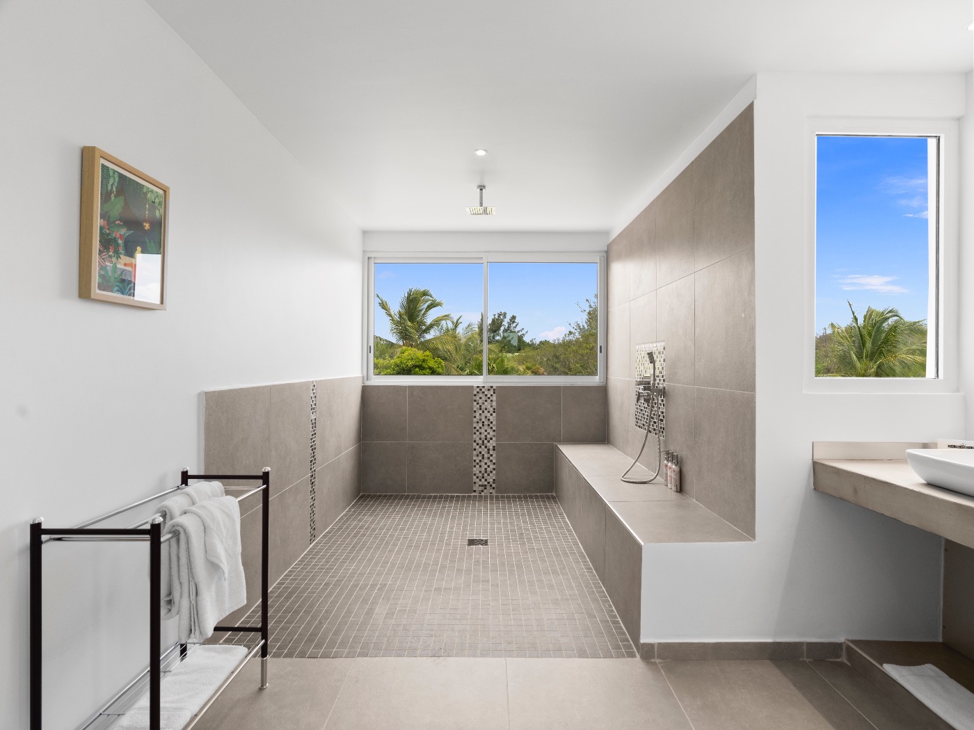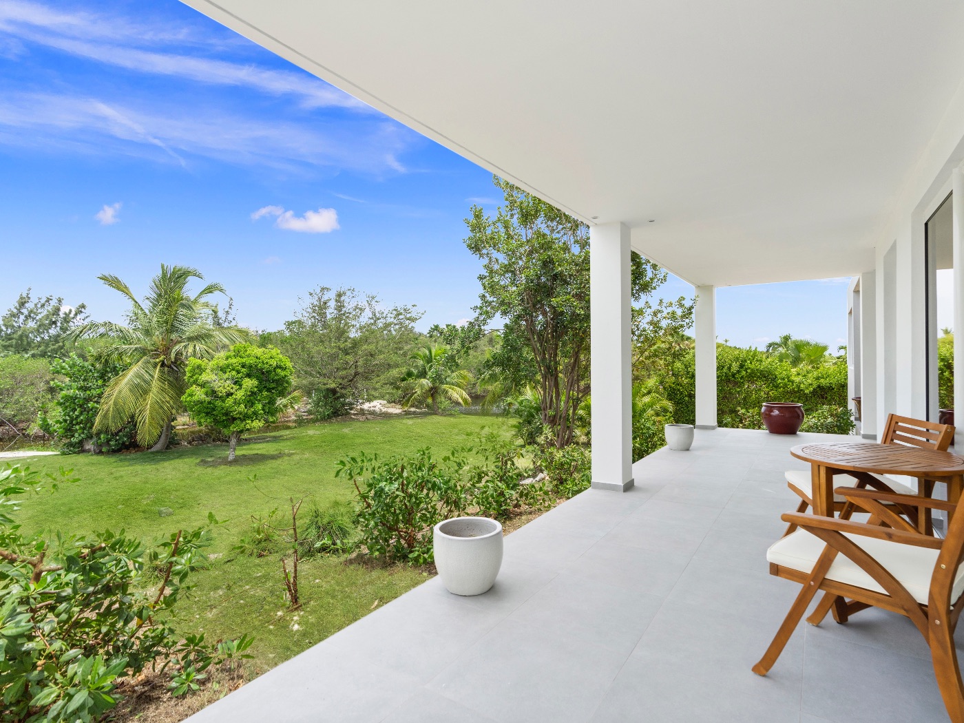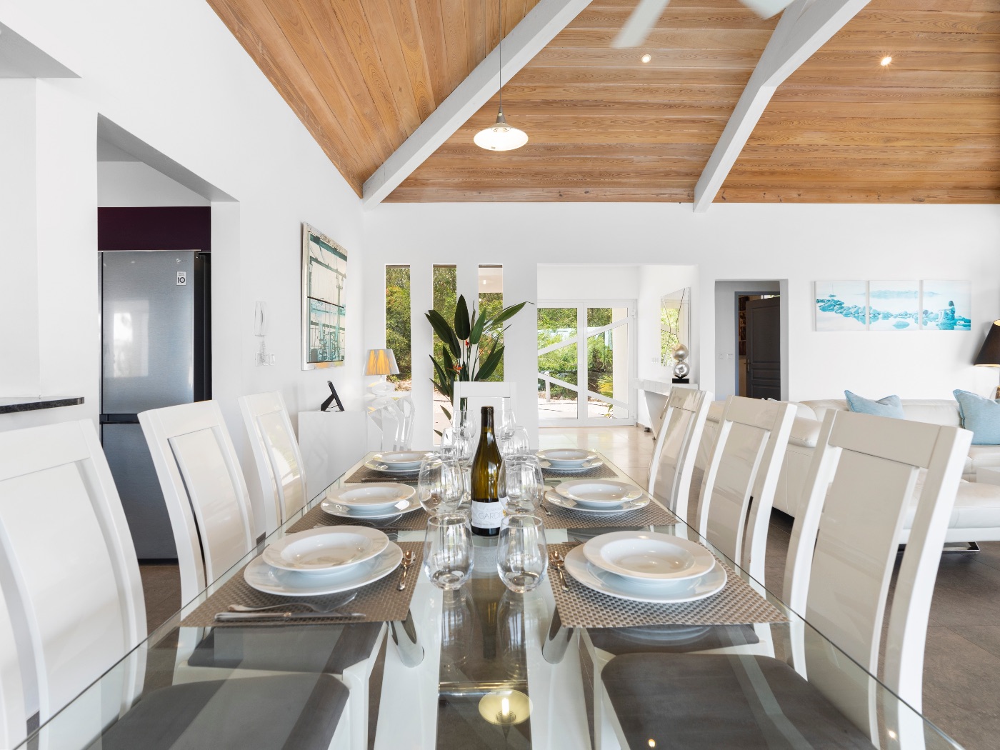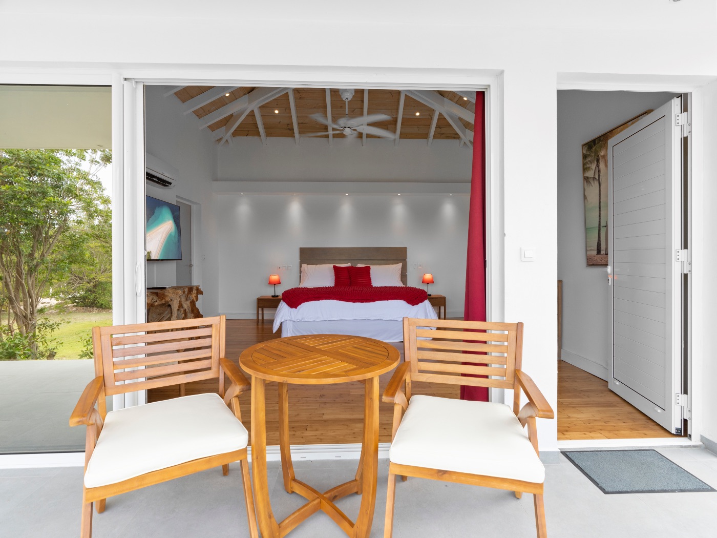 Set within a lush palm-filled garden in the prestigious Lowlands of Terres Basses, this sleek contemporary villa offers rare serenity just moments from the beach. Clean architectural lines draw the eye toward calming ocean views framed by vibrant tropical foliage. The atmosphere is effortlessly peaceful — a space designed to unwind with a book, a glass of champagne, and the rhythm of island life.