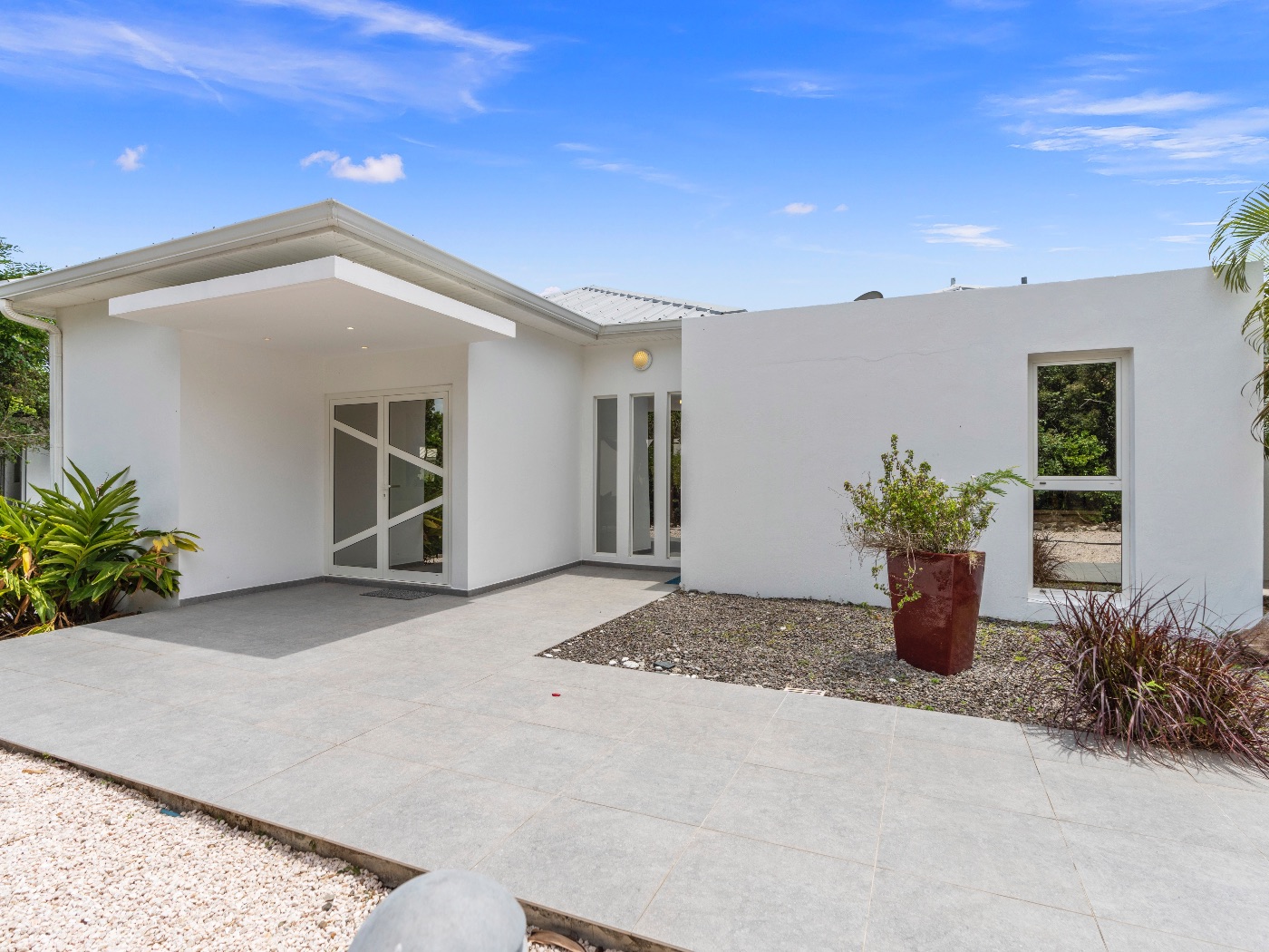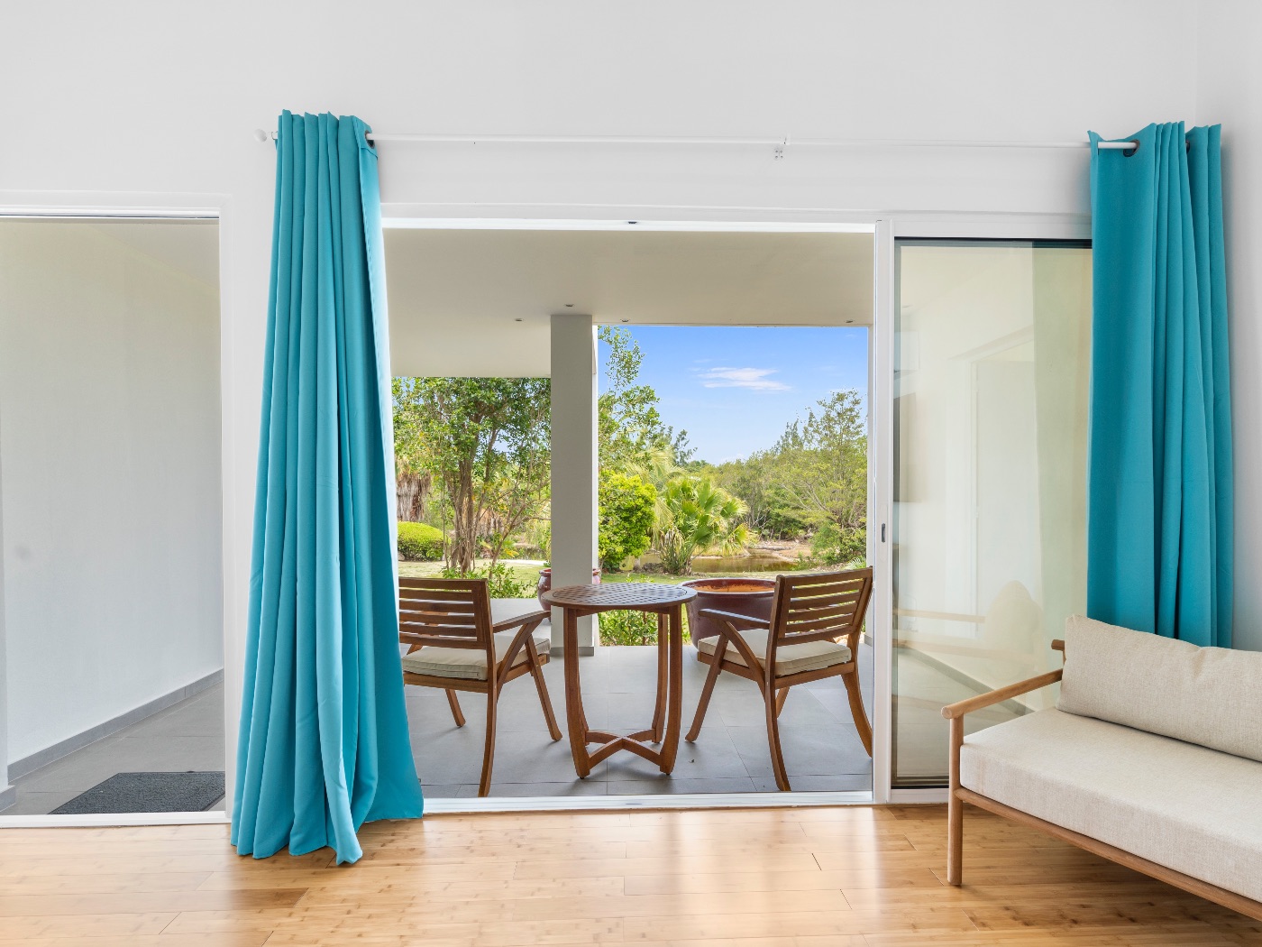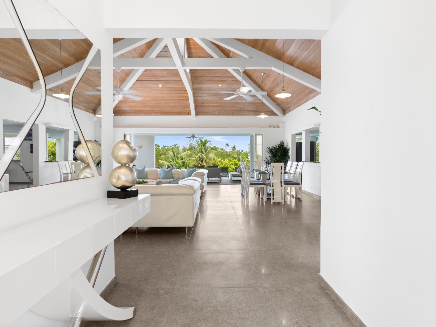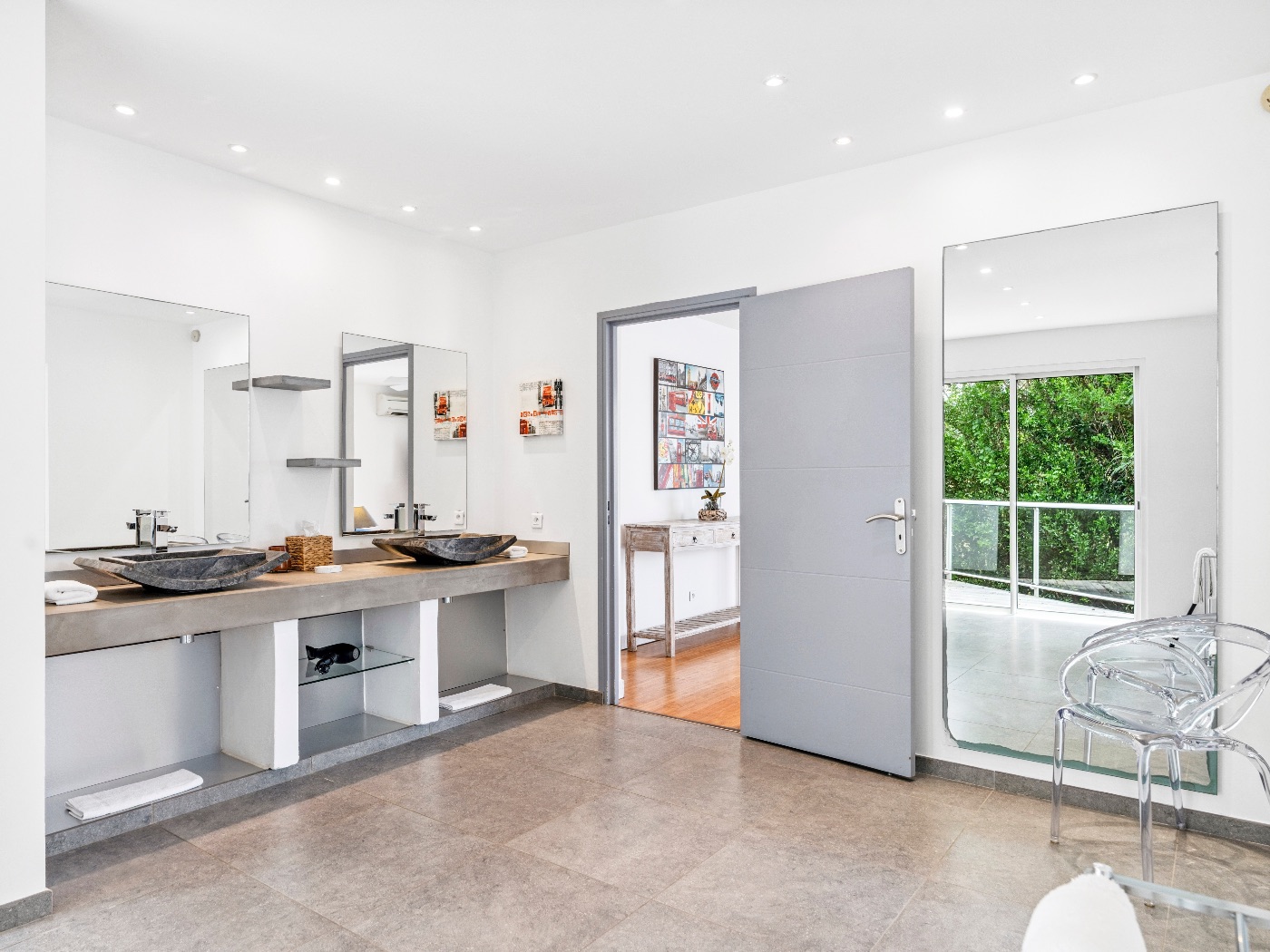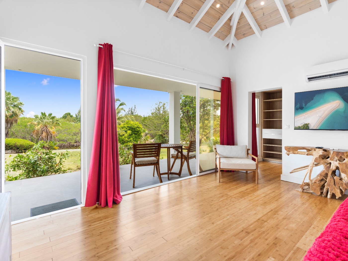 Set within a lush palm-filled garden in the prestigious Lowlands of Terres Basses, this sleek contemporary villa offers rare serenity just moments from the beach. Clean architectural lines draw the eye toward calming ocean views framed by vibrant tropical foliage. The atmosphere is effortlessly peaceful — a space designed to unwind with a book, a glass of champagne, and the rhythm of island life.