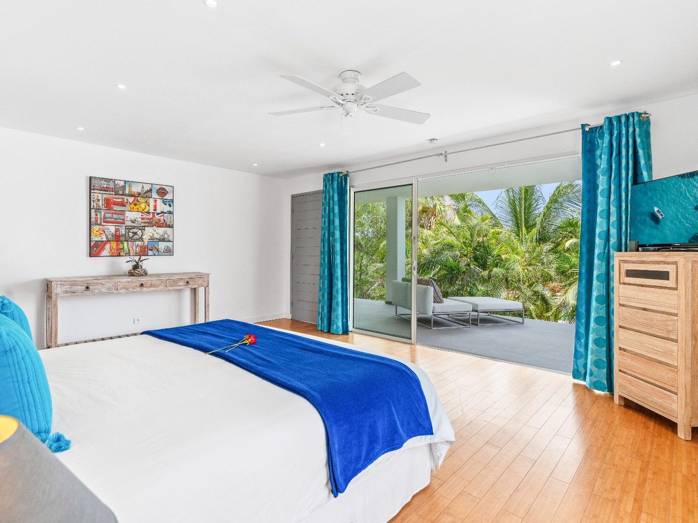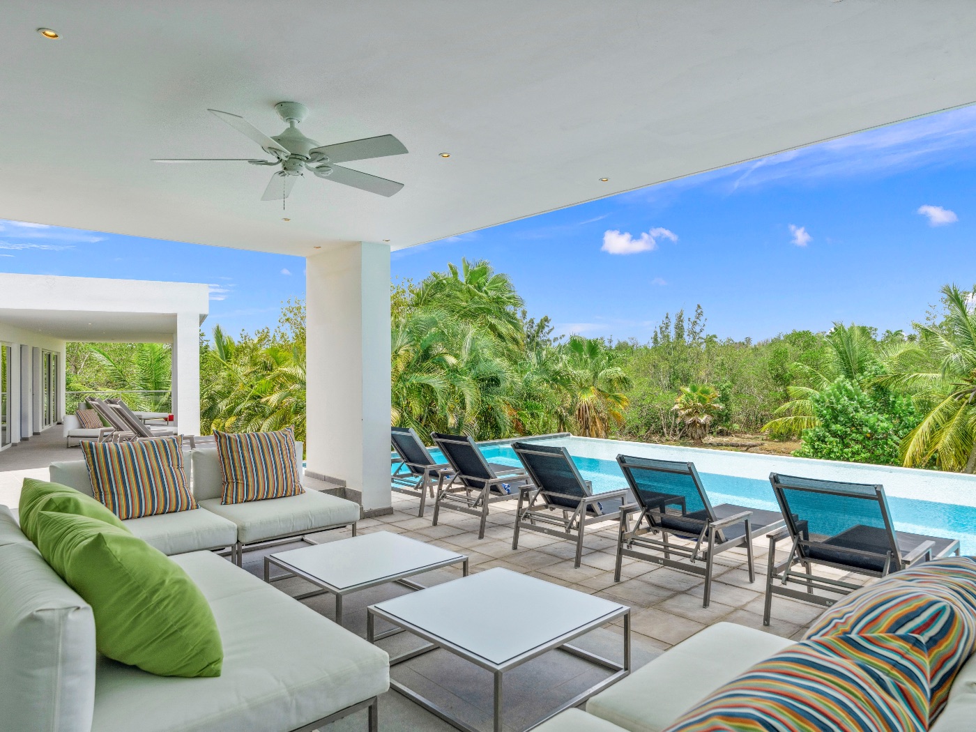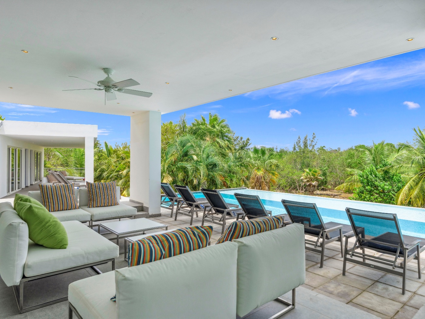 The villa may be rented as a 3, 4, or 5-bedroom residence.