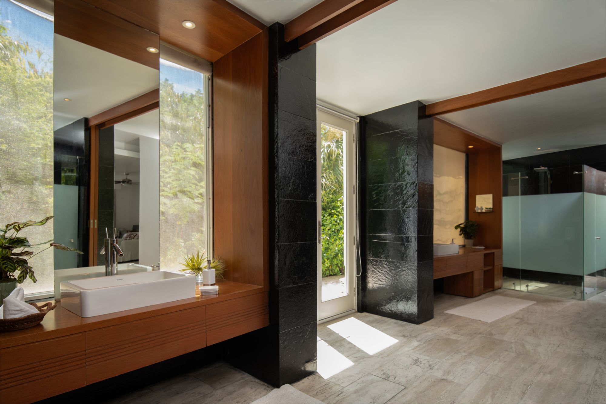 From the moment you arrive, the villa reads like a private resort designed for people who want both togetherness and space: eight serene bedrooms with spa-style ensuite bathrooms, generous social areas that curve with the architecture, and glass walls that fold away so the indoors and outdoors melt into one long, breezy living experience. Mornings can begin quietly with coffee beside the water, then build into a day of play—serve and volley on the sports court, squeeze in a session in the indoor gym, cool down with a massage, and later drift into the cigar room or games room as the light turns honey-gold across polished wood and natural stone.