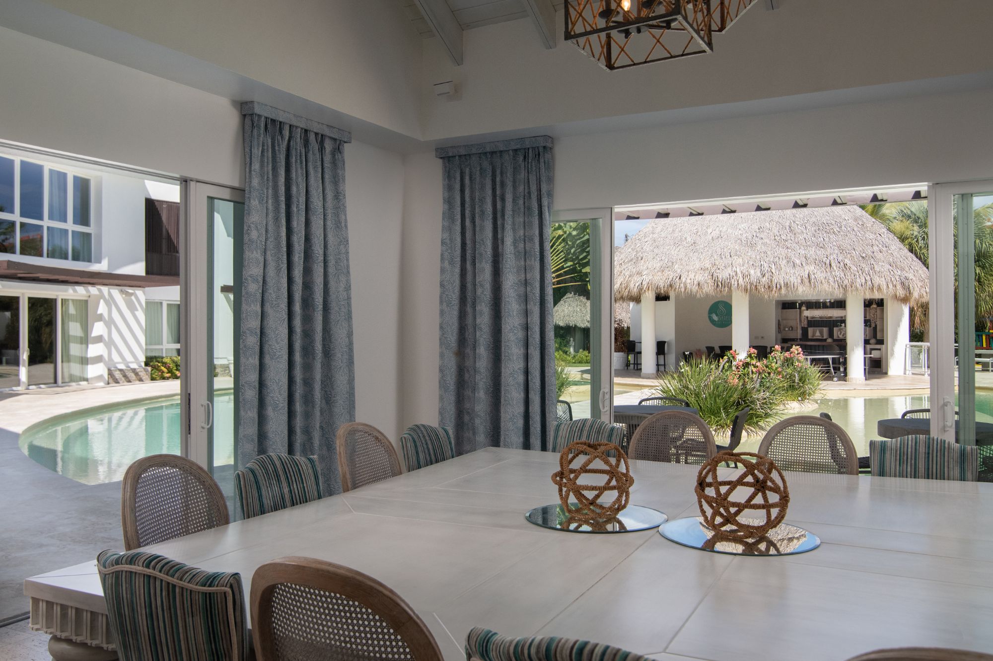 Unique value proposition: Villa Sambarela is a rare, design-forward semi-circular estate in Cap Cana that pairs three pools and an indoor squash court with true hotel-level staffing—privacy and full-service resort living in one address.