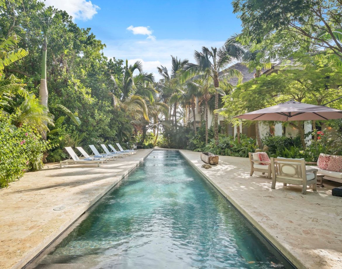 With colonial-inspired lines, modern interiors, and an indoor-outdoor layout that allows you to live with the breeze, the house instantly feels serene and easy, just like the best Punta Cana villas. Tall windows and wide glass doors let in plenty of light, Coralina floors keep you cool, ceiling fans move the air around, and underfloor cooling and central air conditioning keep every room just the way you want it. With four spacious suites that can accommodate up to eight guests and 12,496 square feet of thoughtfully scaled living, it’s a place made for people who travel well together. Everyone can find a favorite spot to read, hang out, or take a break.