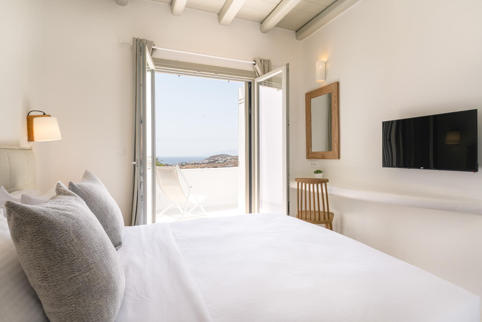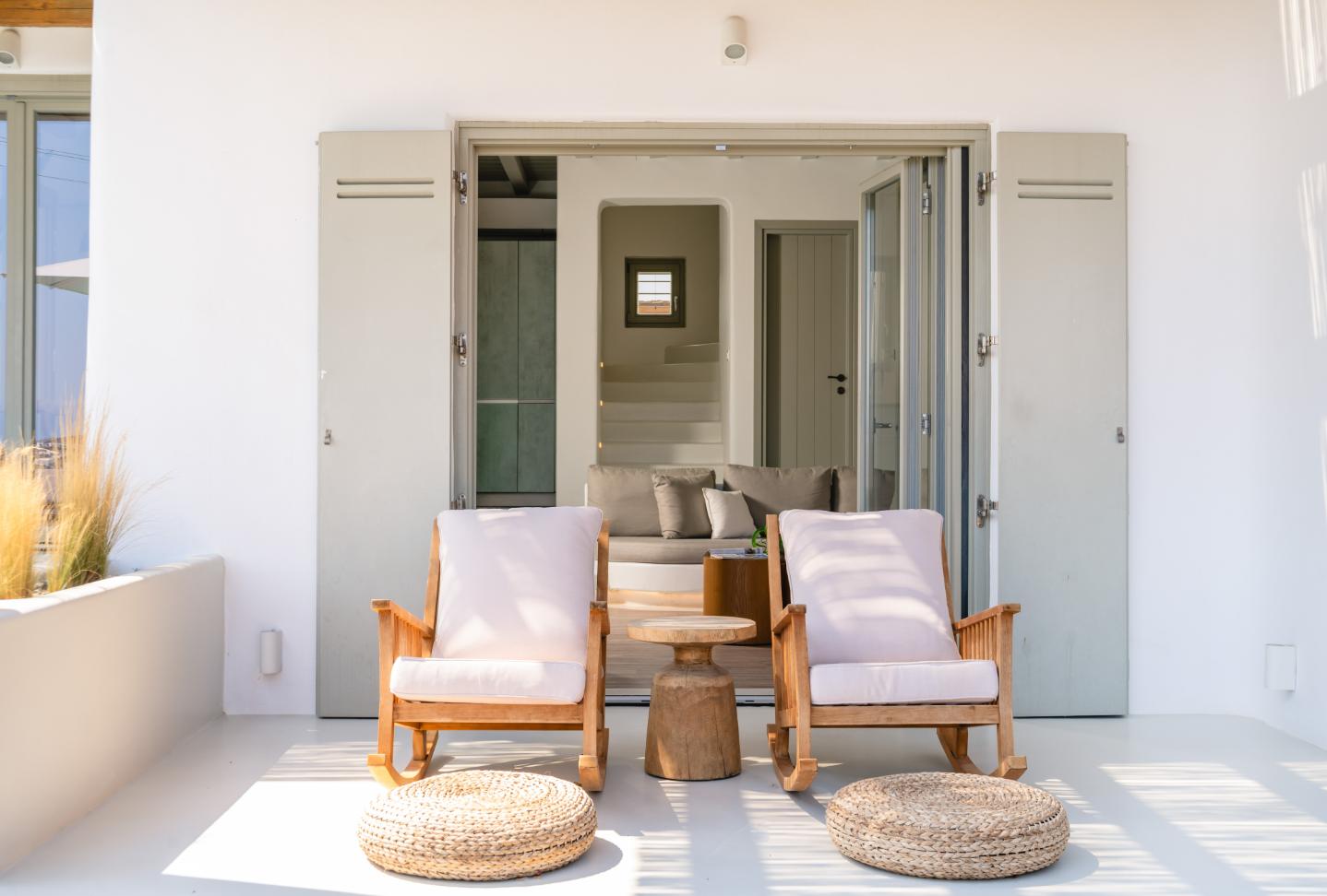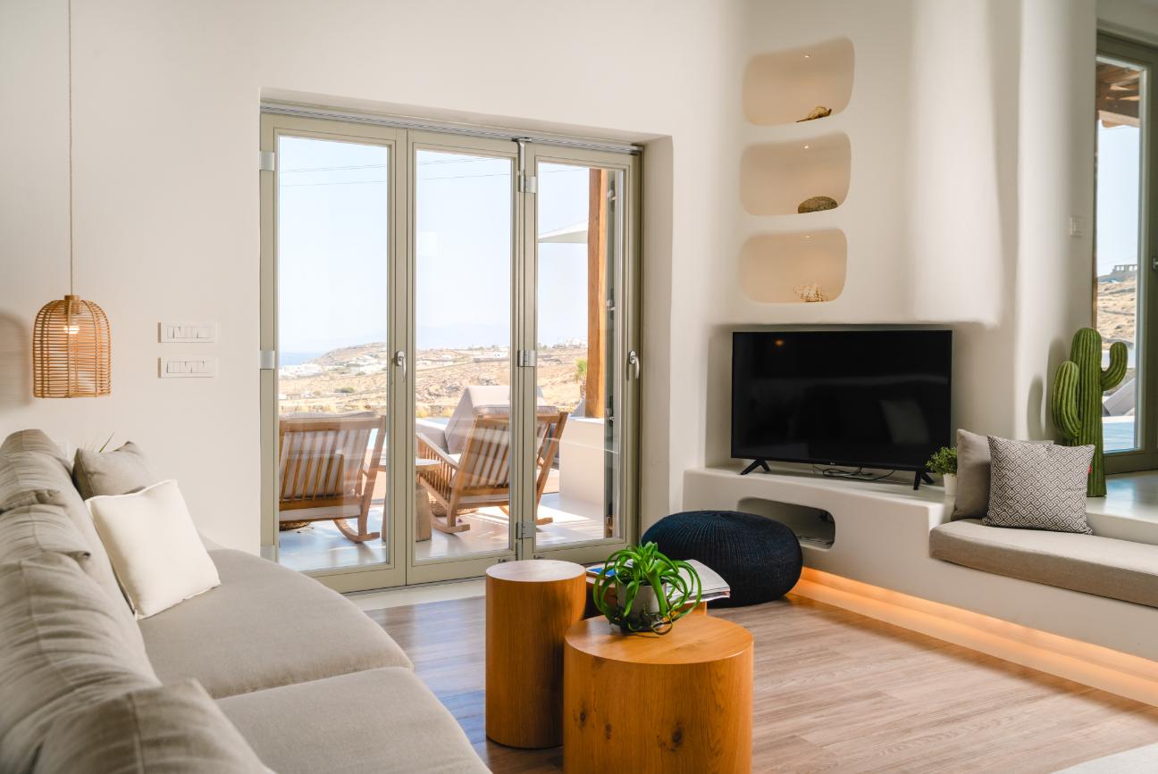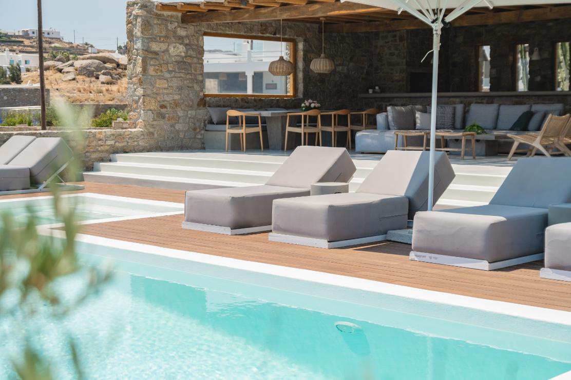Tucked away in Kalafatis, you’re near the action but far from the commotion. You can easily access Mykonos Town’s cobblestone streets, shops, and well-known eateries, allowing you to experience the island’s vibrancy whenever the mood strikes.